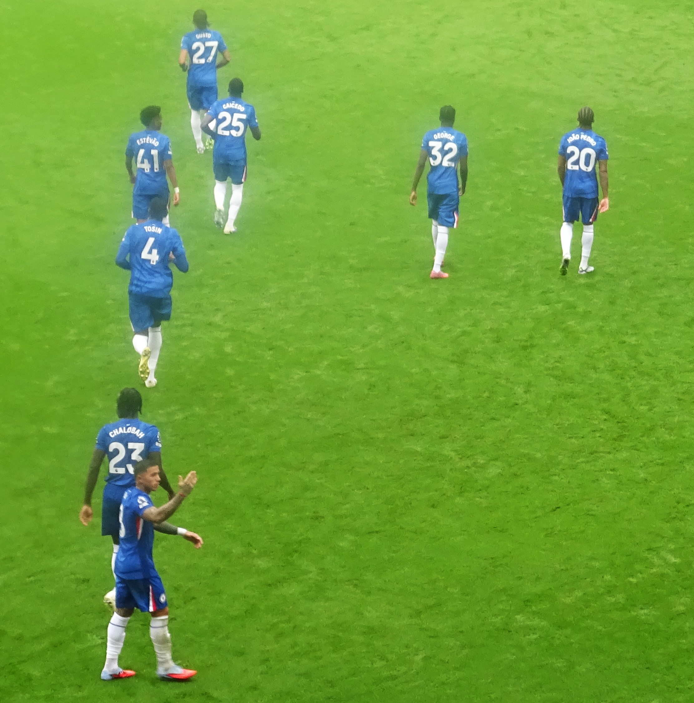 Burnley, attacking our end, began the livelier of the two teams and our former player Ugochukwu was a lively handful as he broke in from their right. On six minutes, Trevoh Chalobah covered some ground to block and effort on goal and he screamed his delight at its success. We all like to see that passion.