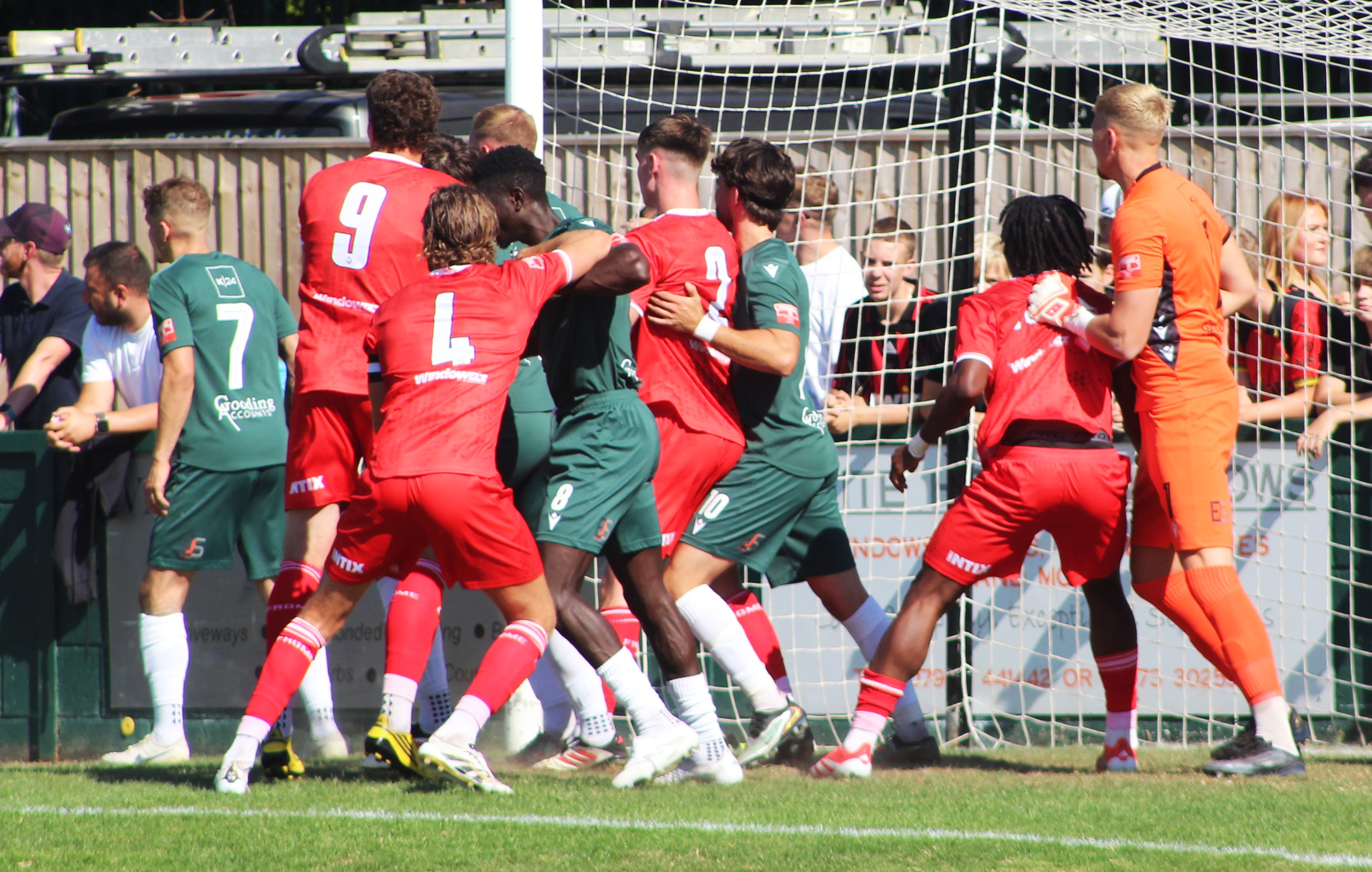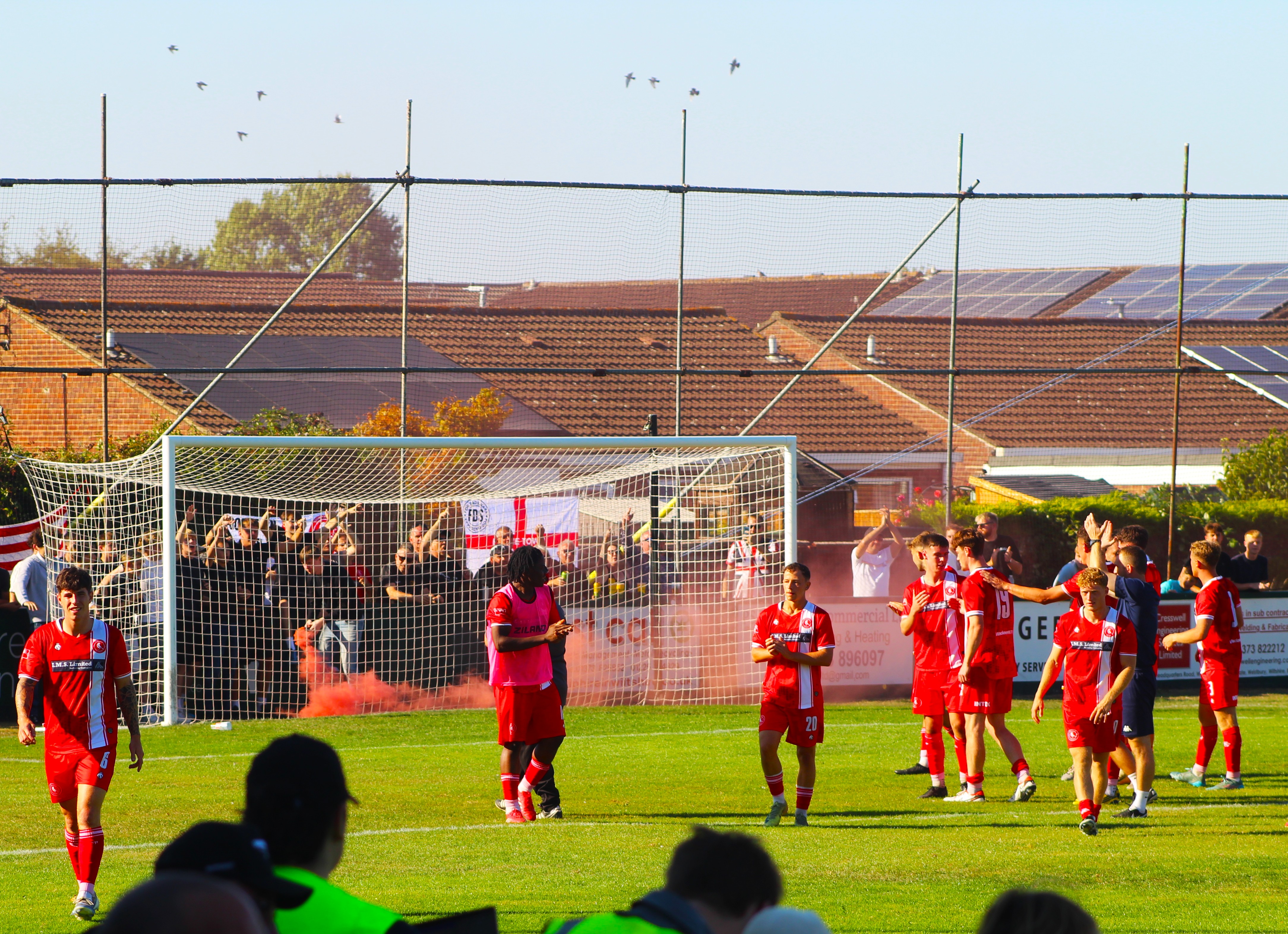 Thankfully, he must have heard me because he ran on, then inside, and drilled a magical daisy-cutter into the goal, just inside the far post. I was right in line with his shot. I took great enjoyment with that one. Huge celebrations in our end. We were back in it, and well done us.