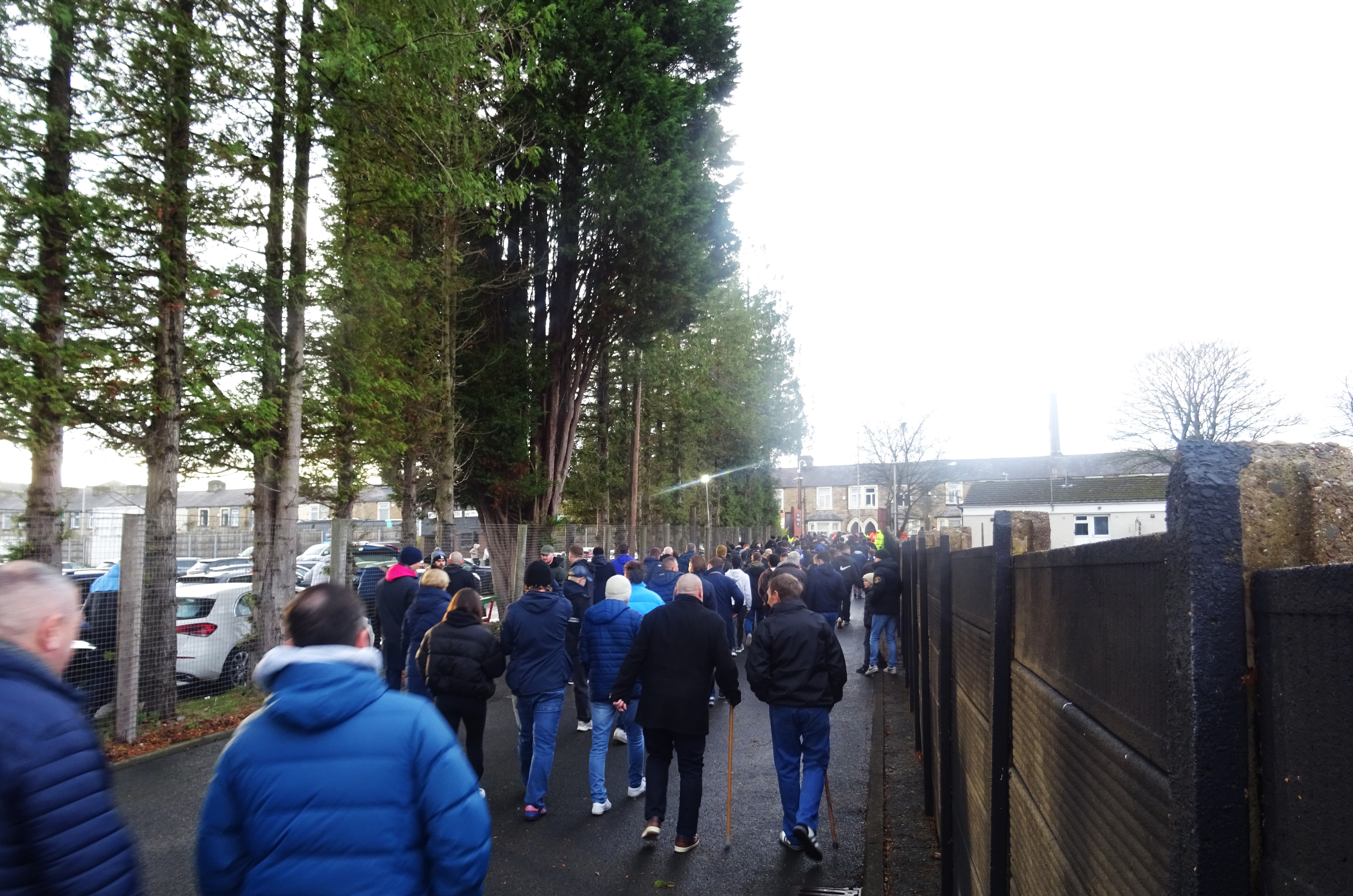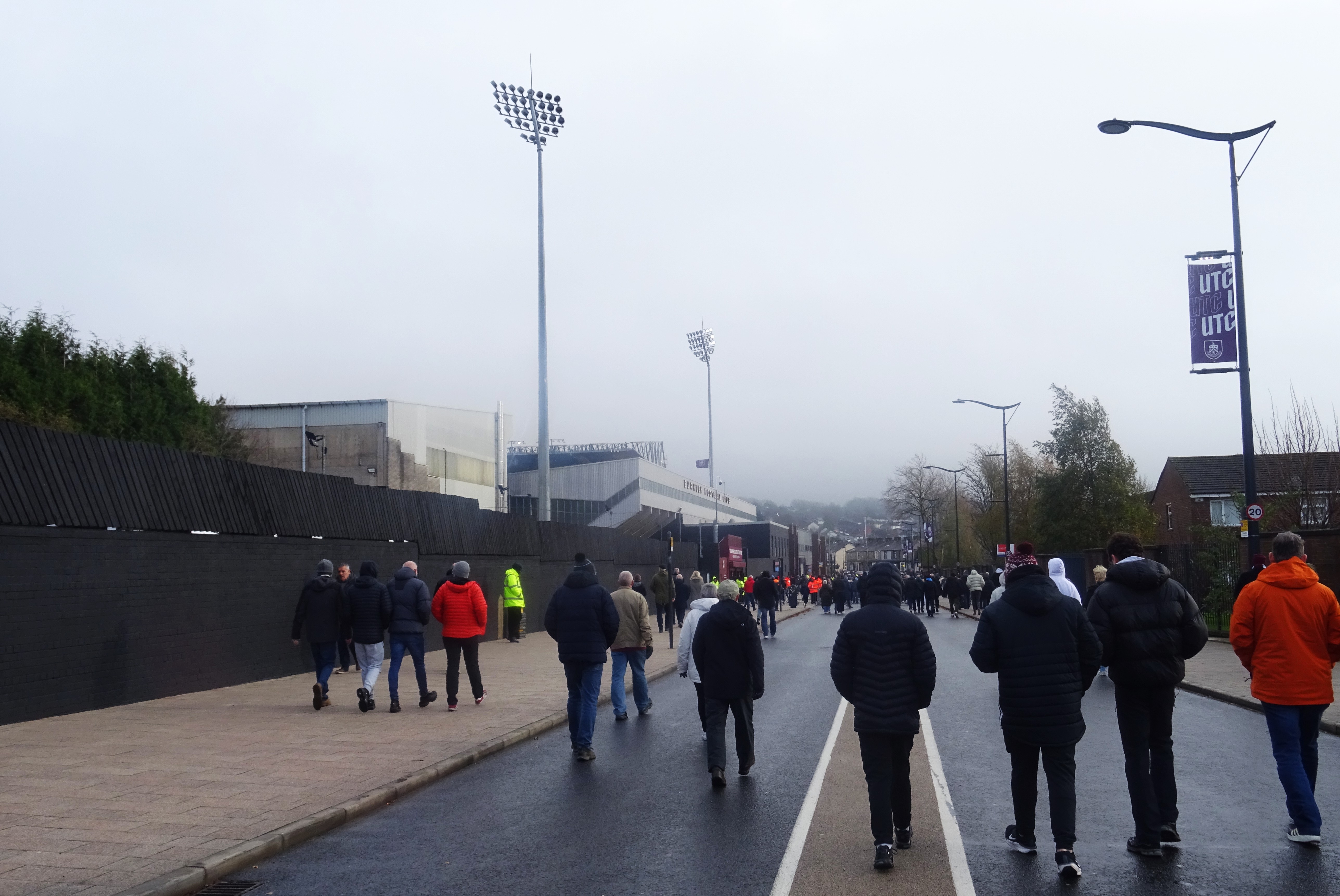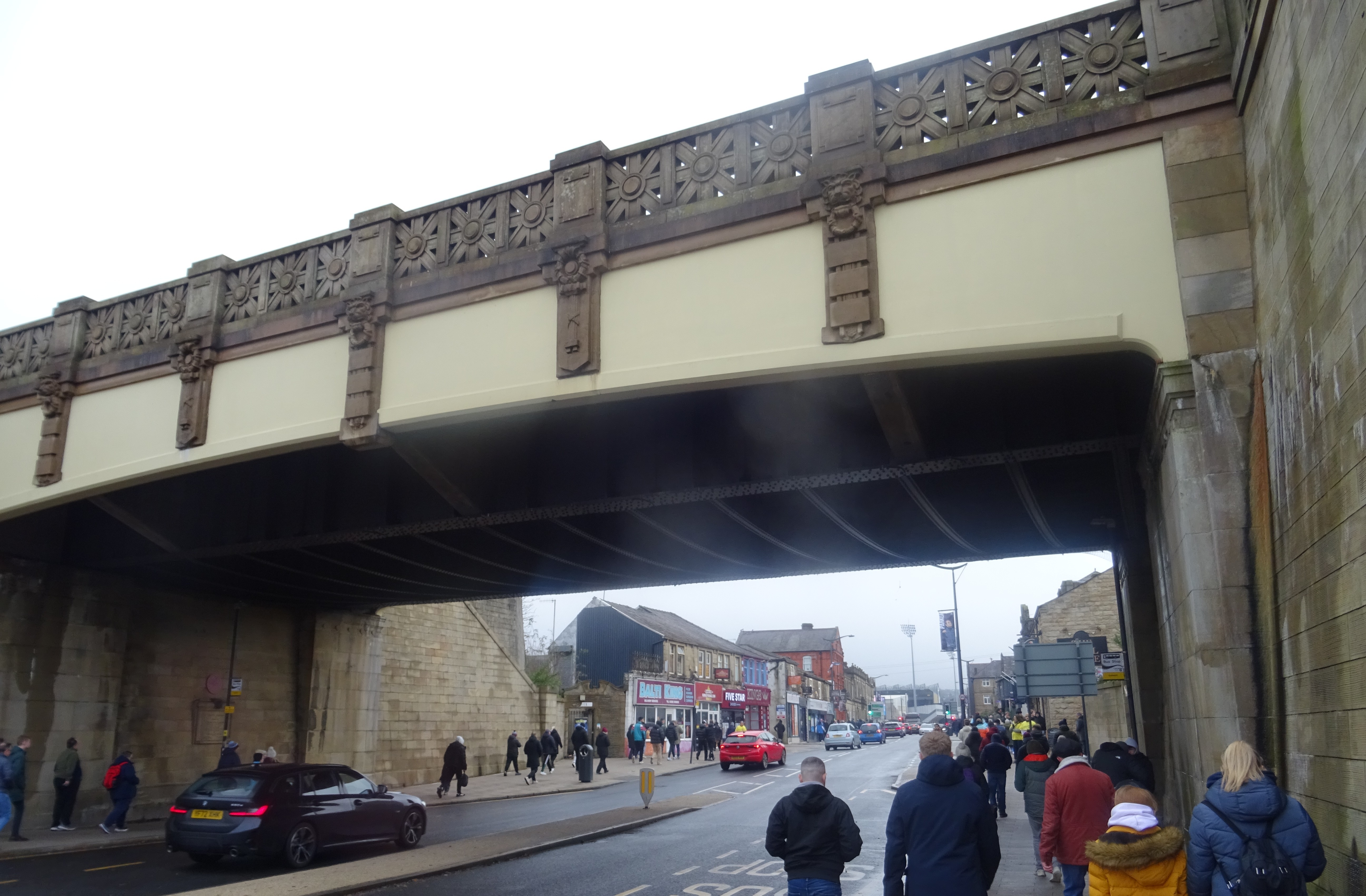 The familiar walk to Turf Moor – not so cold, thank heavens – took us under the aqueduct on Yorkshire Street, and then on to Harry Potts Way.