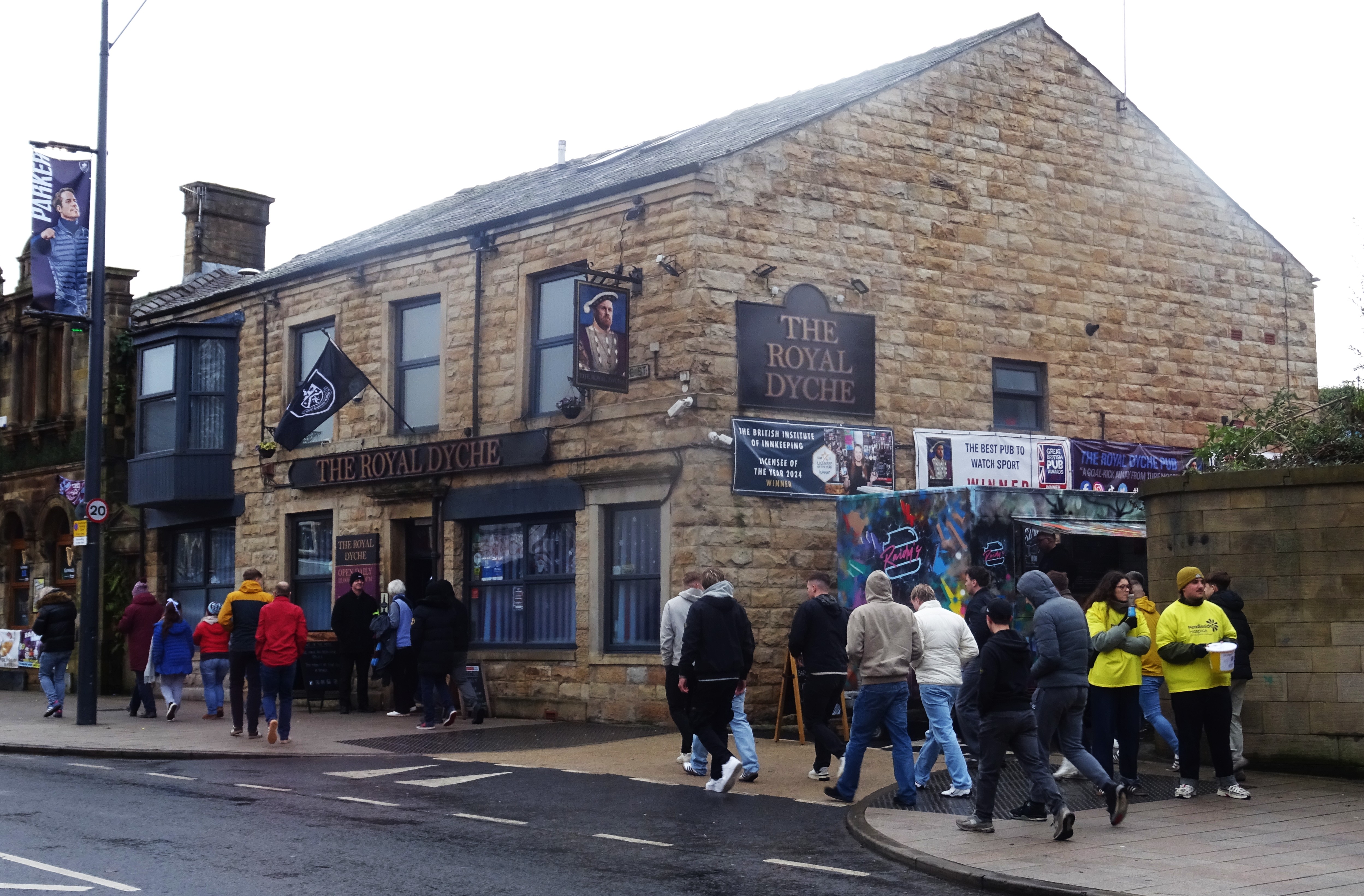 While the other three veered off to gain access to the away end via a new entrance – the away fans are now located in the northern half of the Fishwick Stand – I wanted to take a few photos of the area around the stadium to add a little variation to my spread of photos from the day. There are four pubs on this stretch of the road – all home only – and the locals were popping in and out of them as I walked past the modernised frontage – painted a cool black – of the ancient single-tiered Bob Lord Stand.