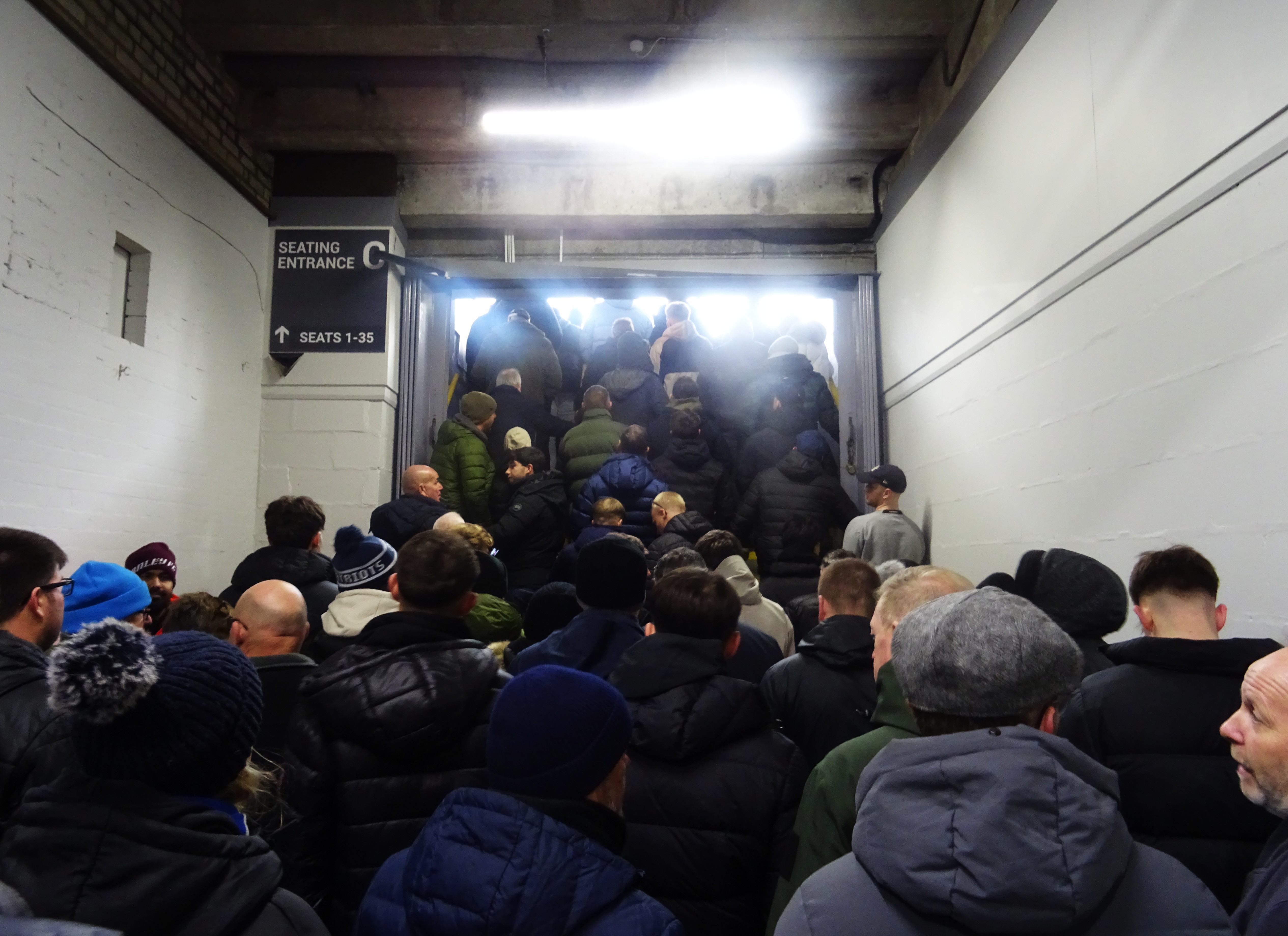 I had a couple of spares to hand over to a work colleague’s daughter and her boyfriend, and it transpired that they were on the very same train. The timings all worked out. I soon met up with them outside the away end and I was inside at 4.20pm.
