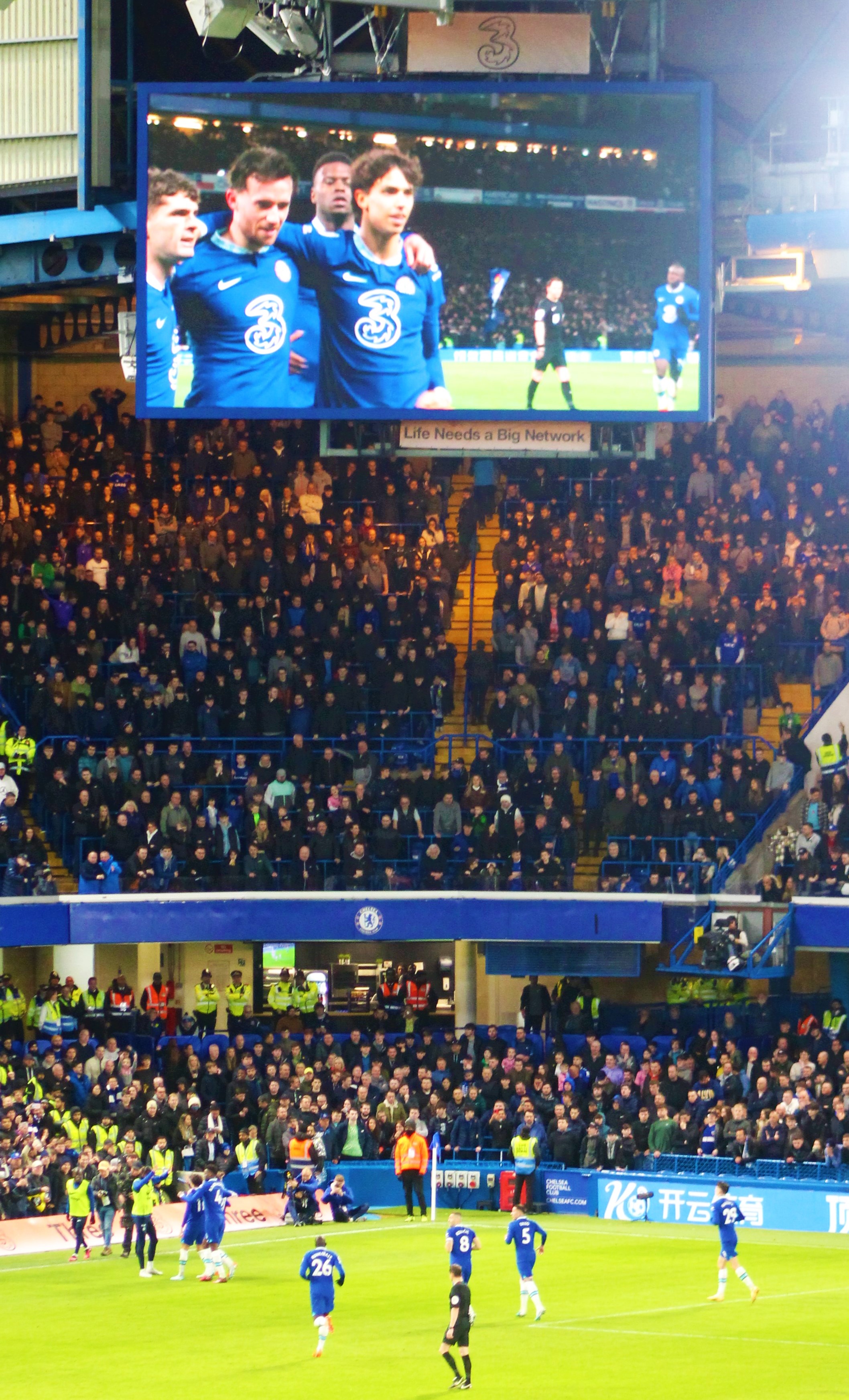 During the day, I had reminded everyone that Everton last beat us in a league game at Stamford Bridge way back in 1994. I was scolded for mentioning it, but I was confident. I bumped into Hersham Bob – no laced-up boots, nor corduroys, alas – who suggested that the returning Kiernan Dewsbury-Hall would get the winner.