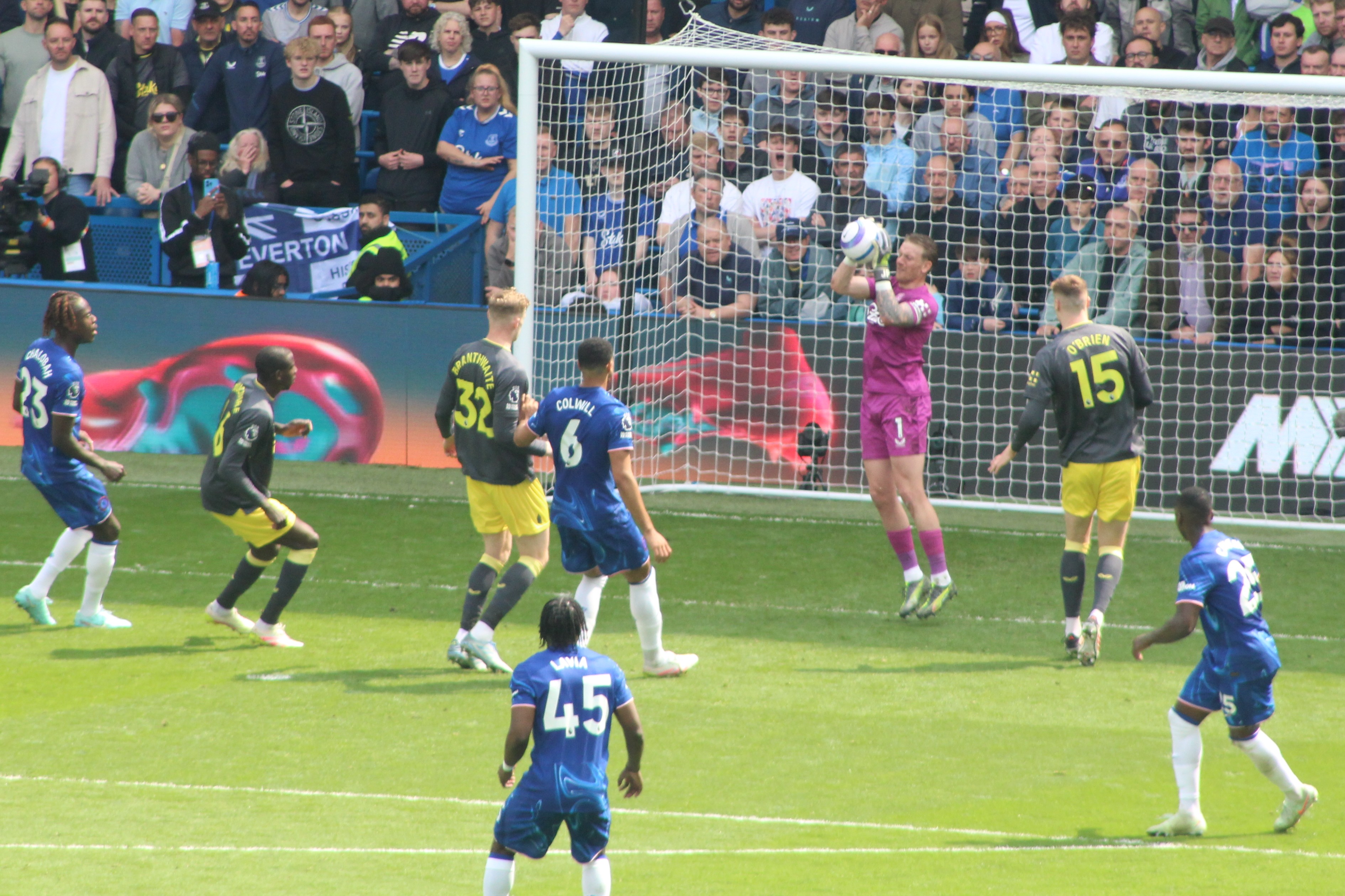 On seventy-five minutes, Pickford tipped a Reece James free kick over the bar.