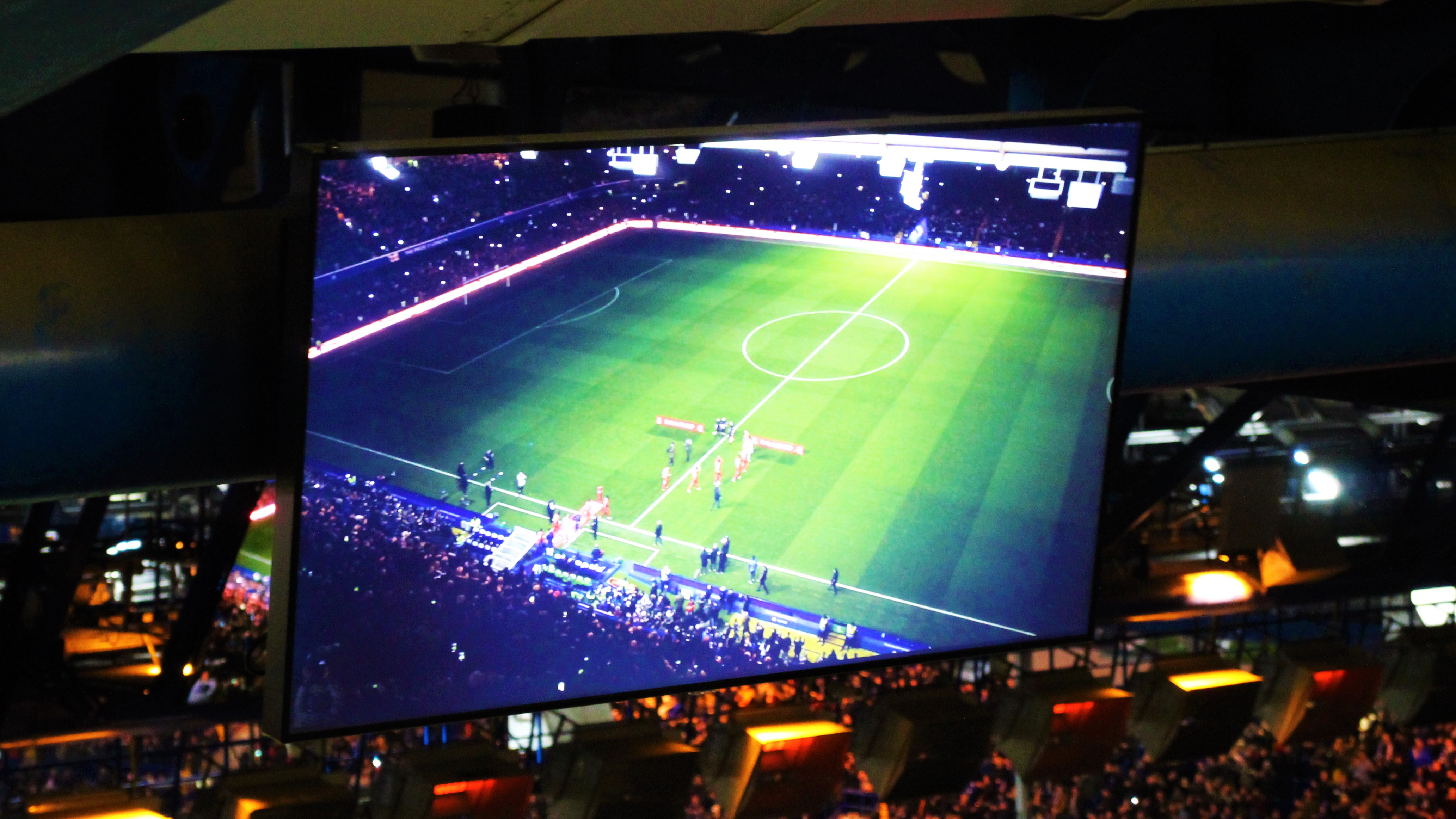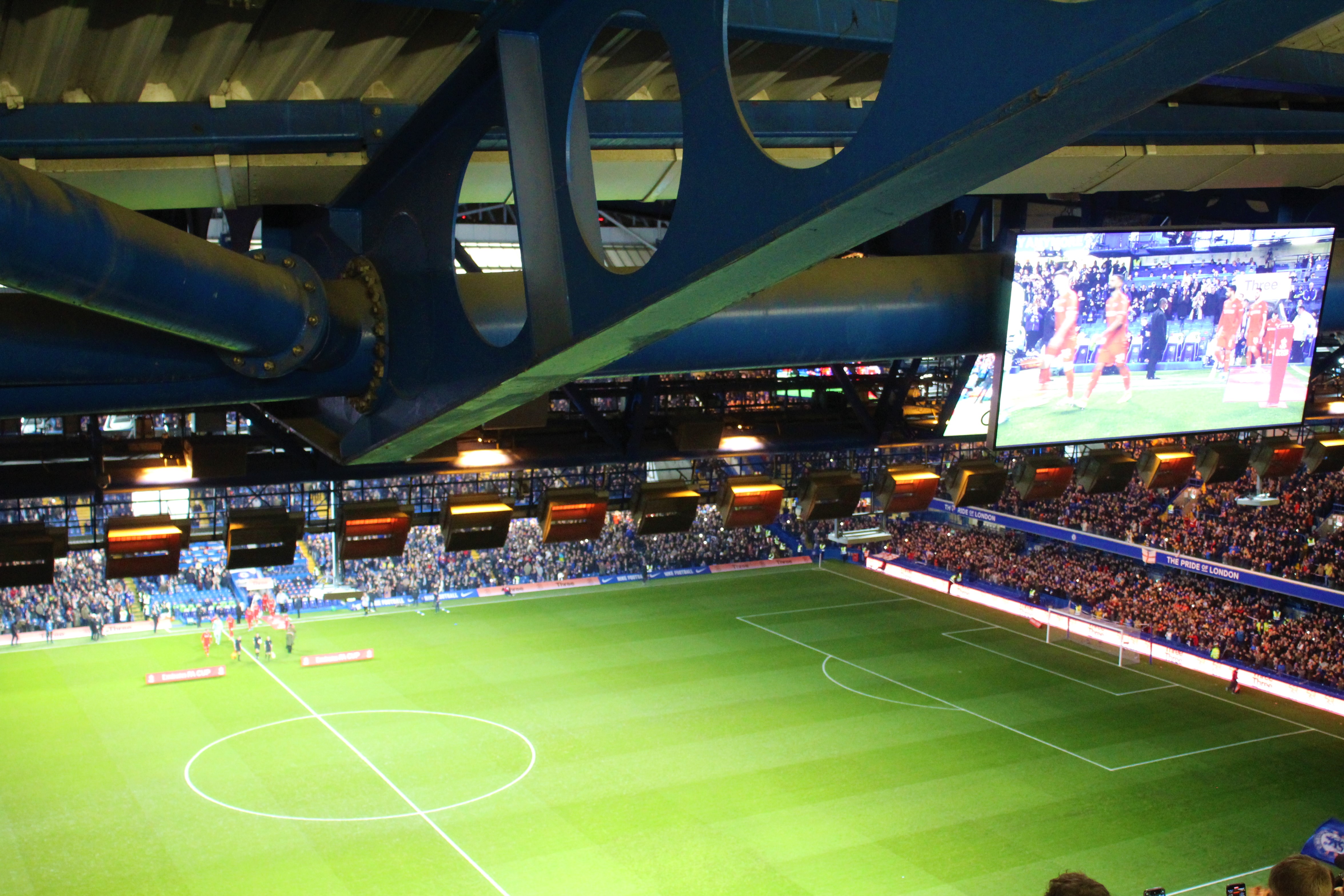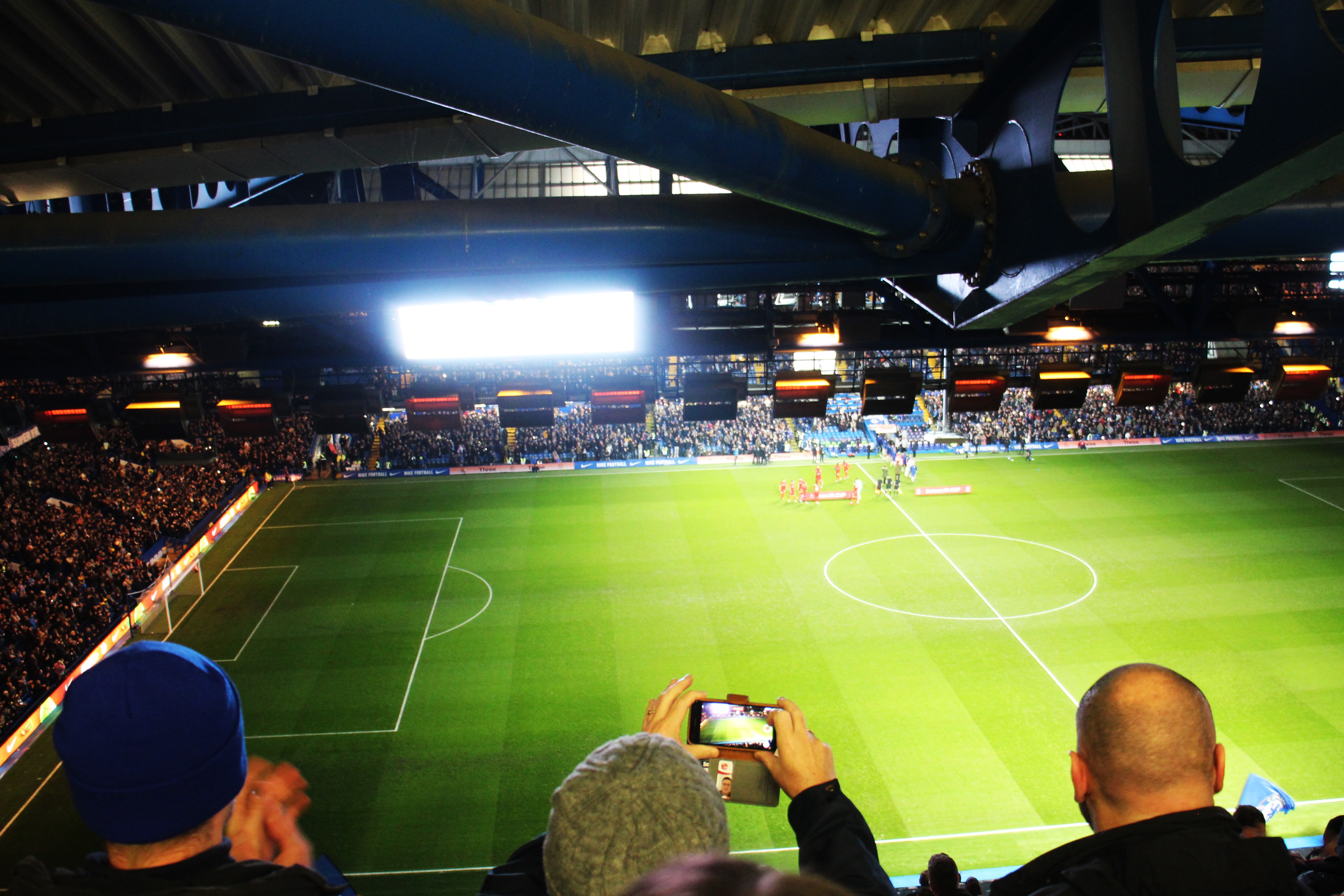 A quick look around. Most people in the lower tier. Team banners all over the south side of the top tier. A few people dotted around the middle tier and the north side of the top tier. Altogether surreal. Altogether strange. We had been gifted a Chelsea flag and a small blue bag was placed beneath the seat too. I didn’t bother to look in for a while. Time was moving on. I was starting to gear up for my first Chelsea game of the season and, possibly – only possibly – my last. Some fireworks, some announcements, the entrance of the teams. I spotted Prince William, a good man, and snapped away as he was introduced to the two teams.