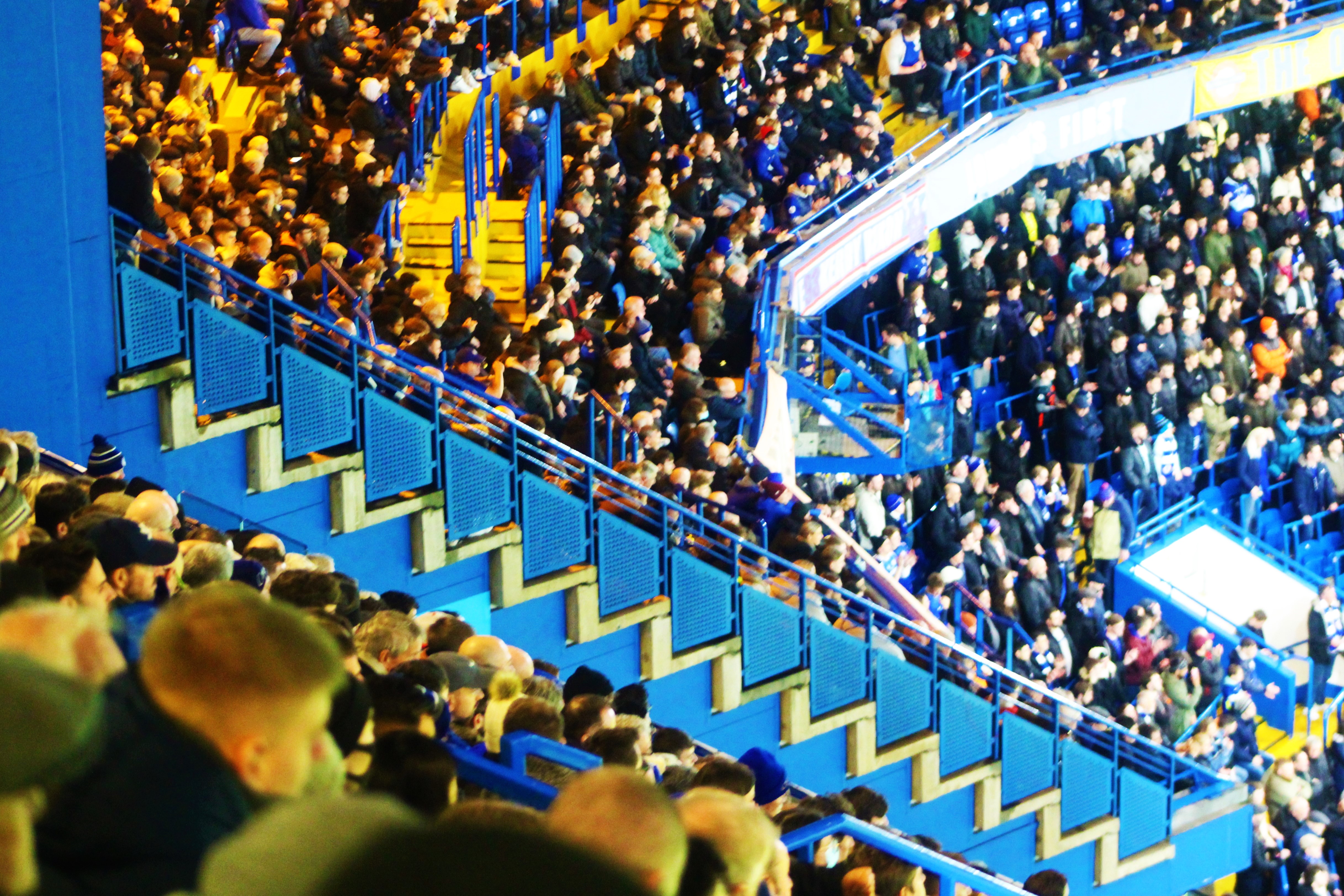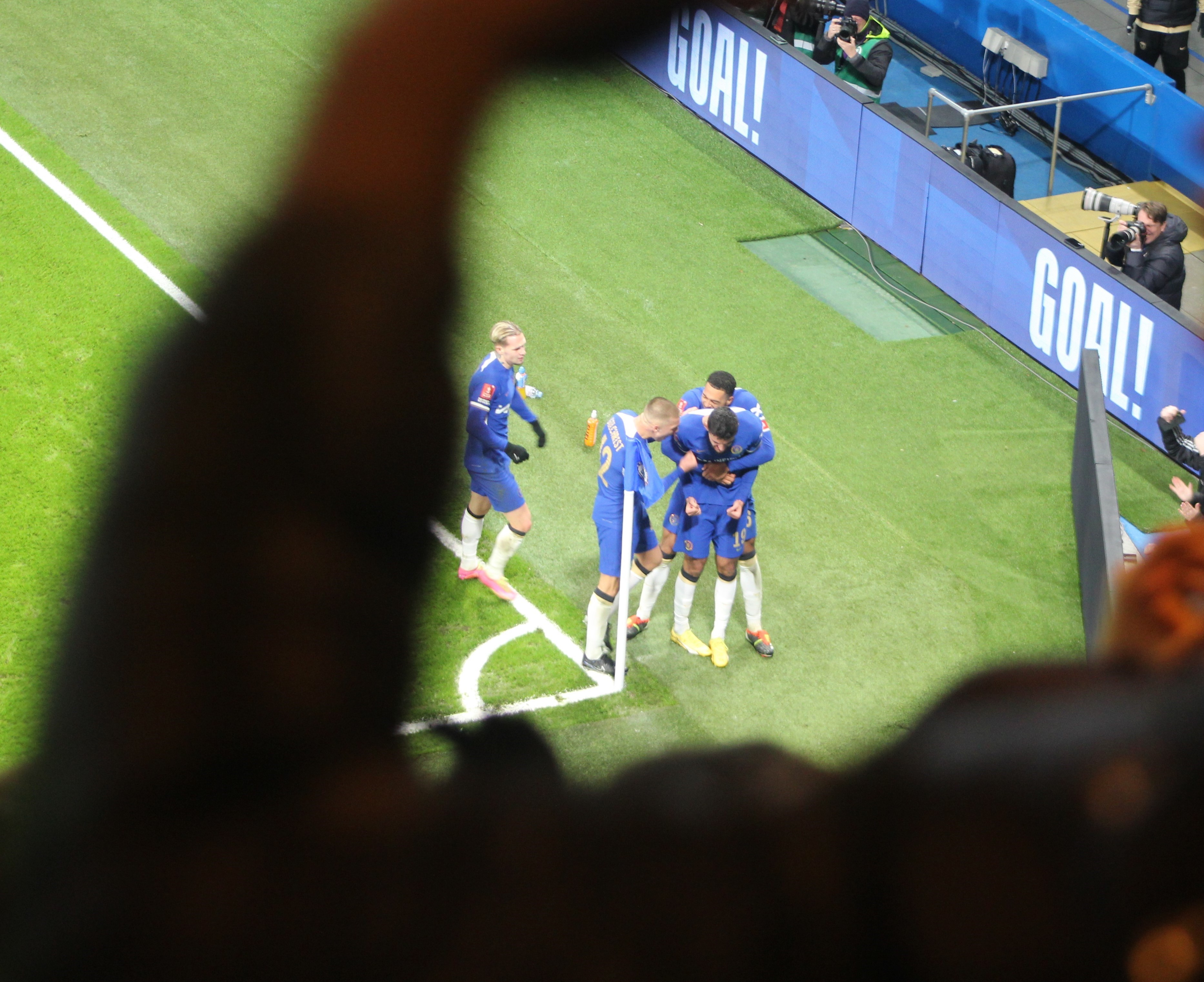 In the closing minutes, a lofted ball – into space, what joy – found a rampaging Ben Chilwell. He met it first time, pushing it into the six-yard box. In the excitement of the moment, I only saw a convergence of bodies and then…GETINYOUFUCKER…the net bulge. I tried my damnedest to capture him running away in joy, but I needed to celebrate. I brushed past Parky and found myself in the stairwell. King Kenny virtually slammed me into the fence at the front – ha – but I kept my composure and snapped away. The results are, mainly blurred. A second or two later, I looked back and Kenny was screaming, his face a picture of joy, and the scene that I saw me was a virtual copy, with less people, of the aftermath of Marcos Alonso’s winner in 2017, a mere thirty yards further south.