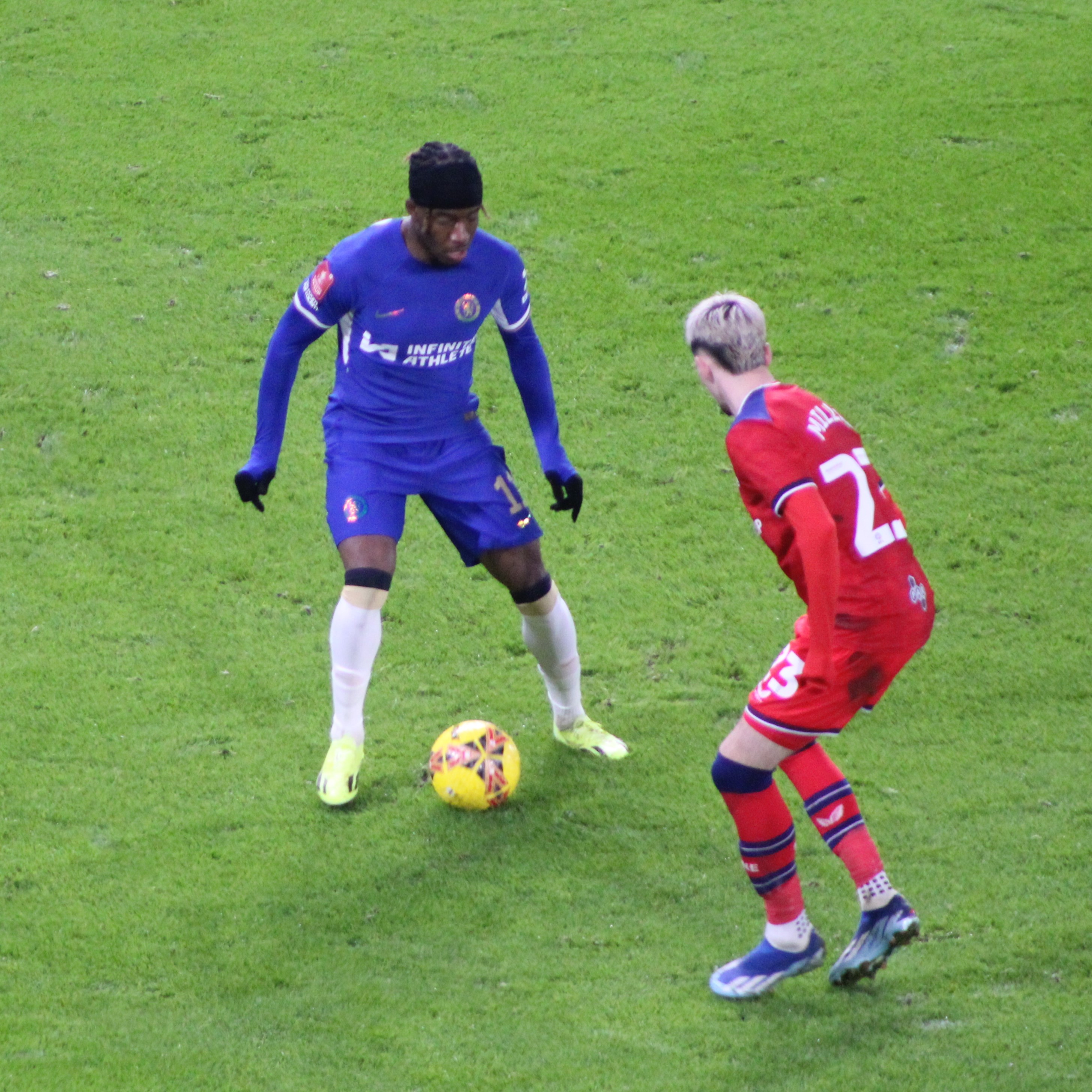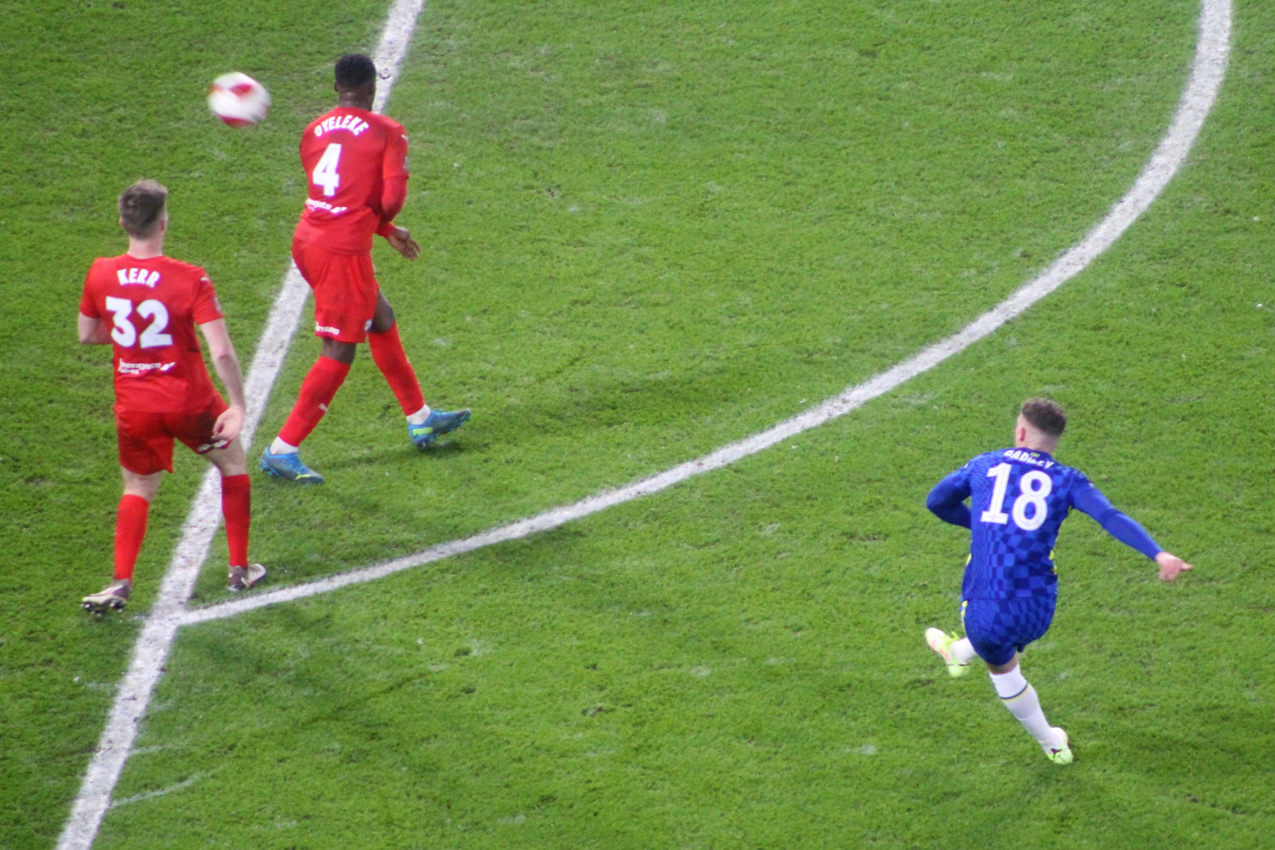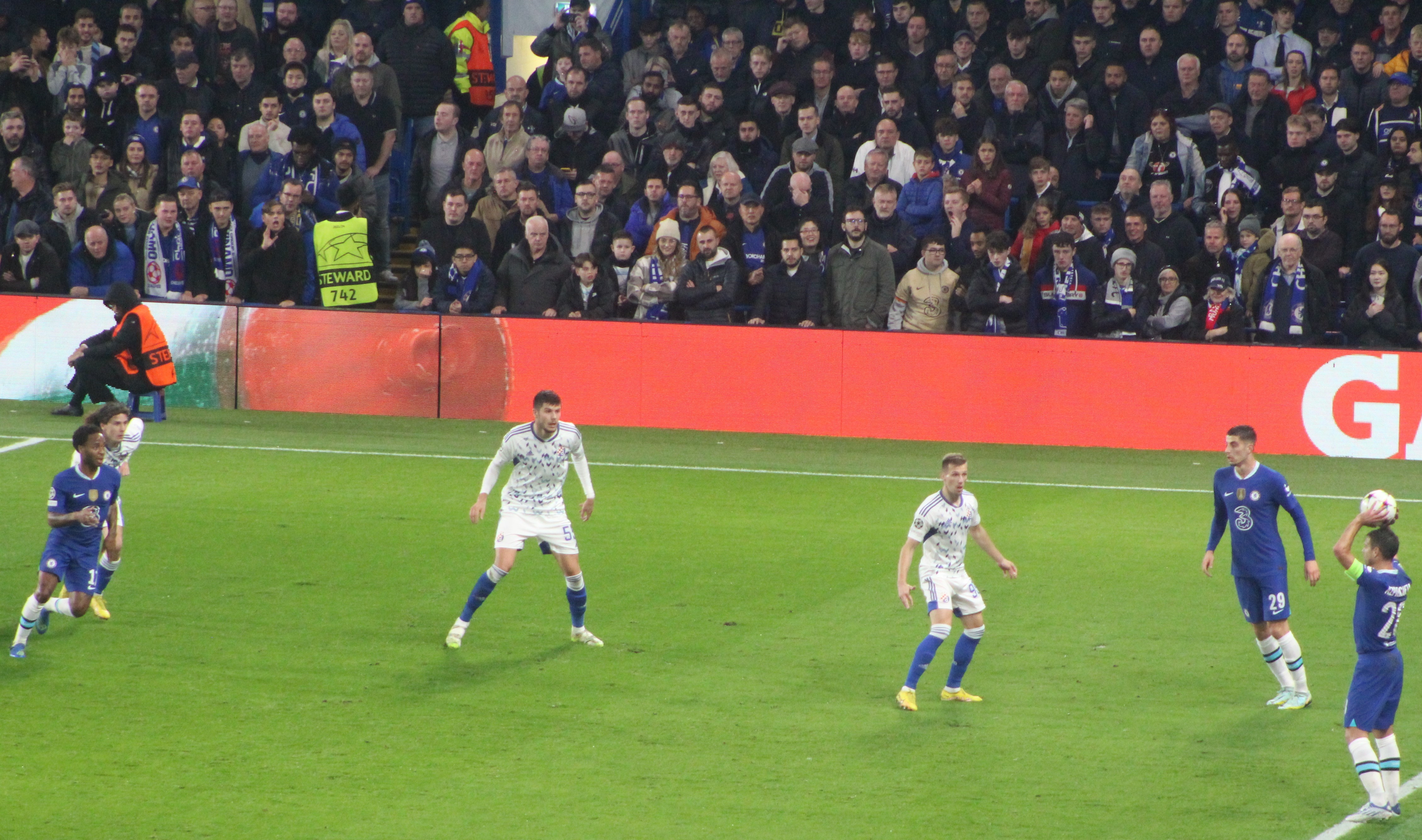 The game began and we edged the opening spell quite easily with Mason Mount busy and involved. A couple of very early attacks down the right amounted to nothing. The rain was just about staying off.