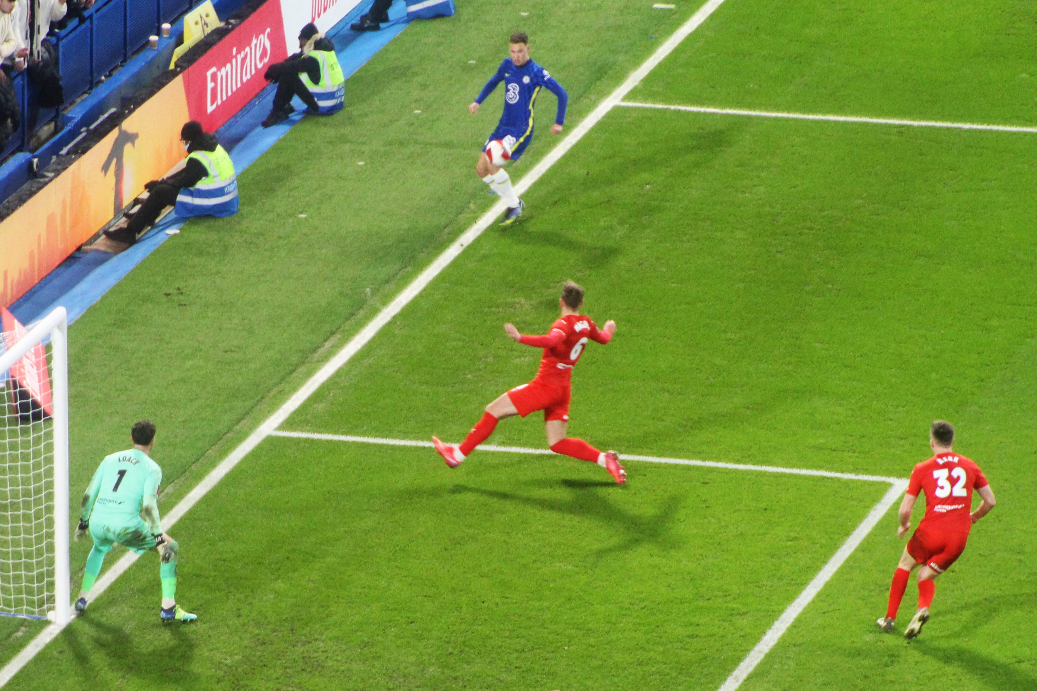 After a full quarter of an hour, an optimistic effort from Toni Rudiger flew tamely wide of the Leicester goal. A rare foray into our half saw a cross from Timothy Castagne for Jamie Vardy but Reece James blocked well. Chances were rare though. Mount advanced well but shot wide. An effort from Timo Werner replicated the curve of the arch overhead as his shot plopped into the area housing the Leicester fans.
