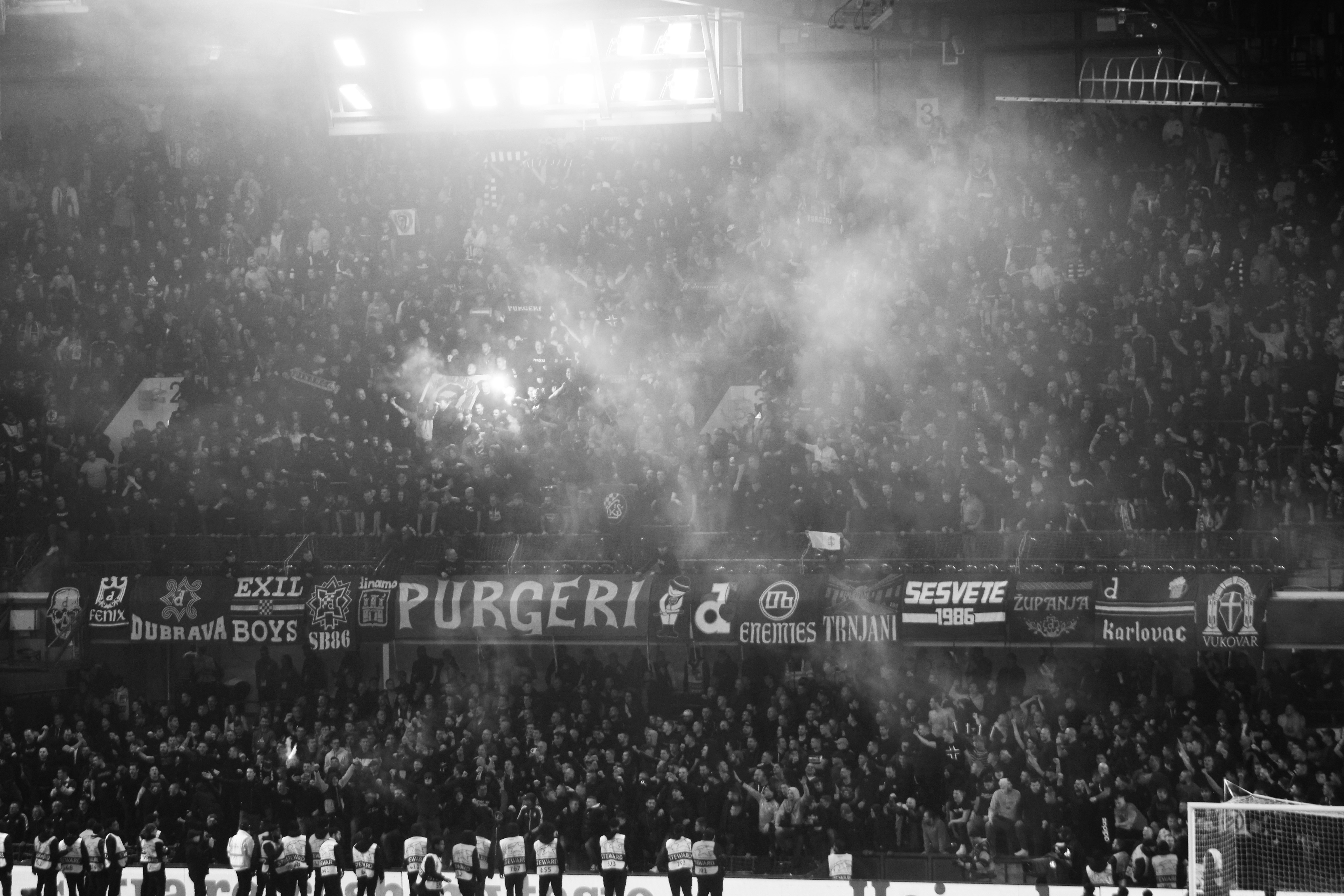 Two displays took over the two ends of the stadium. Our mosaic looked a bit patchy, their banner looked decent.