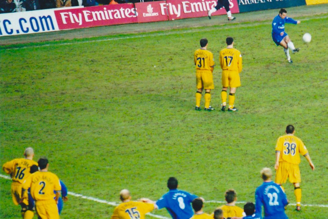 A few long crosses and corners from the right did not trouble Schmeichel in the Leicester goal. His father was in the Manchester United goal in 1994. It infamously rained that day and just around the half-way mark of the first-half, the heavens opened. The omens were against us. My camera bag got drenched, my jacket was getting drenched. The blue cardboard bag from Chelsea was getting drenched.