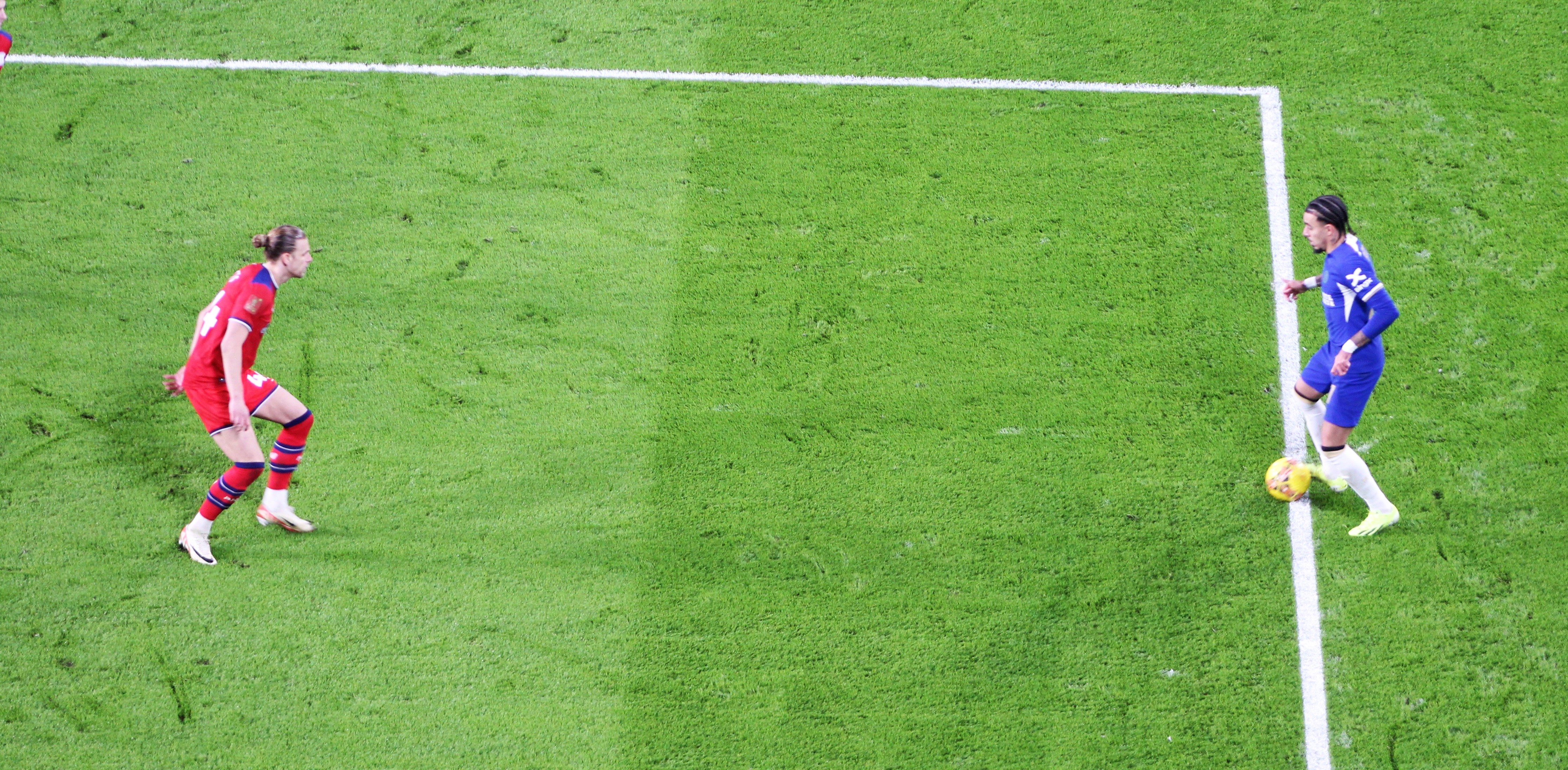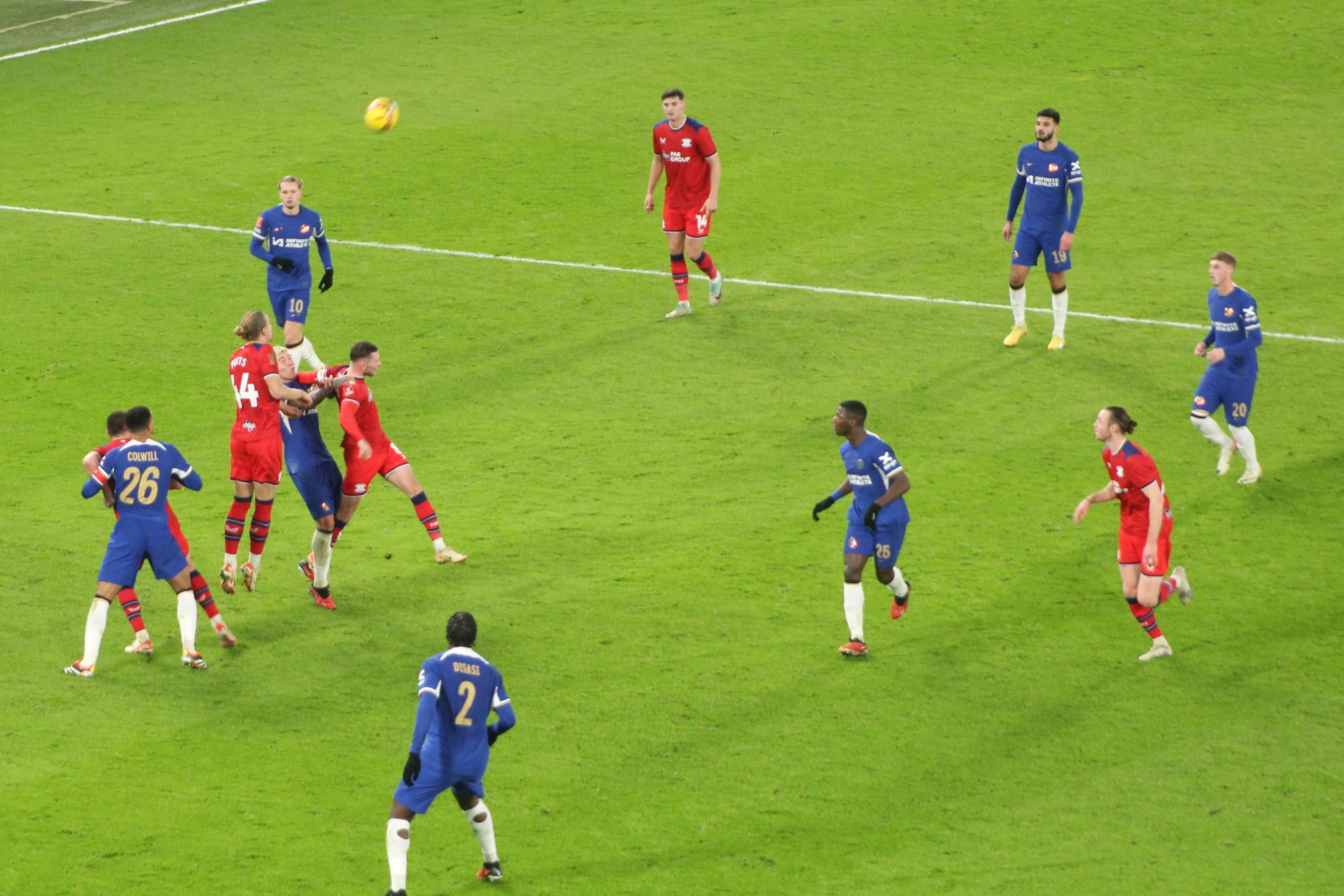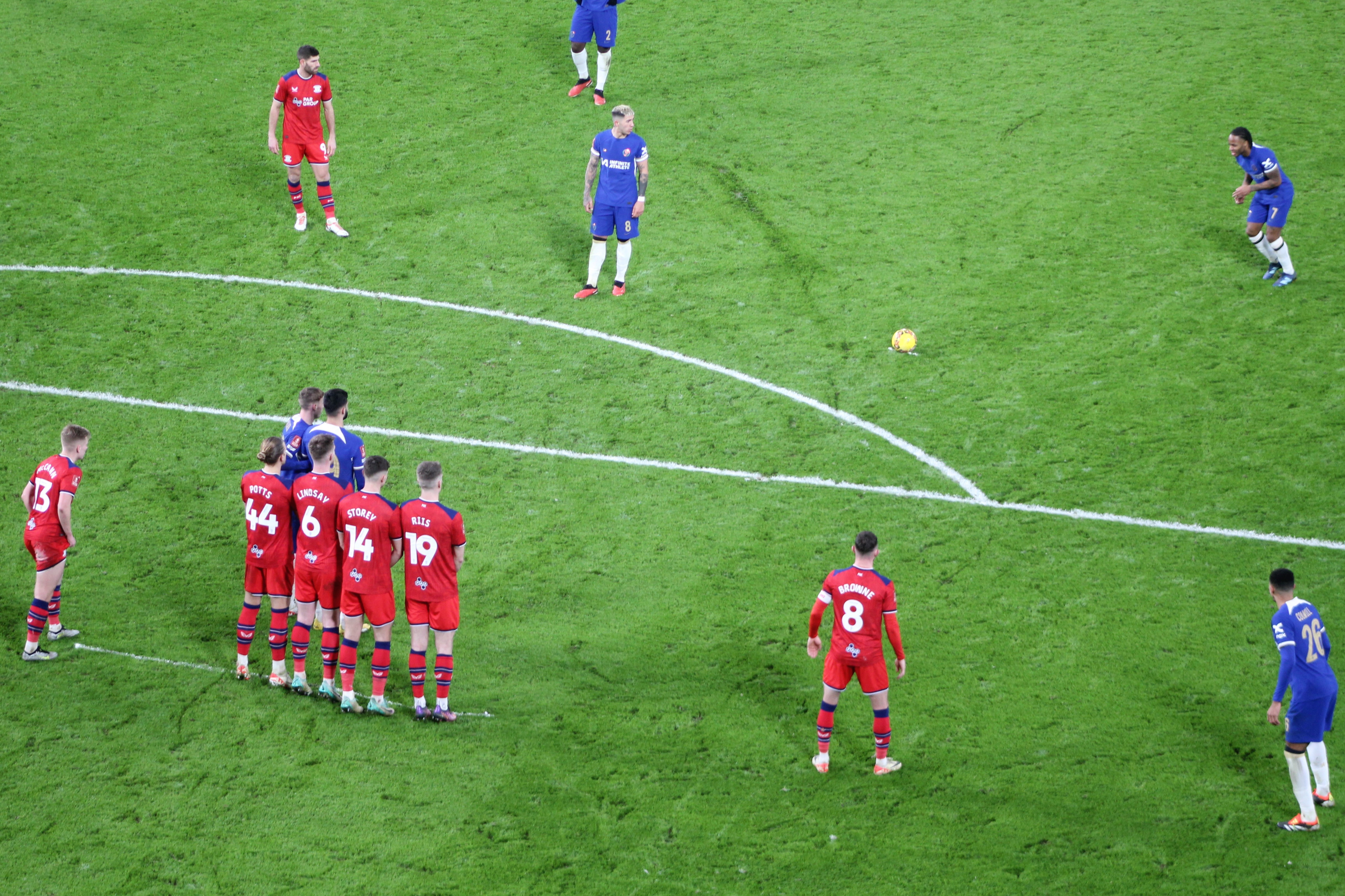 A free-kick to Chelsea about thirty yards out made me wonder if Palmer would go for goal. Indeed, he decided to shoot. The ball struck the wall and flew off for a corner. But wait, there was a VAR check for a handball, which surprised me.