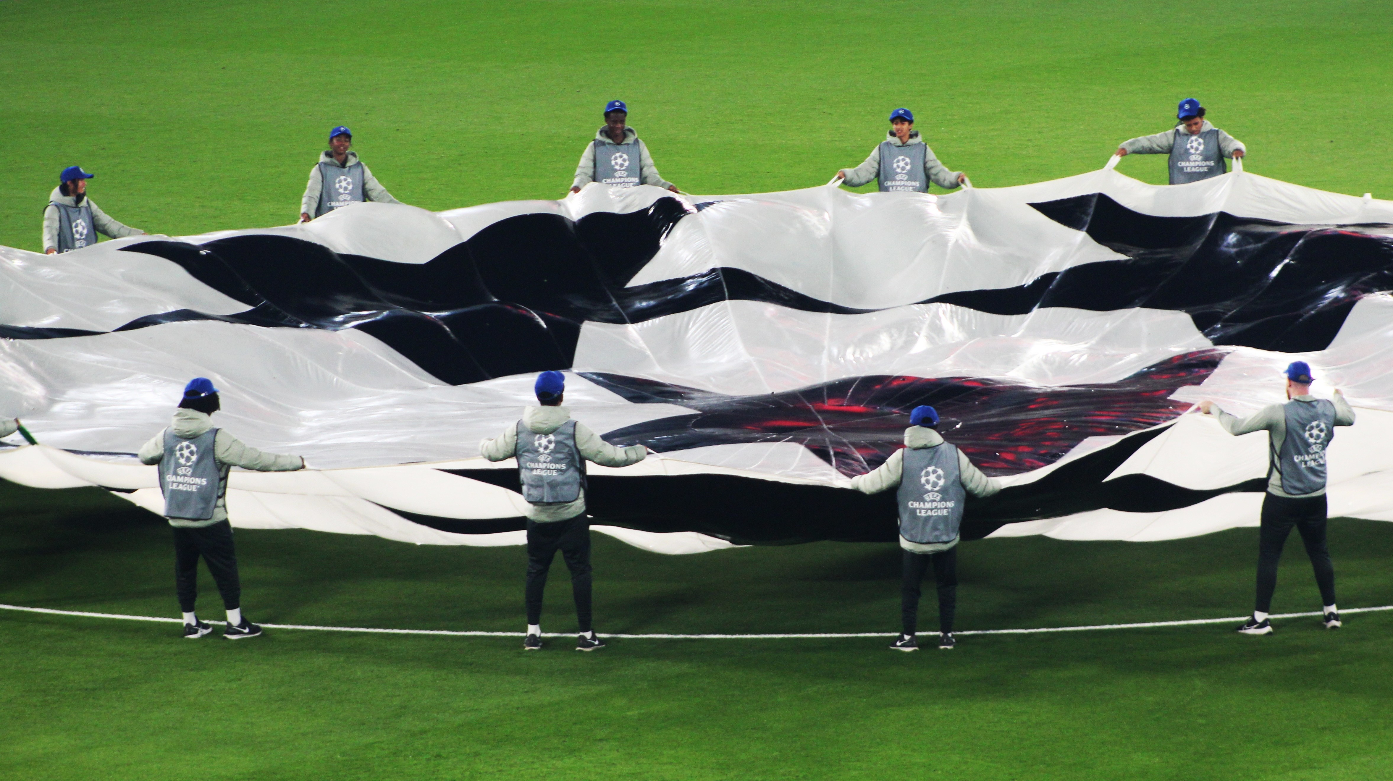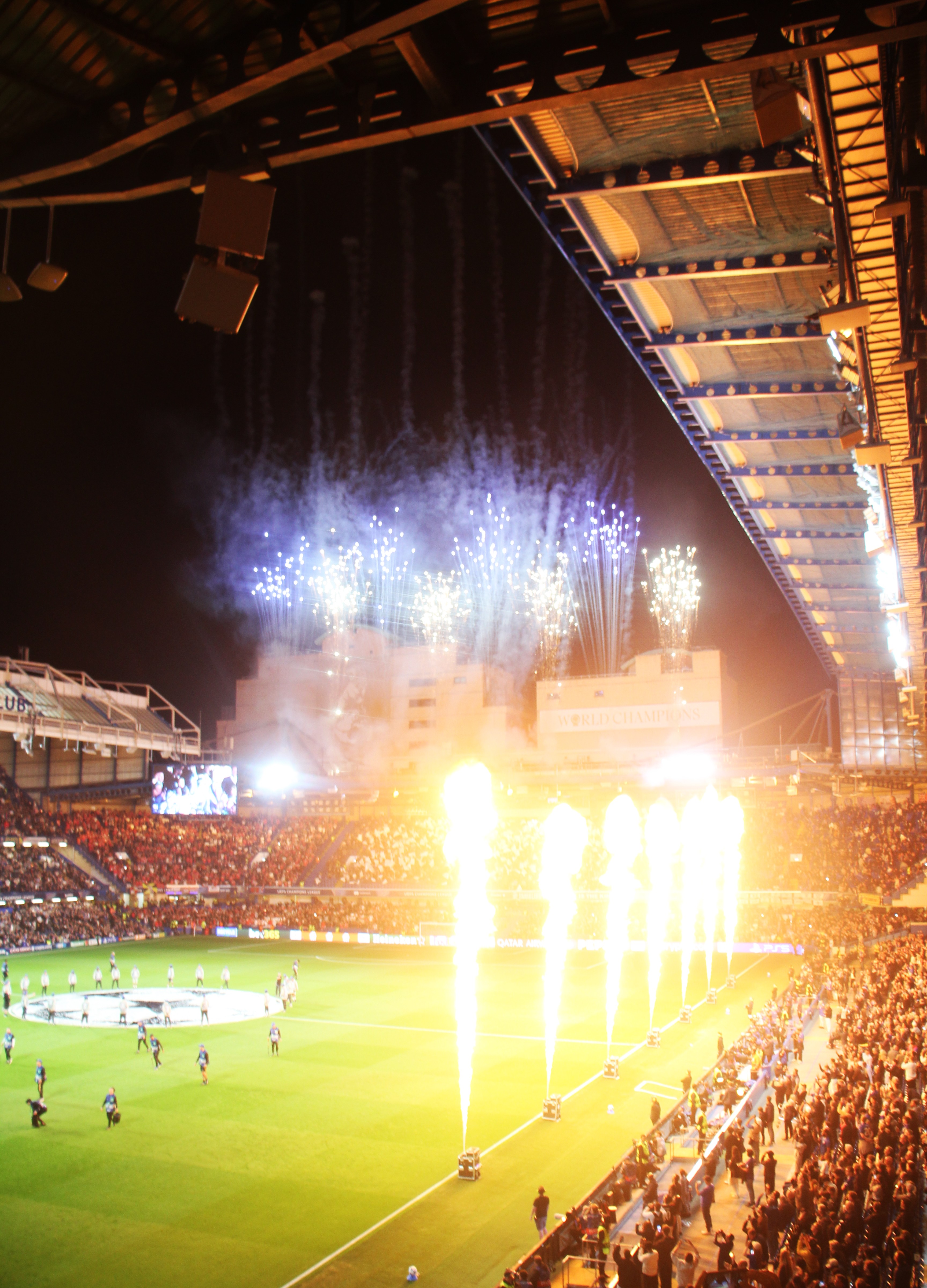 “Our House”, “Parklife”, then fireworks flew off The Shed and the Matthew Harding. Flags were twirled in front of the West Stand, a huge “tifo” of a Chelsea Lion guarding a vast haul of our continental and inter-continental trophies and “Liquidator”. Flames shot into the sky in front of the West Stand, the teams entered the pitch, the Champions League logo, the Champions League anthem.