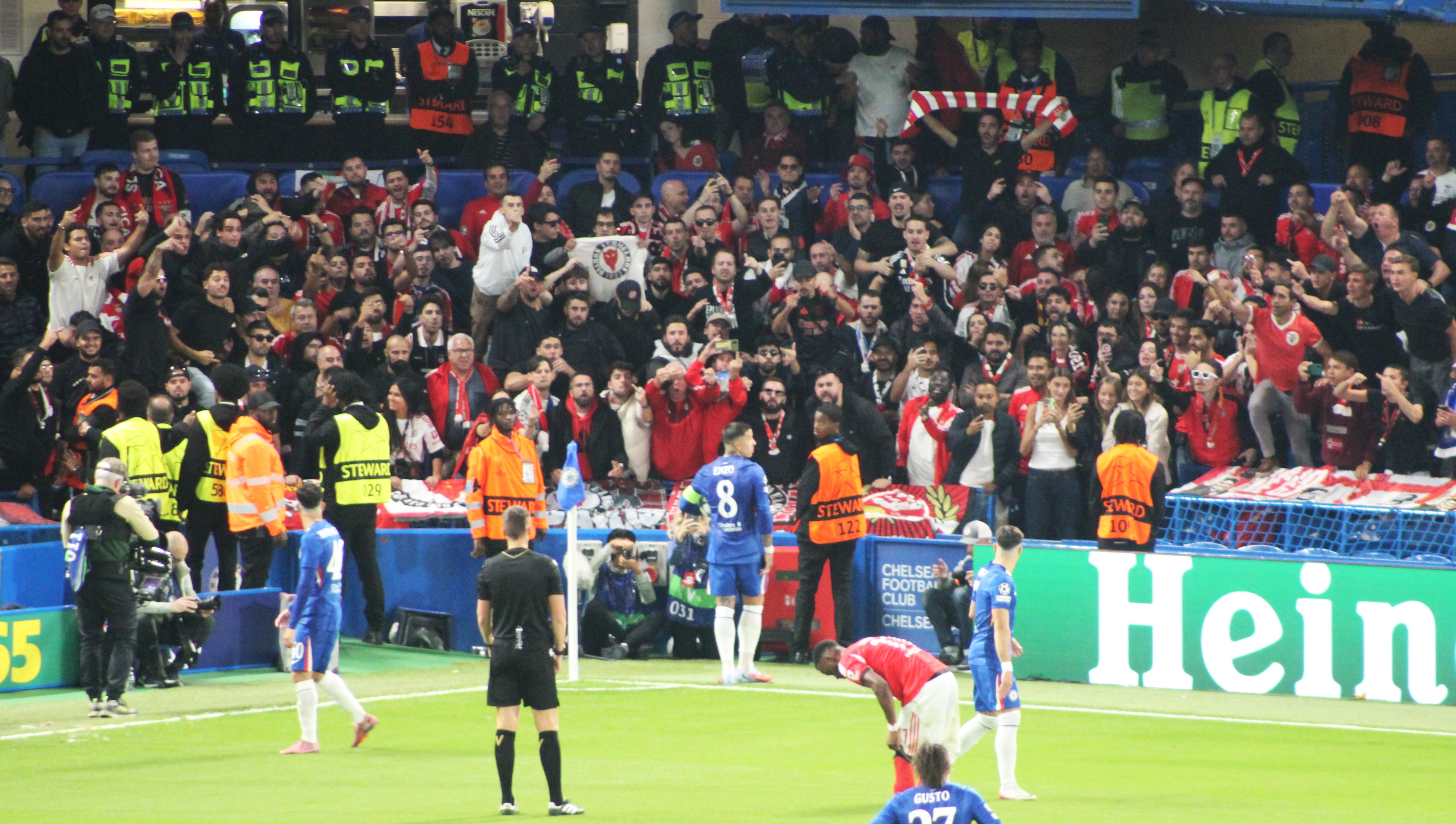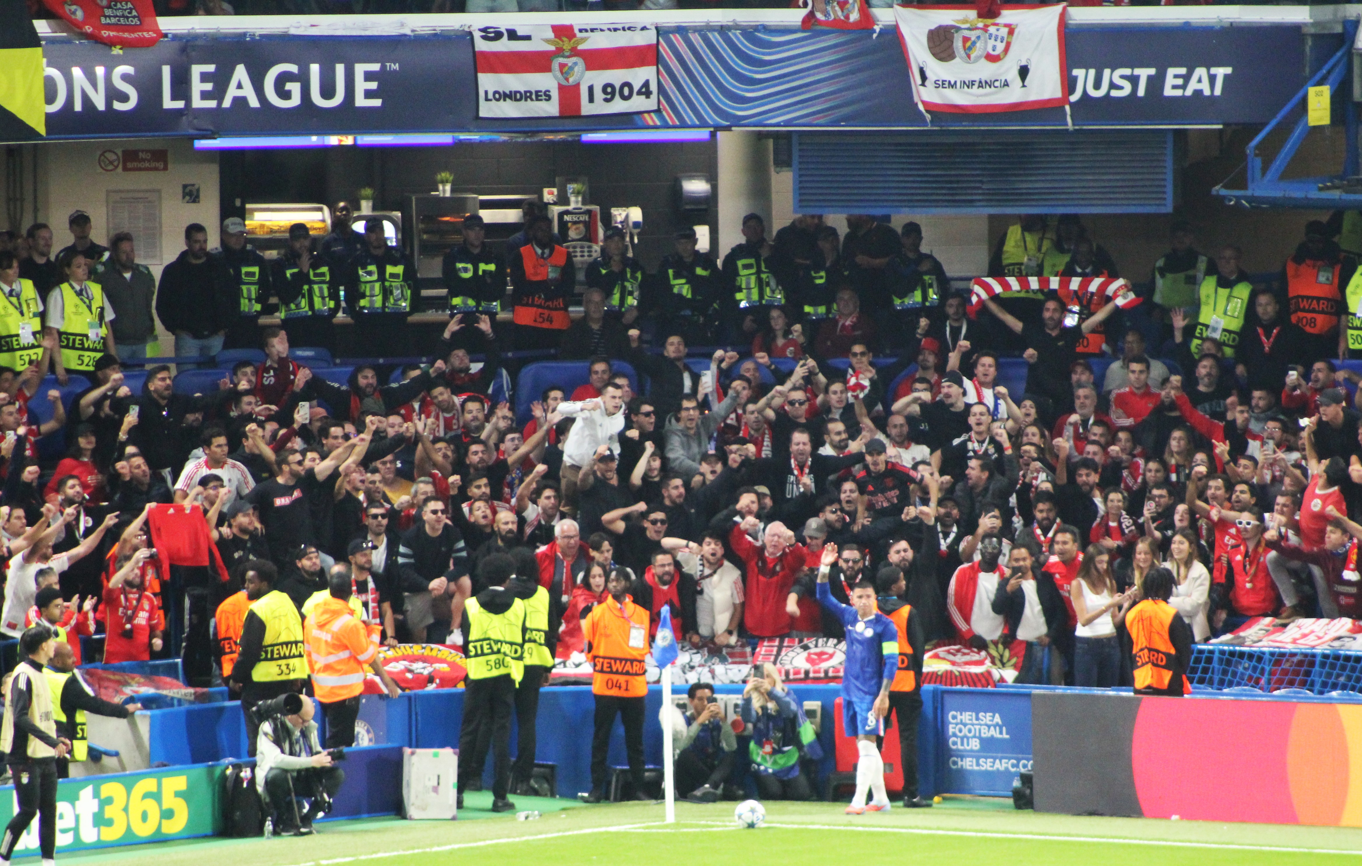 On thirty-nine minutes, Enzo was pelted with various items as he prepared to take a corner in front of the Benfica supporters.
