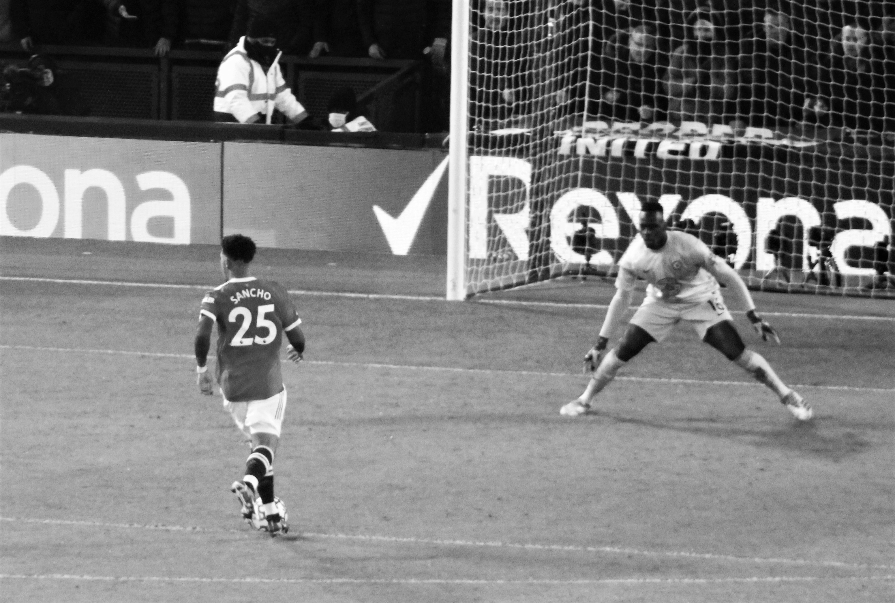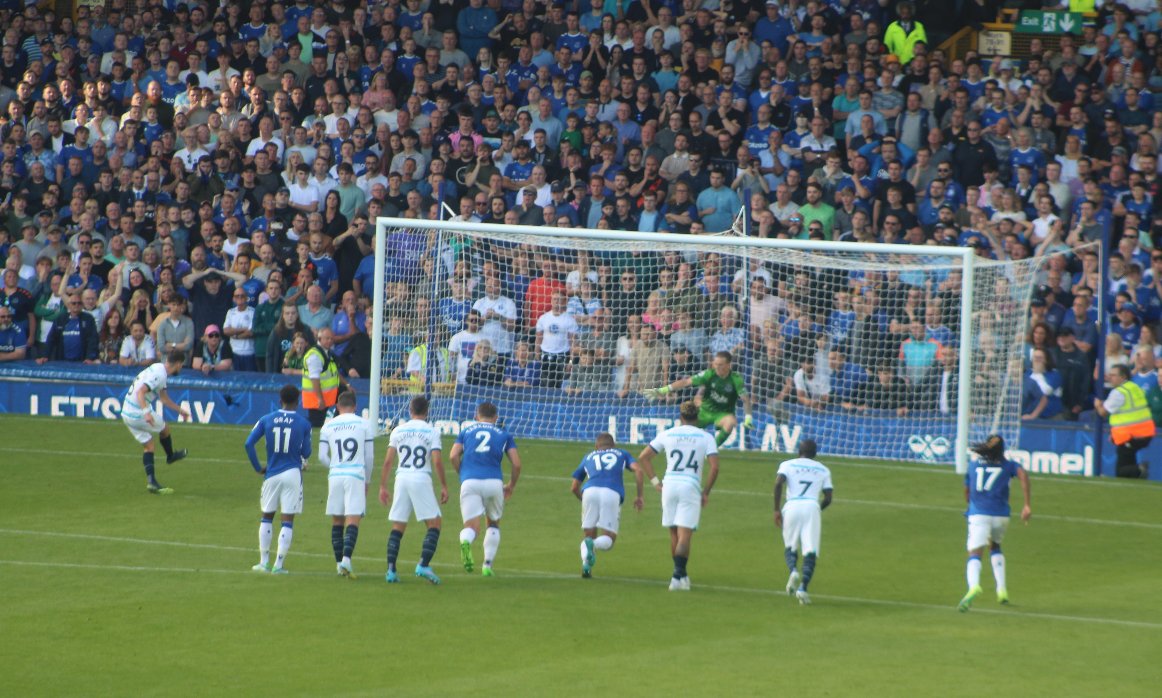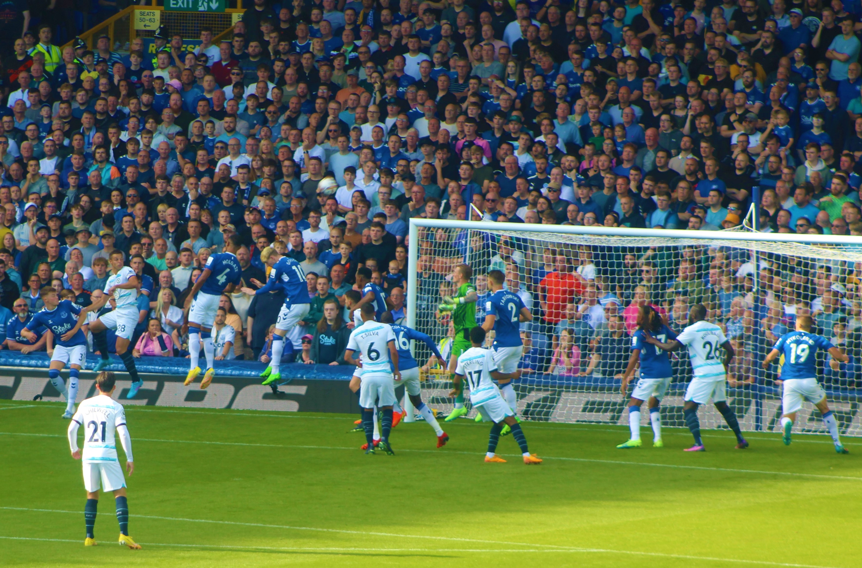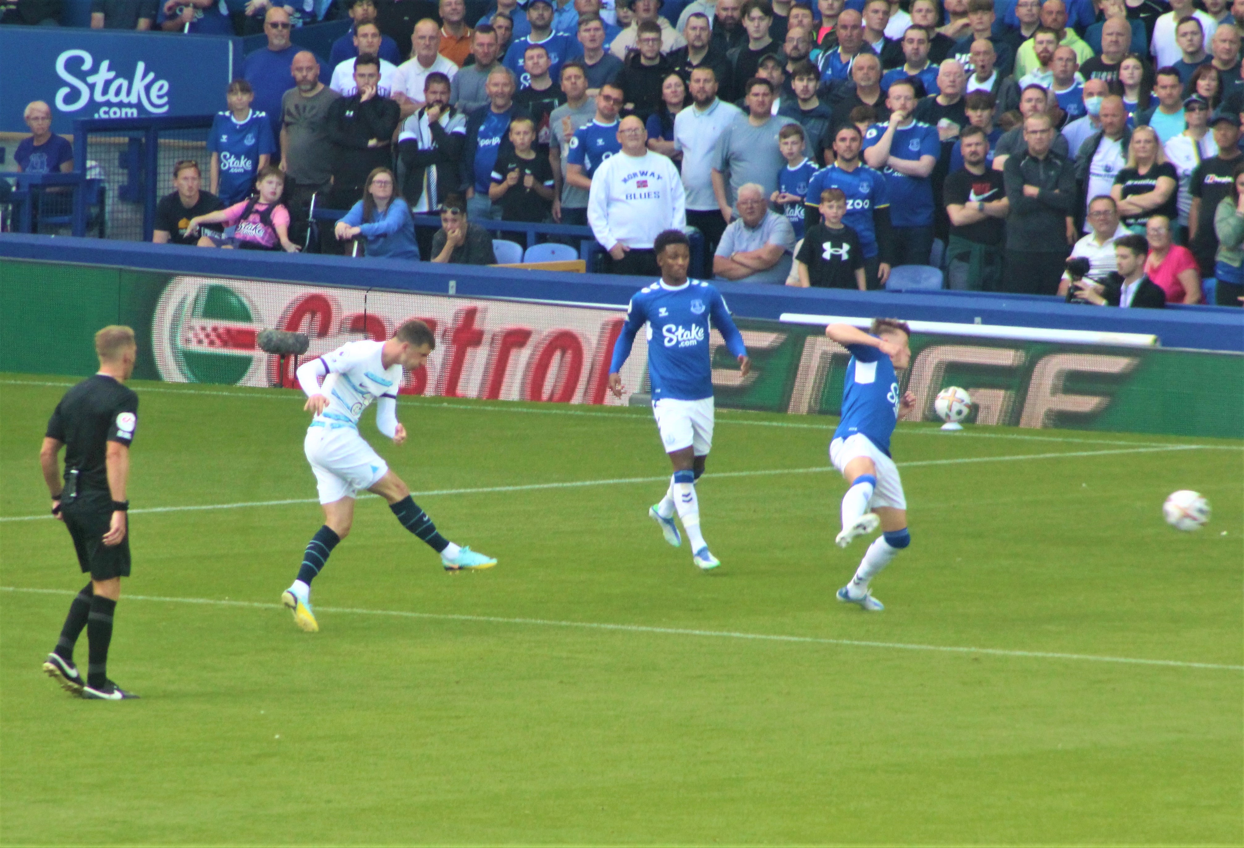 We had a rare chance when a long Sanchez punt forced Leo Pereira, pressured by Delap, to knock past the post, his ‘keeper fully committed.
