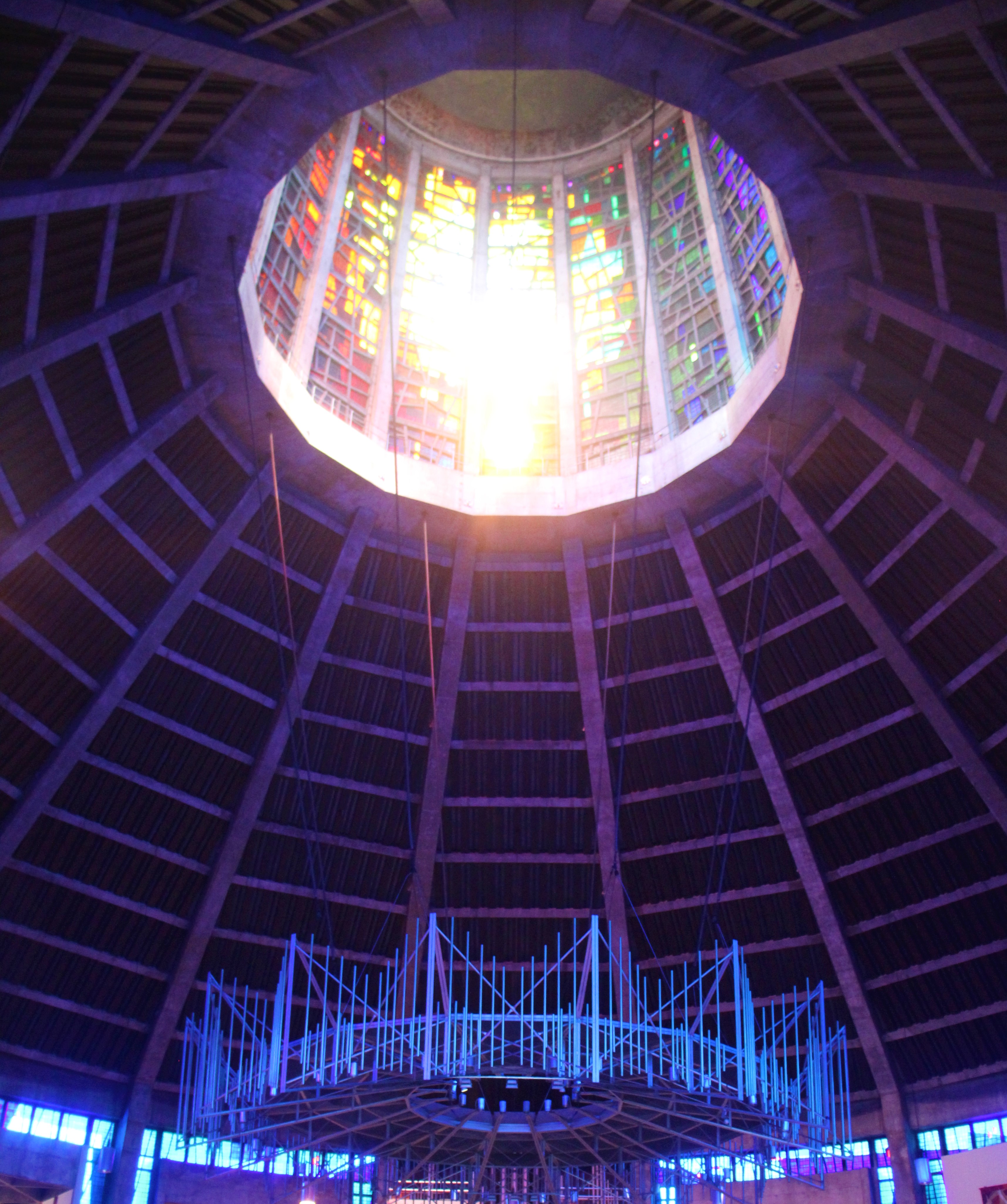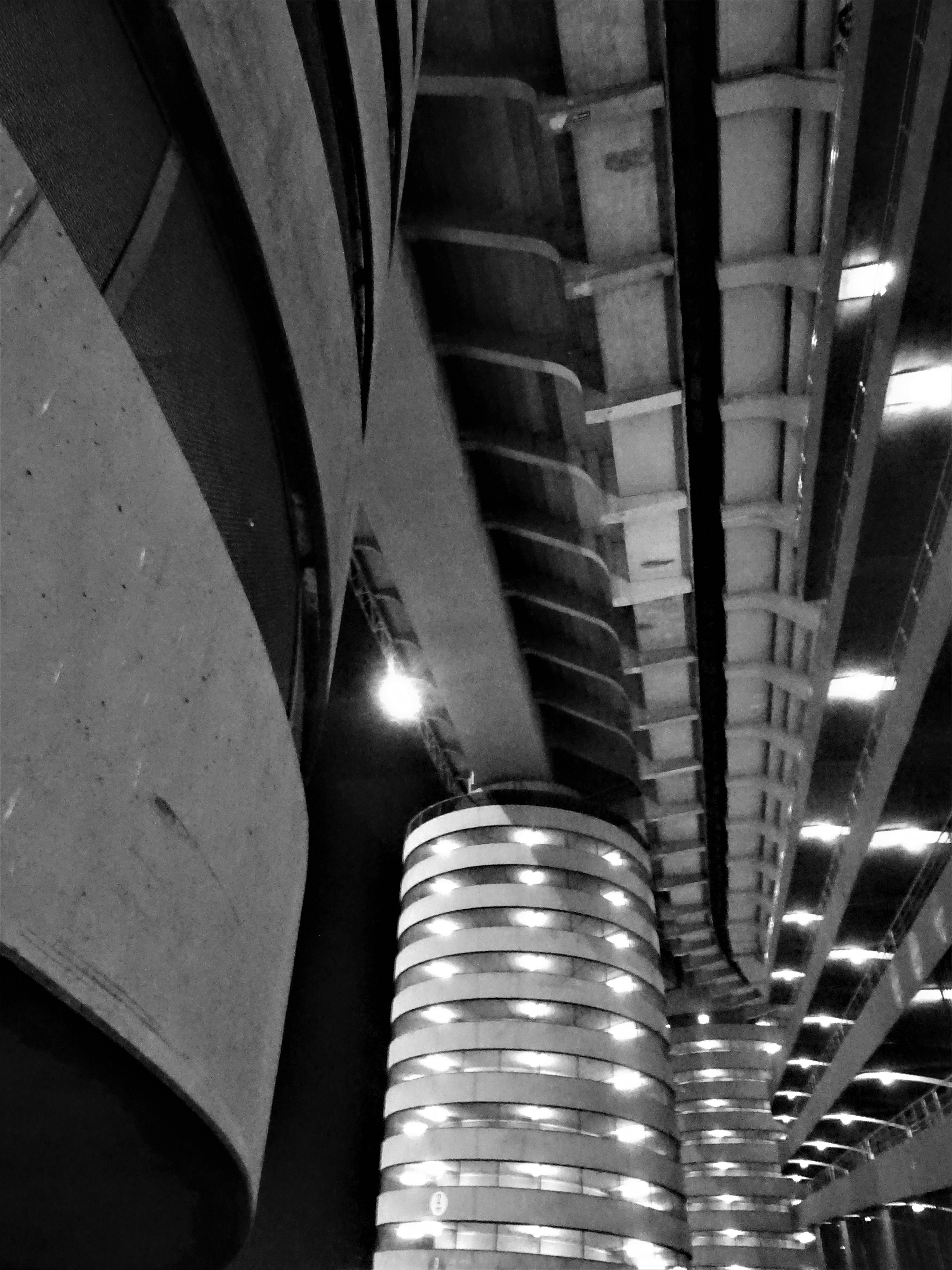 At half-time, I trotted out to the balcony that overlooked the city. I took a photo of a section of the Maracana roof support, pocked and cracked through time, and contrasted it with the lights shining on a nearby hill. Rio is surrounded by huge rising pillars of black rock. And here I was inside the city’s mammoth concrete cathedral.