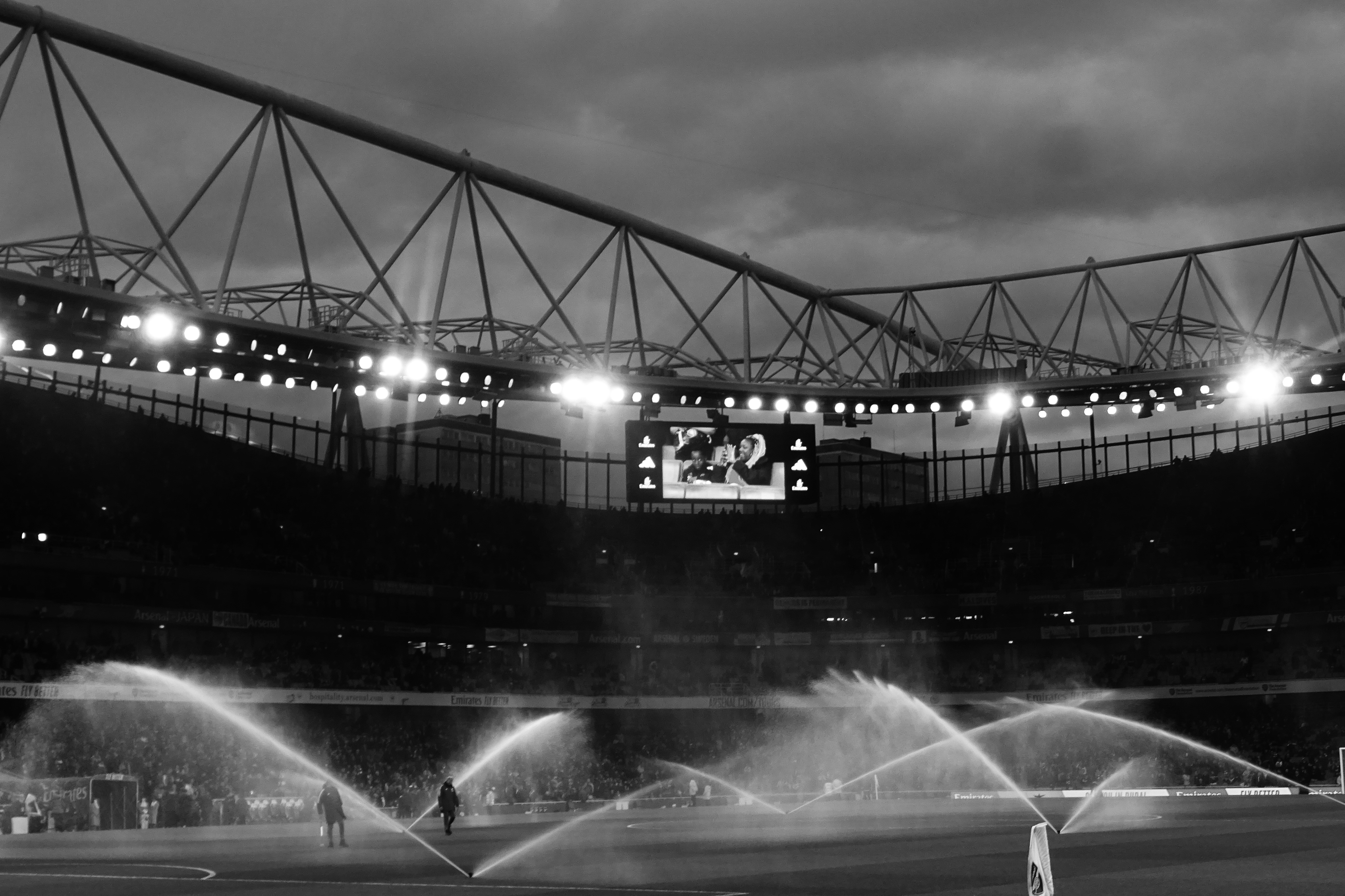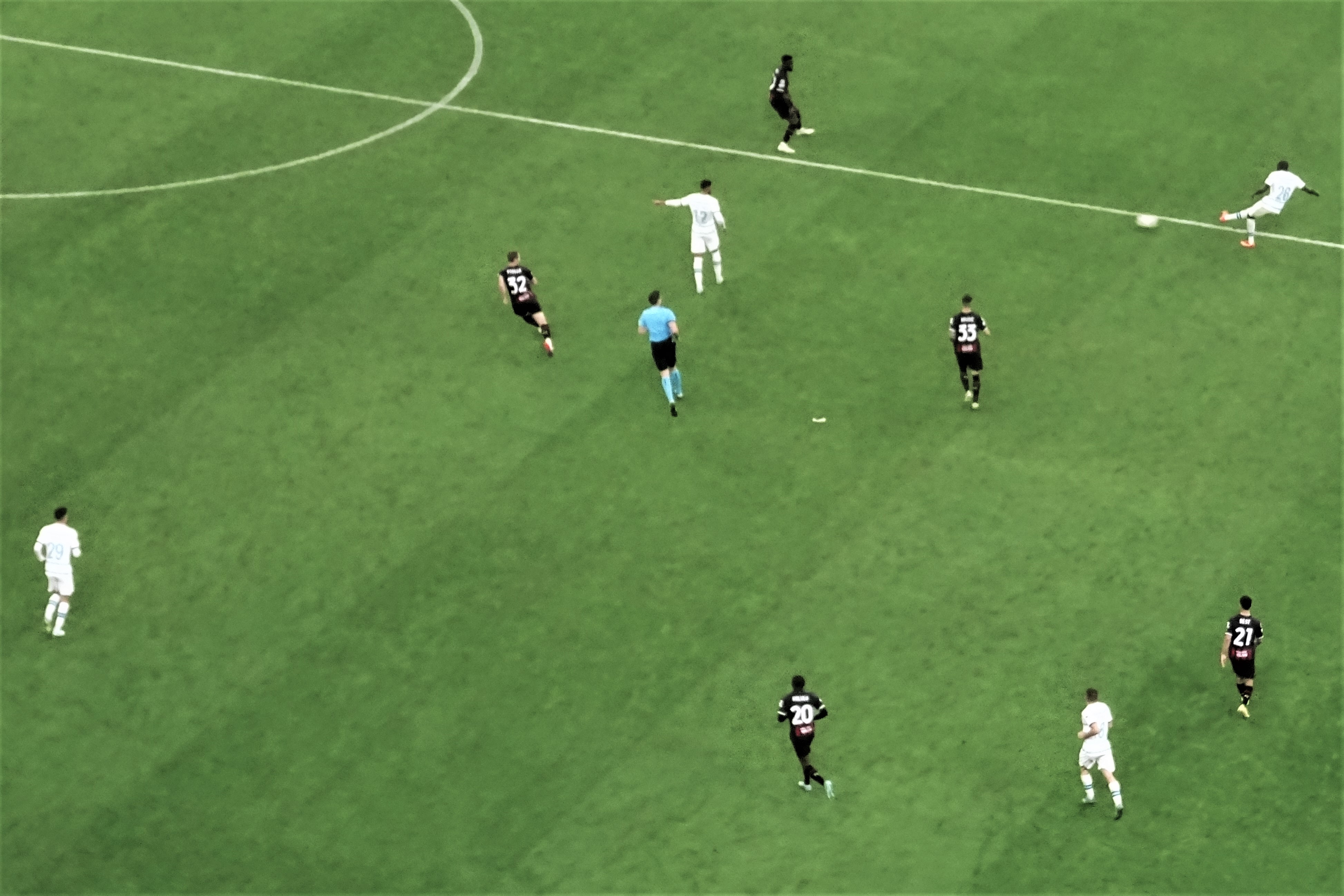 On thirty-two minutes, there was a hydration break, sponsored by a drinks company, and you just now there will be VAR breaks with sponsors very soon. The pitch was being hydrated too, with the sprinklers on.