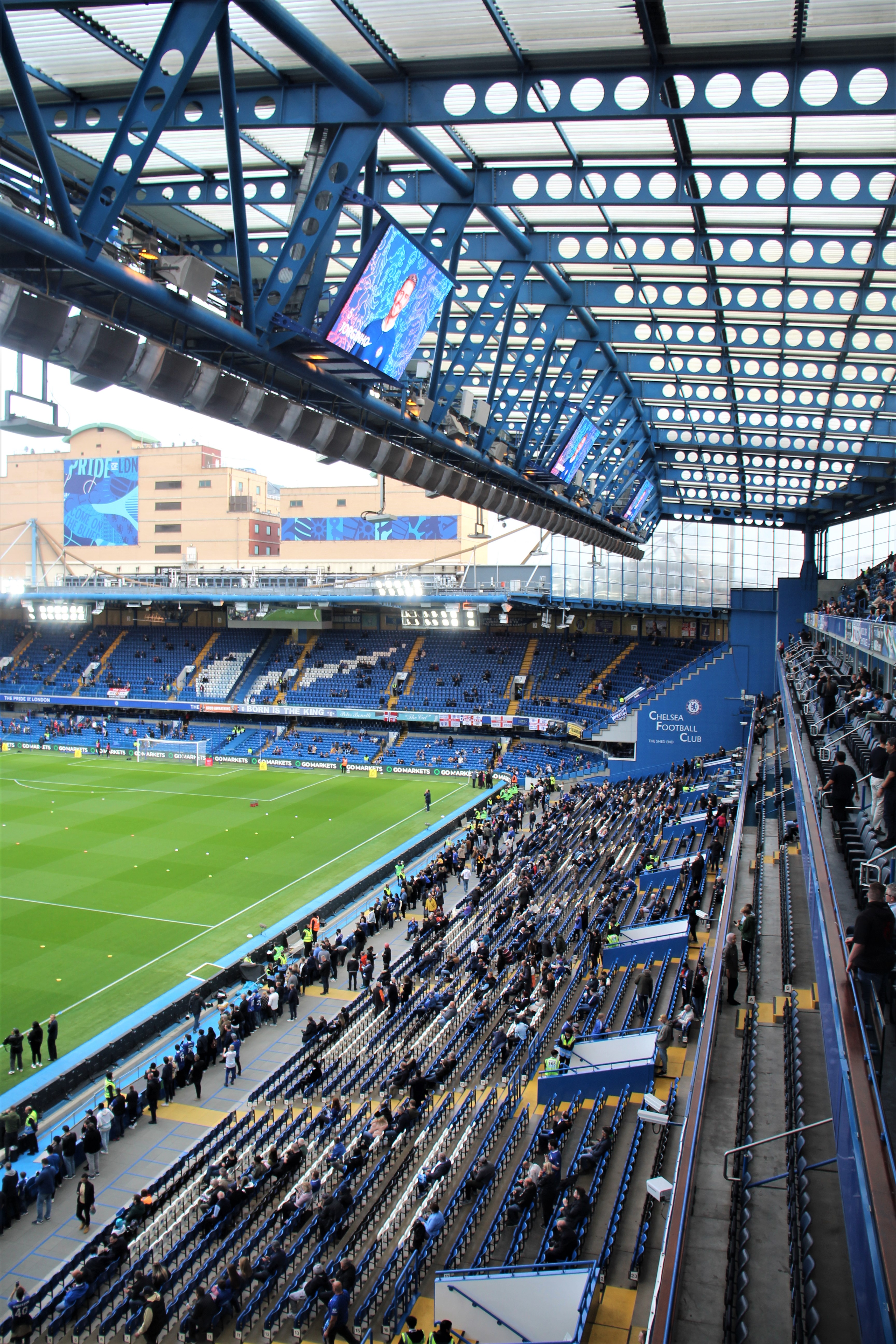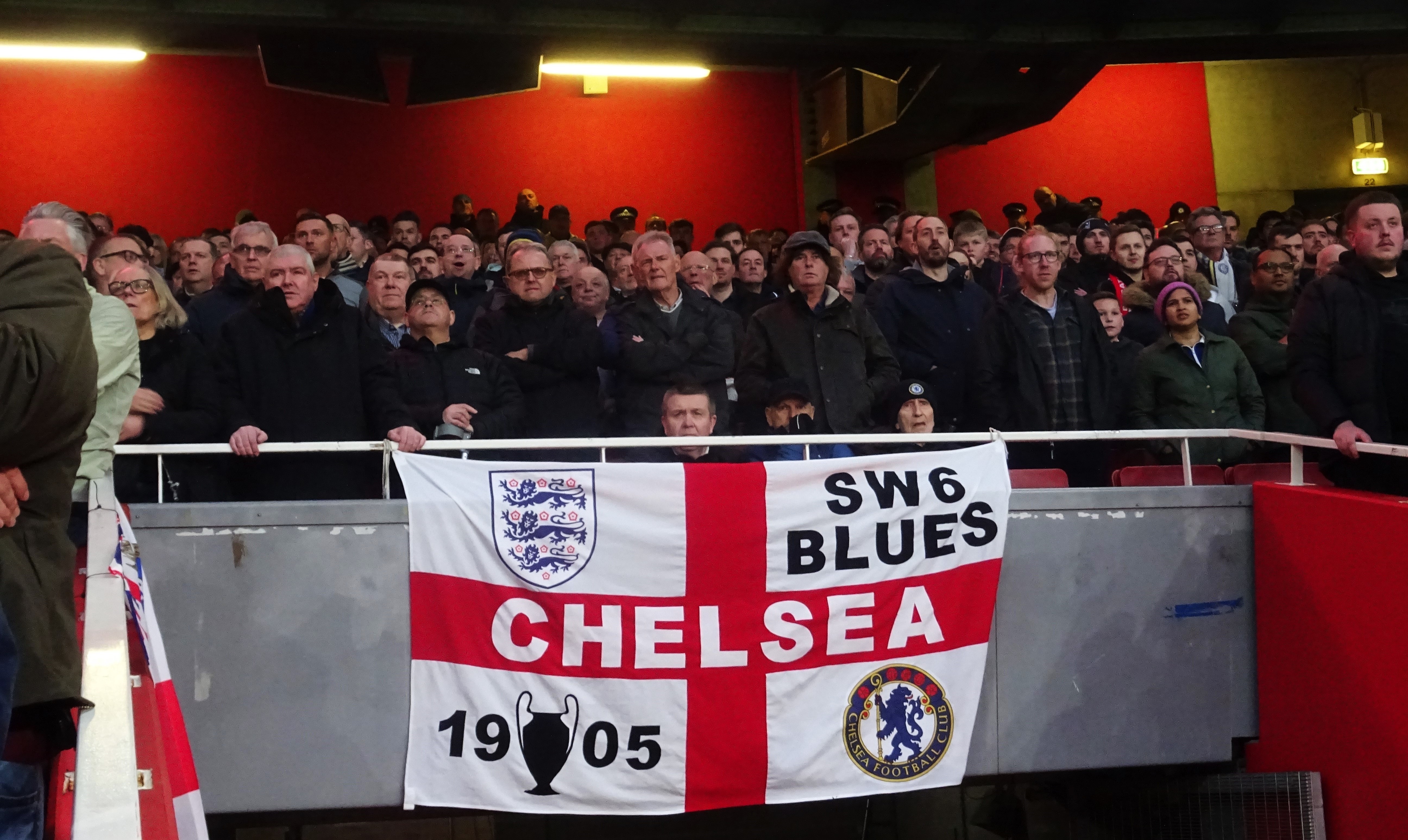 The northern end was full of Flamengo red, but with odd pockets of blue at the edges. The rest of the stadium was dominated by the colour red. Down below us, the Chelsea lower tier was only a third full. The stadium capacity is 68,000 and it looked around two-thirds full.