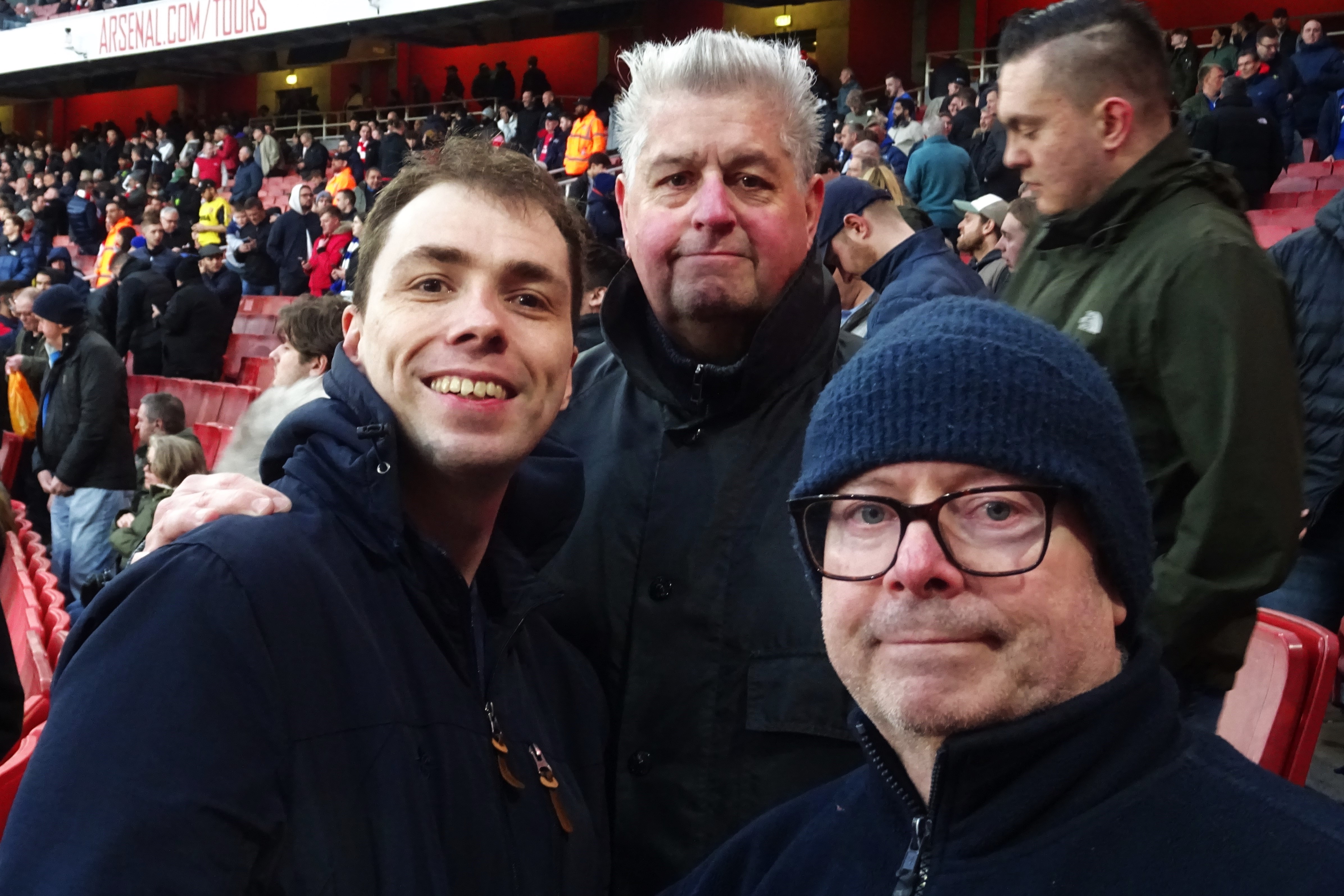 Glenn and I made our way up the various ramps to reach the M11 section, which was a middle-tier just above the large TV screen at the southern end of the stadium. As soon as we reached our row, we saw Andy from Nuneaton, a friend of thirty years.