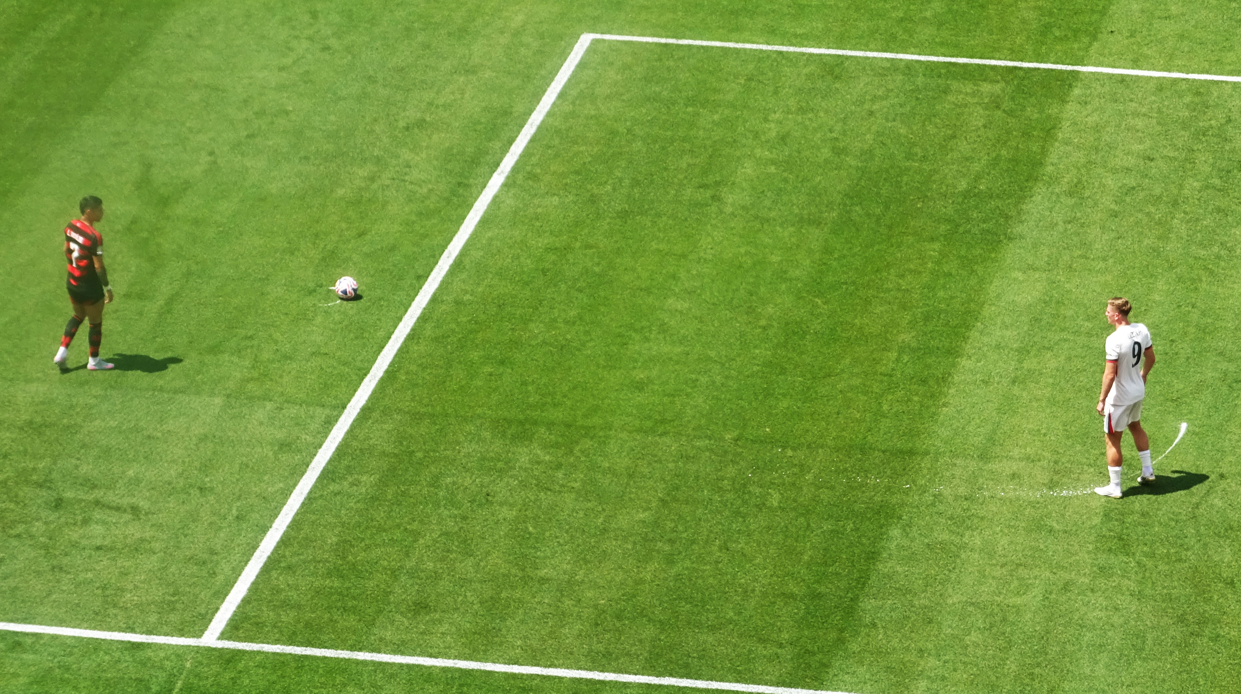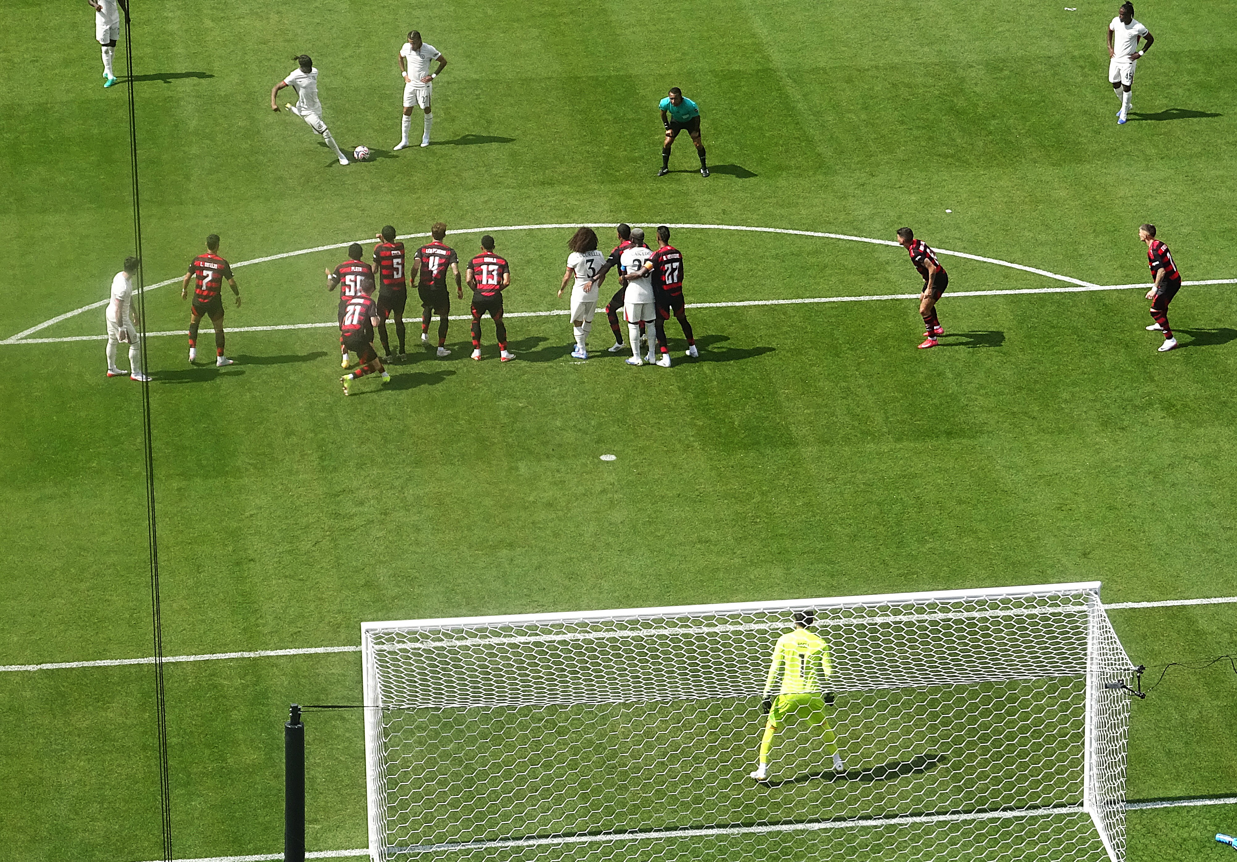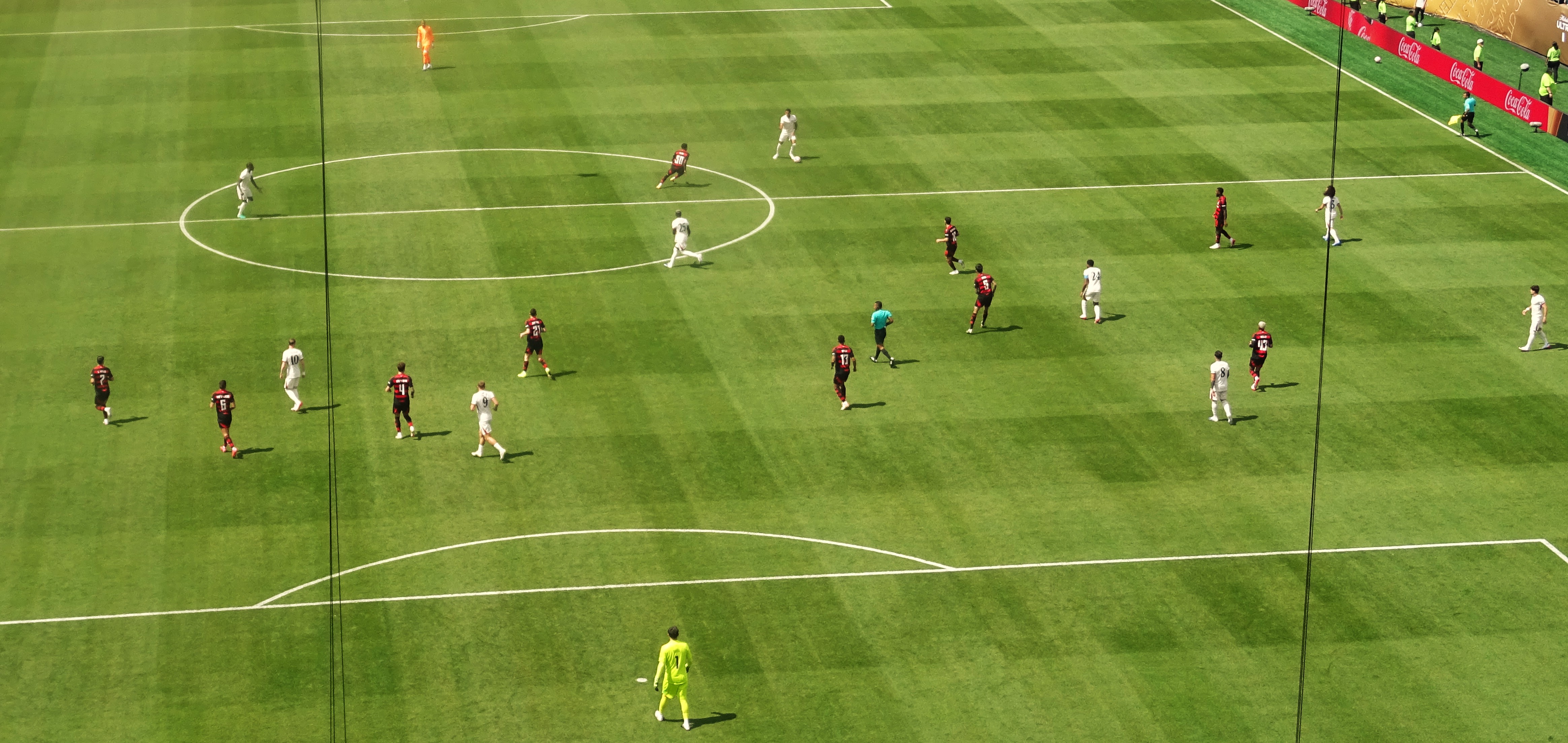 Flamengo were fluid with the ball and ran at us from all angles, but we generally kept our shape, though it did seem that the heat was hurting us. Flamengo, used to the sultry heat of Rio, were not so deterred.