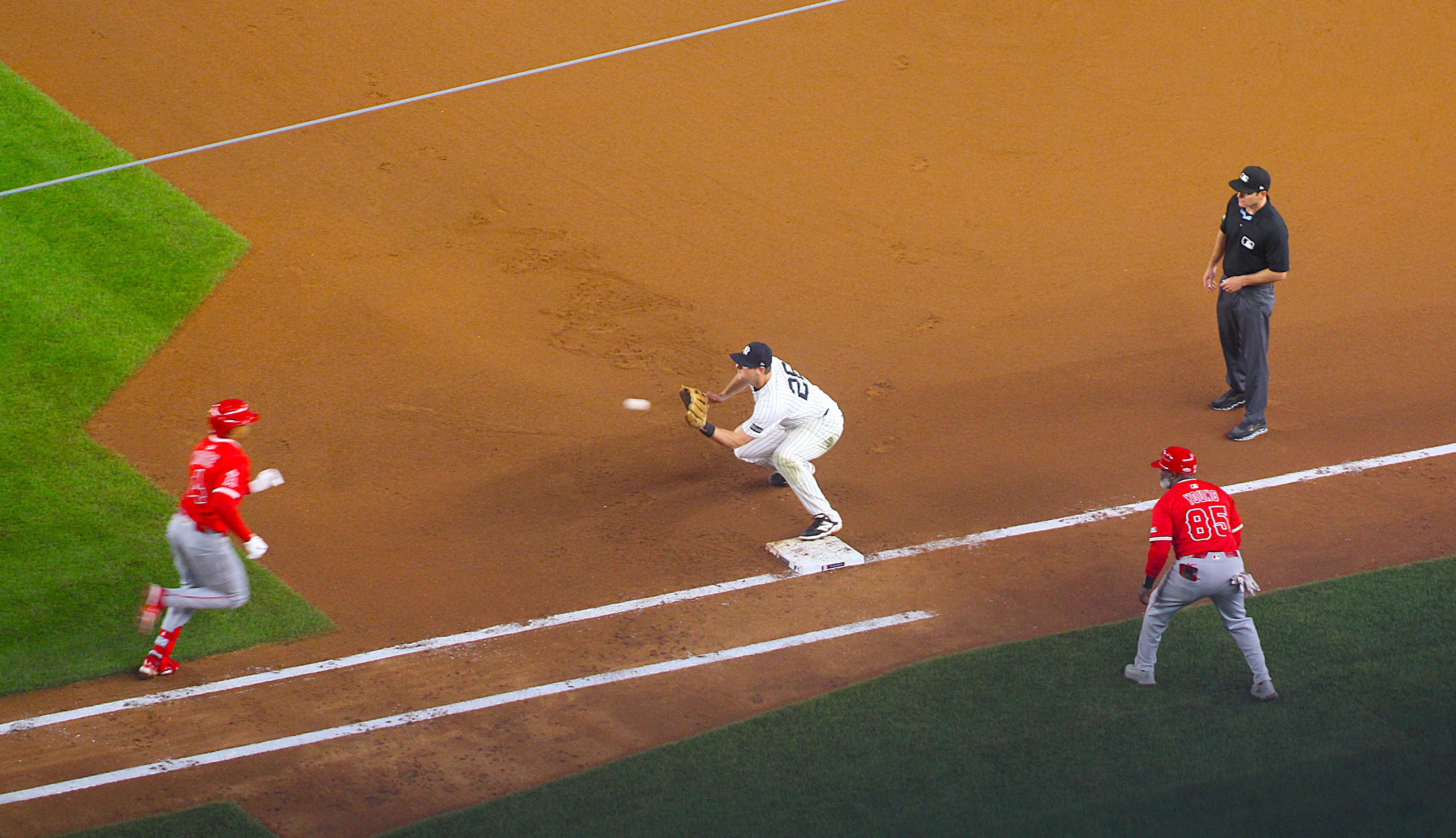 For this game, we had super seats in row one of the upper tier above home plate and Glenn, bless him, had gifted my seat as an early birthday present. Unfortunately it was a dire game of baseball, quite possibly the worst I have ever seen. The visiting Angels got ahead early and eventually won 4-0. But I loved it, and I loved the tales that Mike and Steve shared. Mike used to work for the Yankees as an intern in 2001 and 2002.