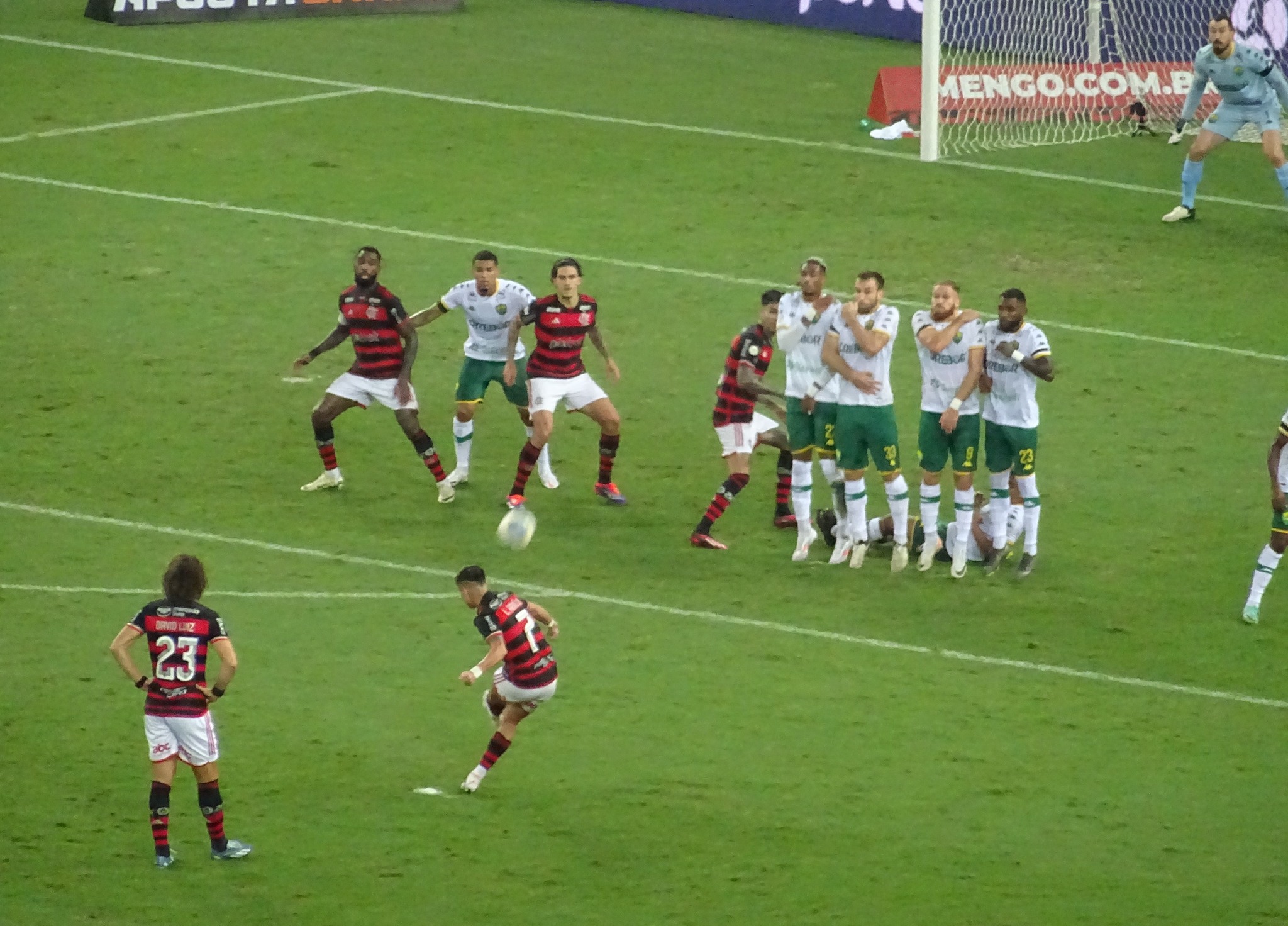 The Flamengo players raced away to the same corner, again their keeper Rossi, all in yellow, raced up field with arms outstretched and it made me squirm.