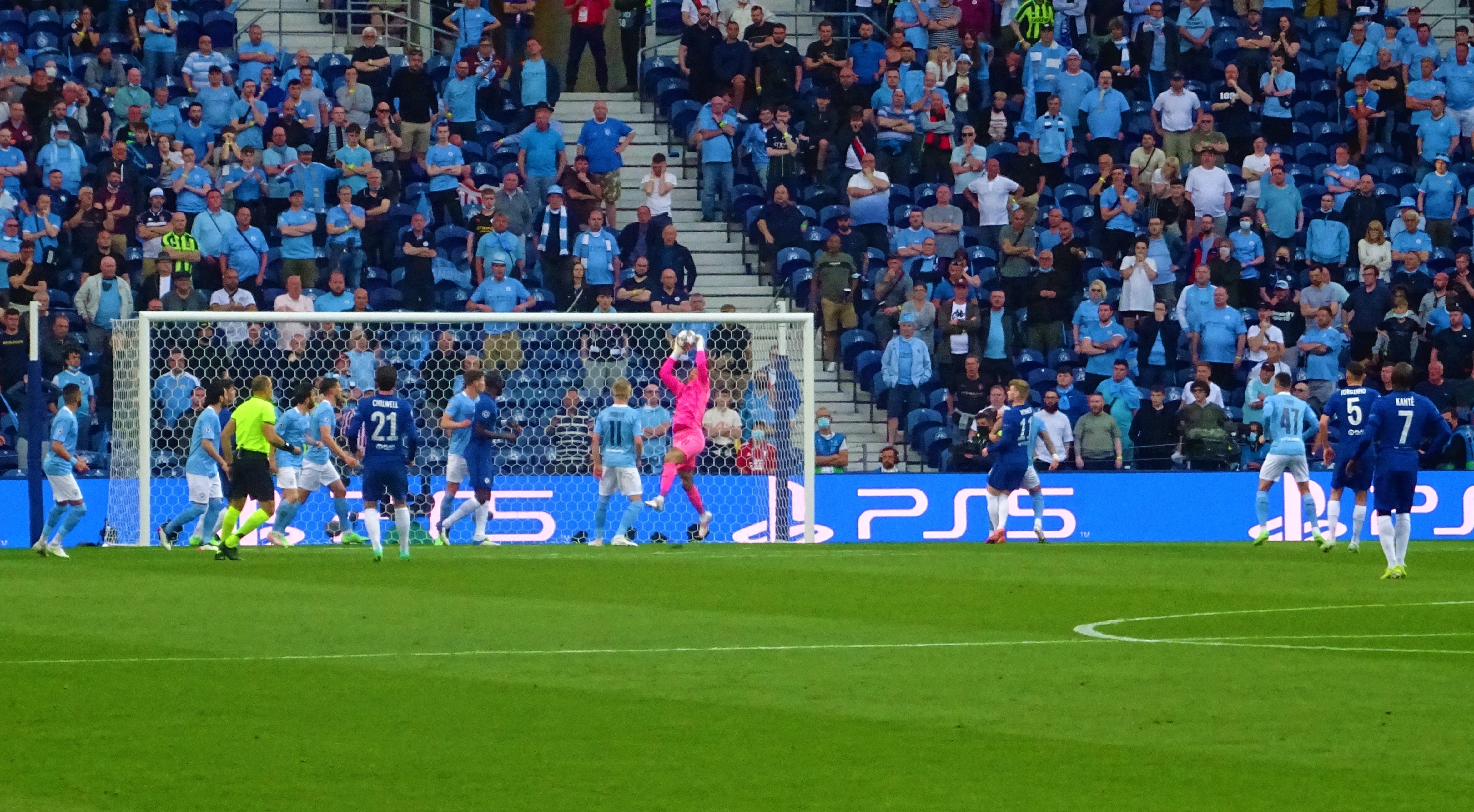 On seventy-seven minutes, a perfect De Bruyne cross from the right found Haaland who had timed his movement to perfection and had the whole goal to aim at. He was seven yards out. I fully expected to see the net bulge. This was it.