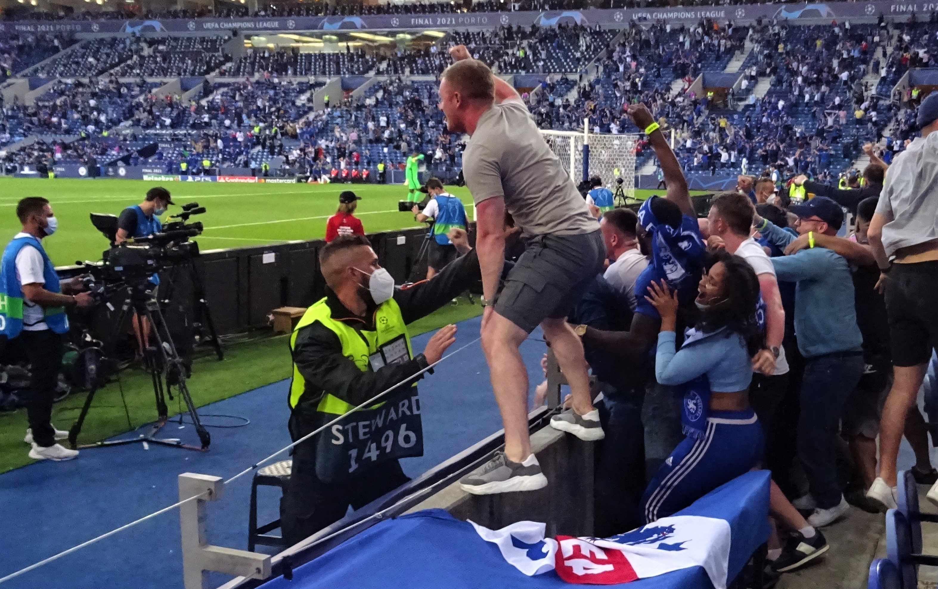The celebrations around me were ridiculous. Lads from behind rushed past me, knocking two gents flying. One of them – name unknown, I first met him in Stockholm in 1998, we had spoken already – was laid right at the bottom of the seats in front of the balcony wall. He was still. His head was perilously close to a concrete step. We were all so concerned. Thankfully, mercifully, he rose to his feet.