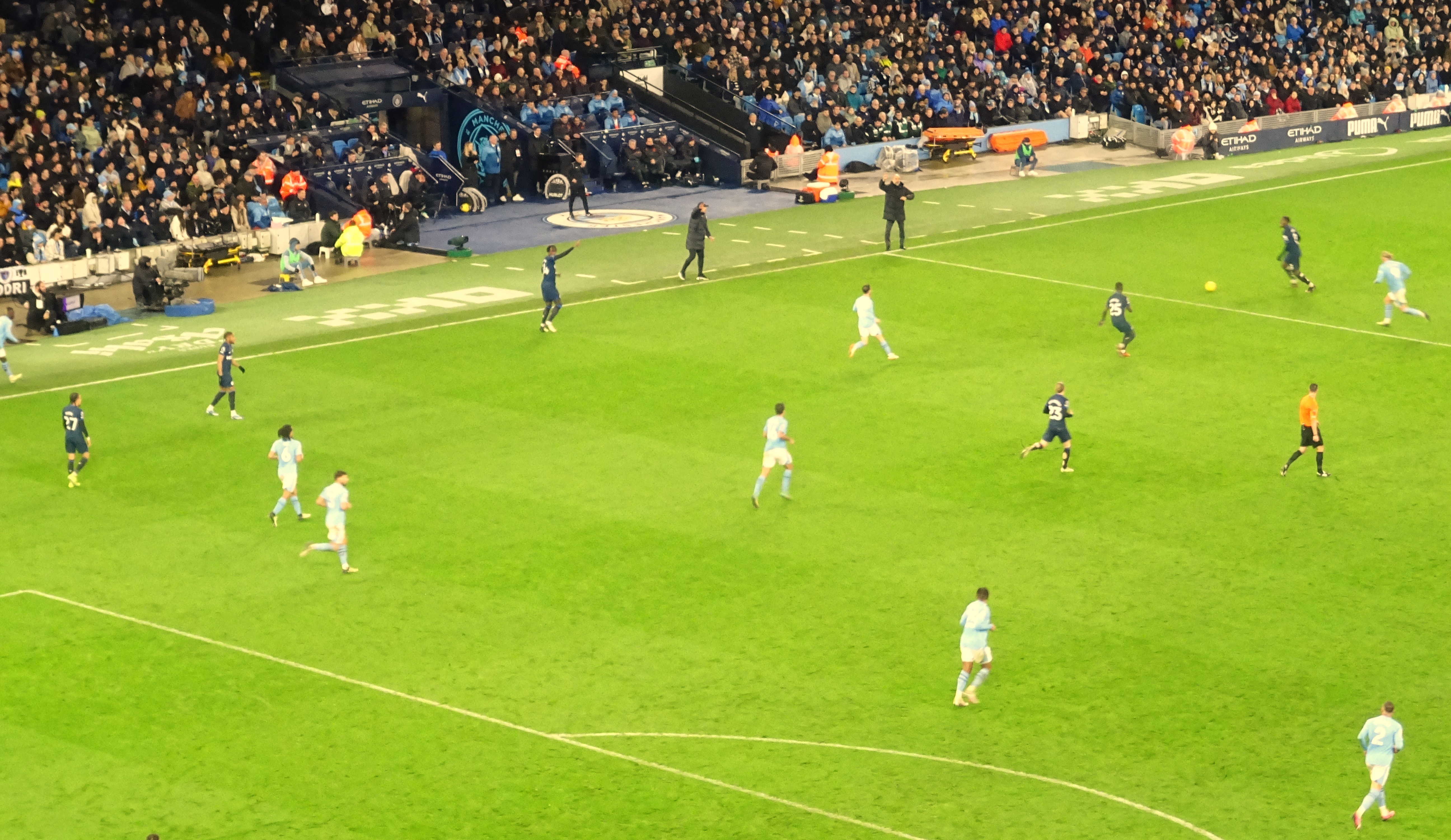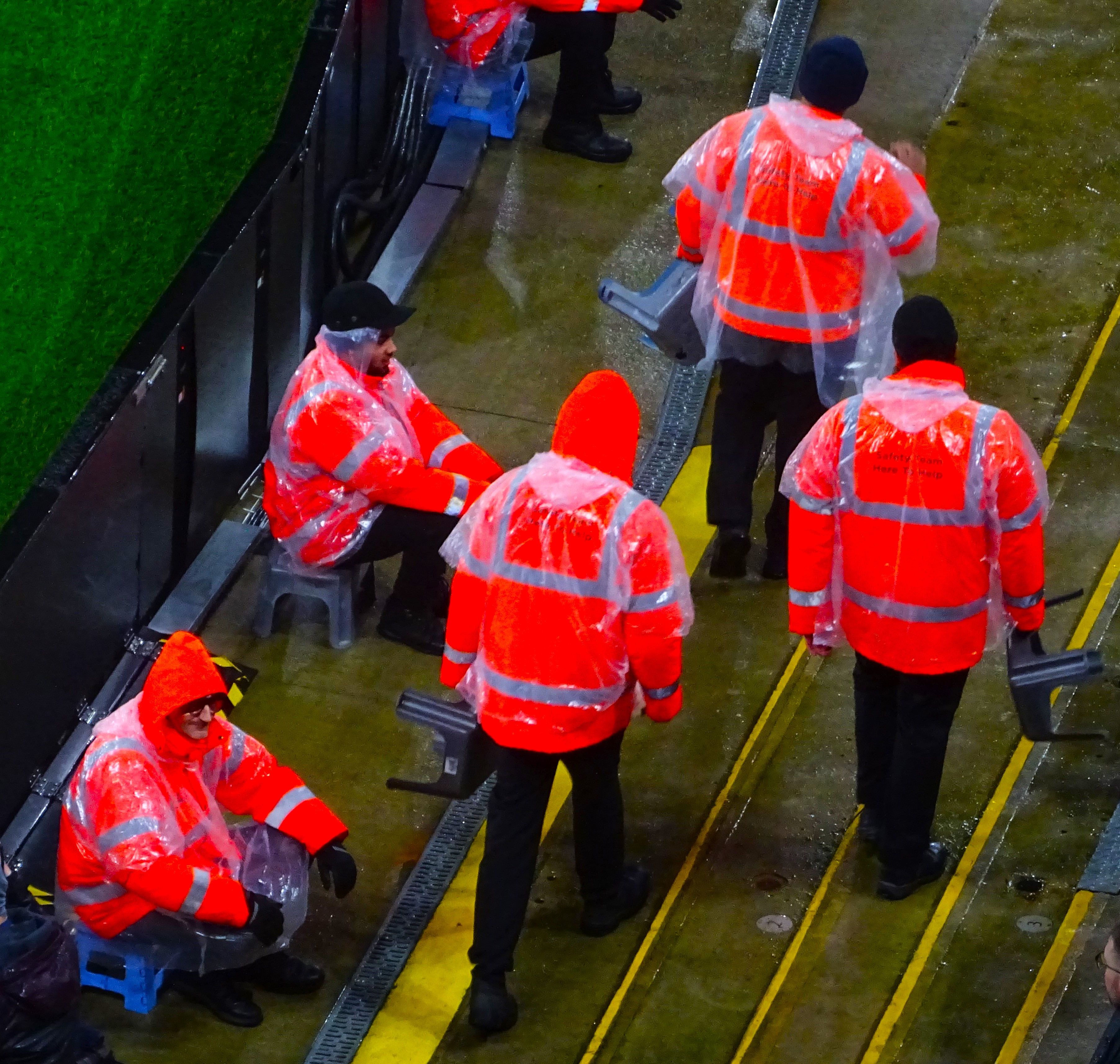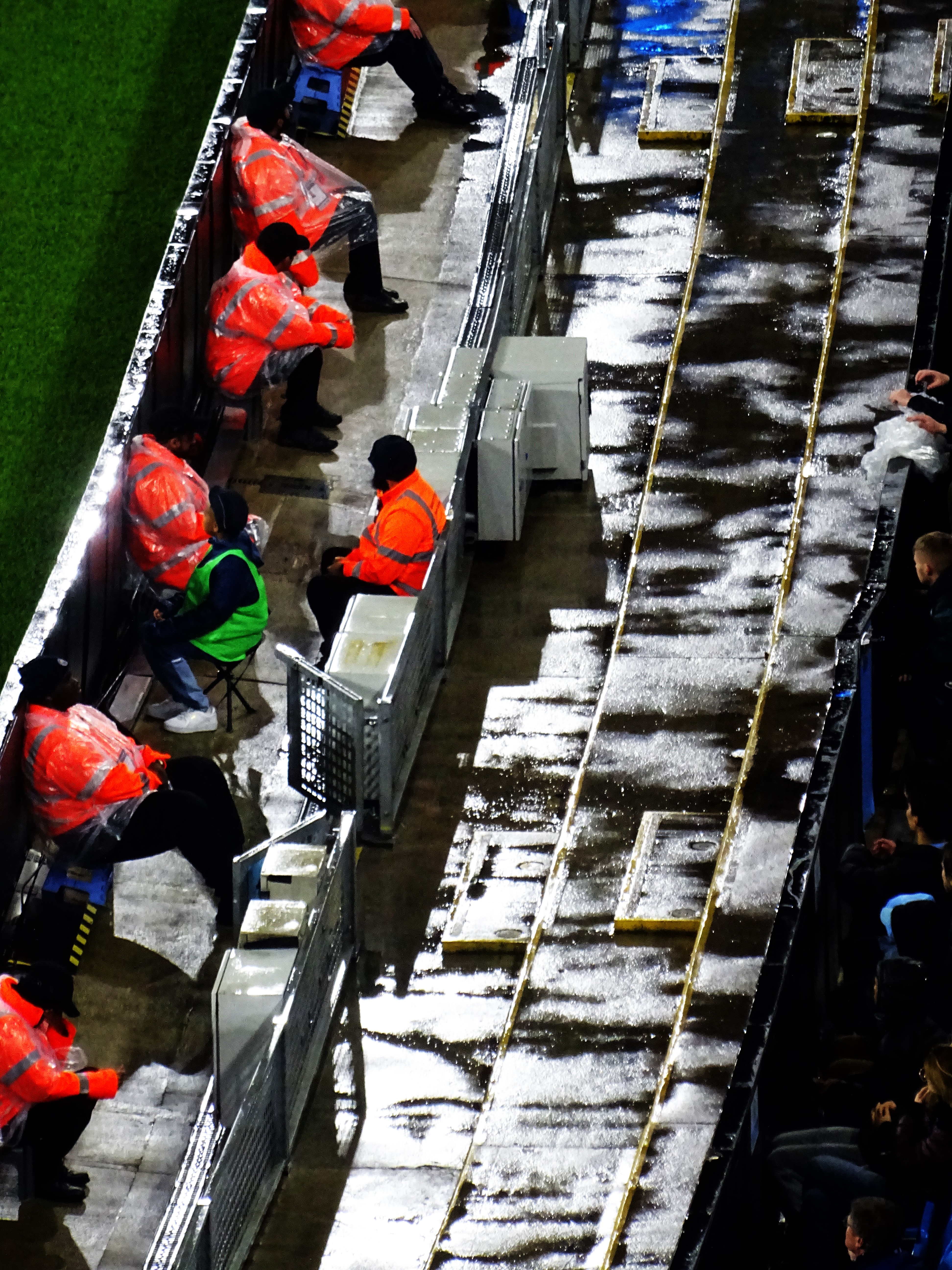 I set off for the Etihad at 3.45pm. This is a familiar route these days. In past the airport, around the M60 Orbital, through Stockport, then a jagged cut through towards the stadium, along surprisingly wide roads. It was lashing down as I dropped the boys off outside the away entrance at “Mr. Mac’s Stadium Chippy.” I backtracked to park up at our usual spot opposite the “The Grove” public house where we spent a miserable hour after last season’s away game.