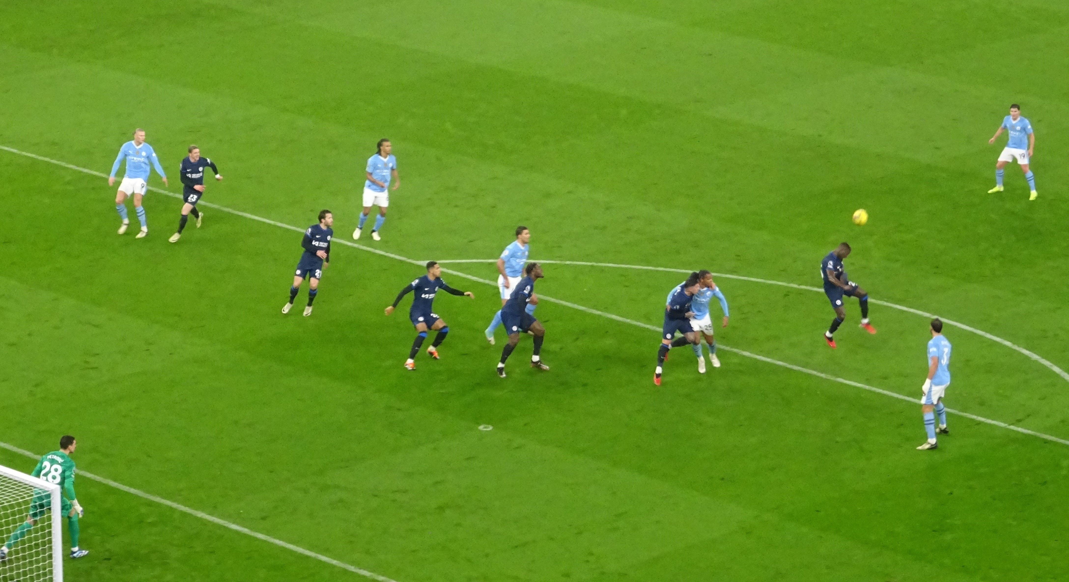 On fifty minutes, City now dominating, there was a rapid counter from the home team. I really feared this. Phil Foden played in Haaland and I watched with trepidation as he met the cross on the volley. I was right in line with the effort. I laughed as he shot wildly wide.