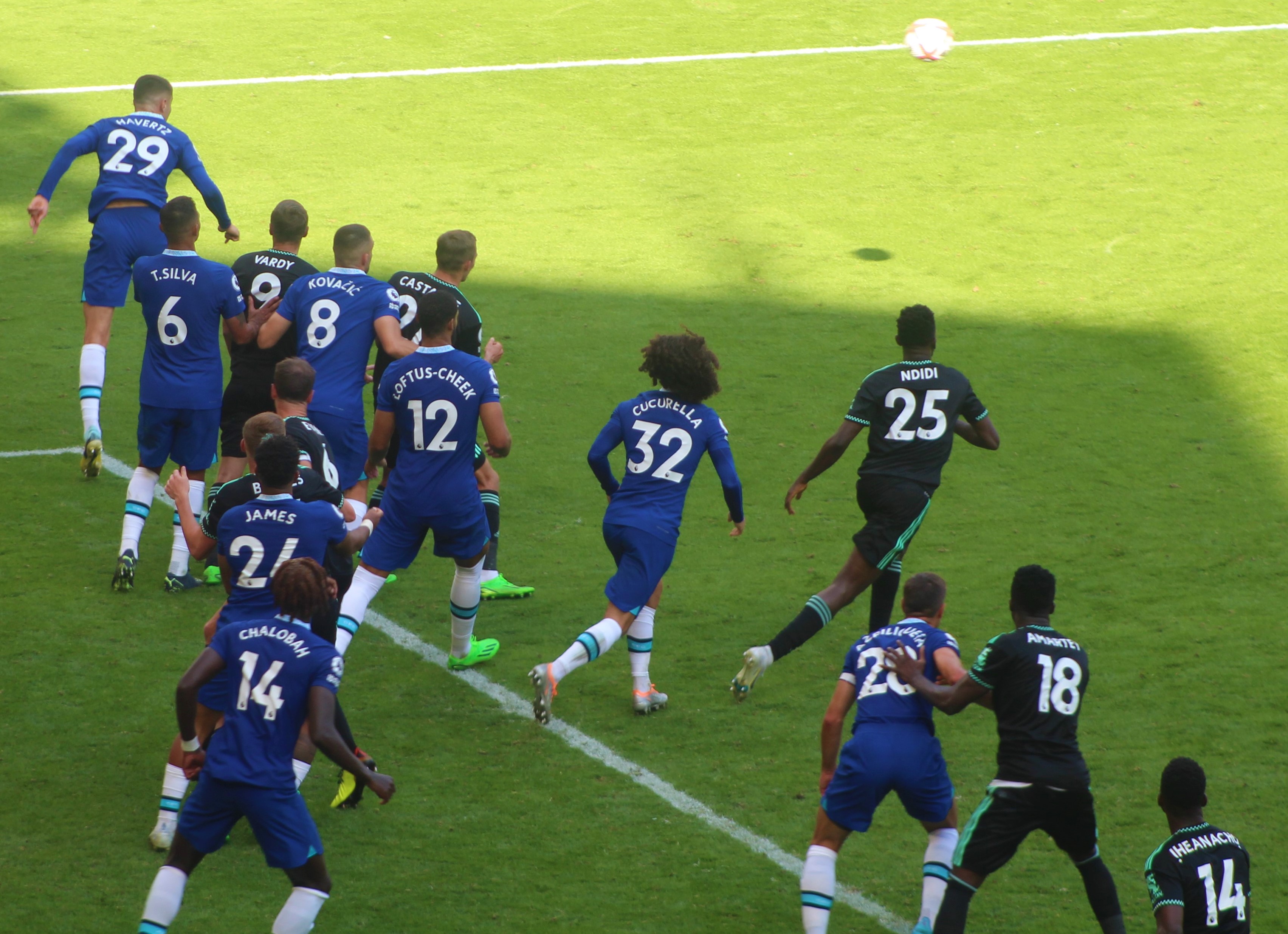 On twenty-five minutes, a mess in the Chelsea box. A cross came in, Sanchez made a hash of his attempts to gather, the ball hit Tosin and looped up onto the bar and Colwill was thankfully able to back-peddle and head away before the lurking Jamie Vardy could strike.