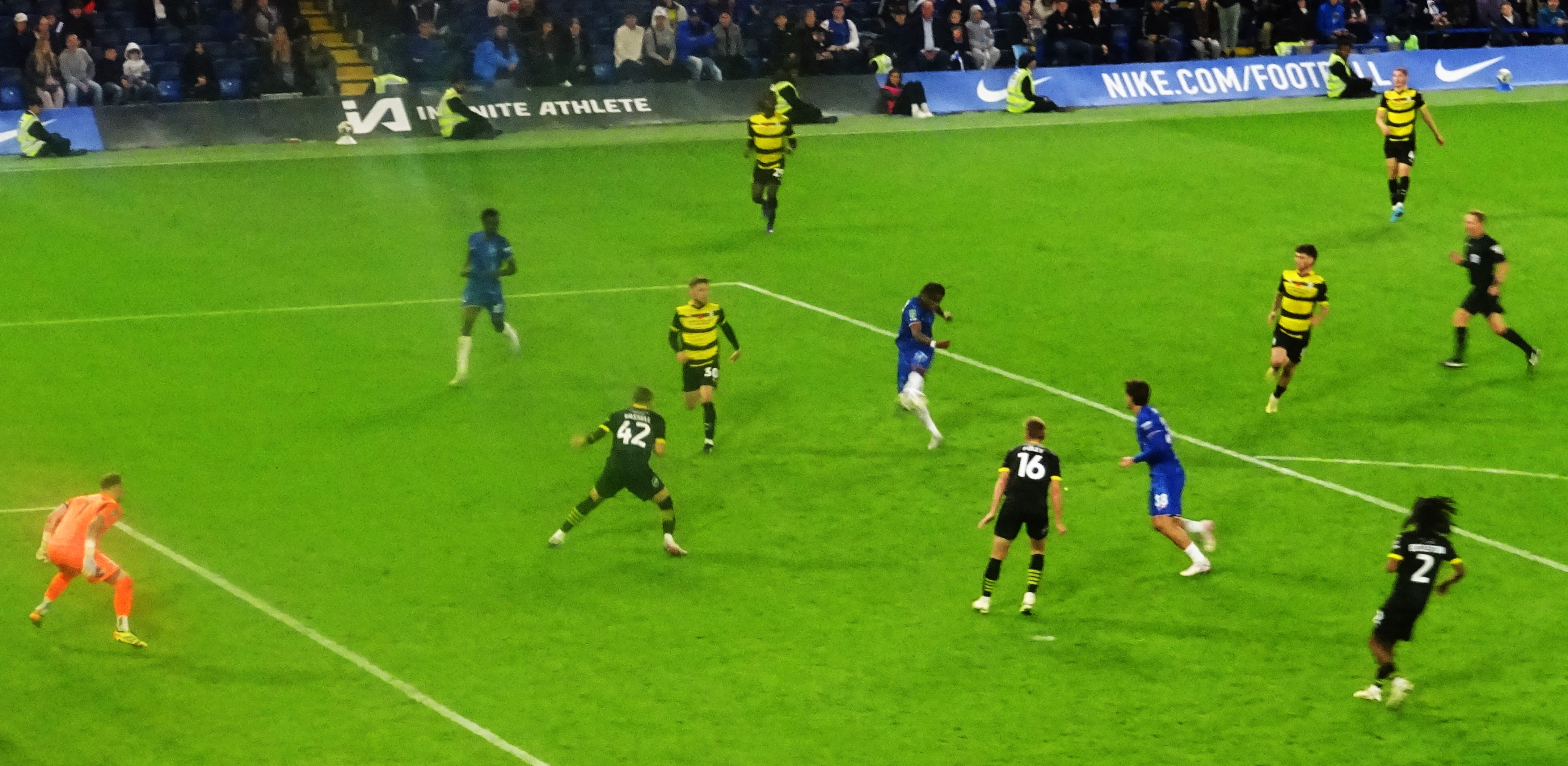 On twenty minutes, a spin away from trouble by Rodrigo Muniz, and the ball was played forward to Joshua King. I immediately presumed that King was offside, as did one or two others. However, play continued. King turned Tosin easily and fired the visitors from down the road ahead.