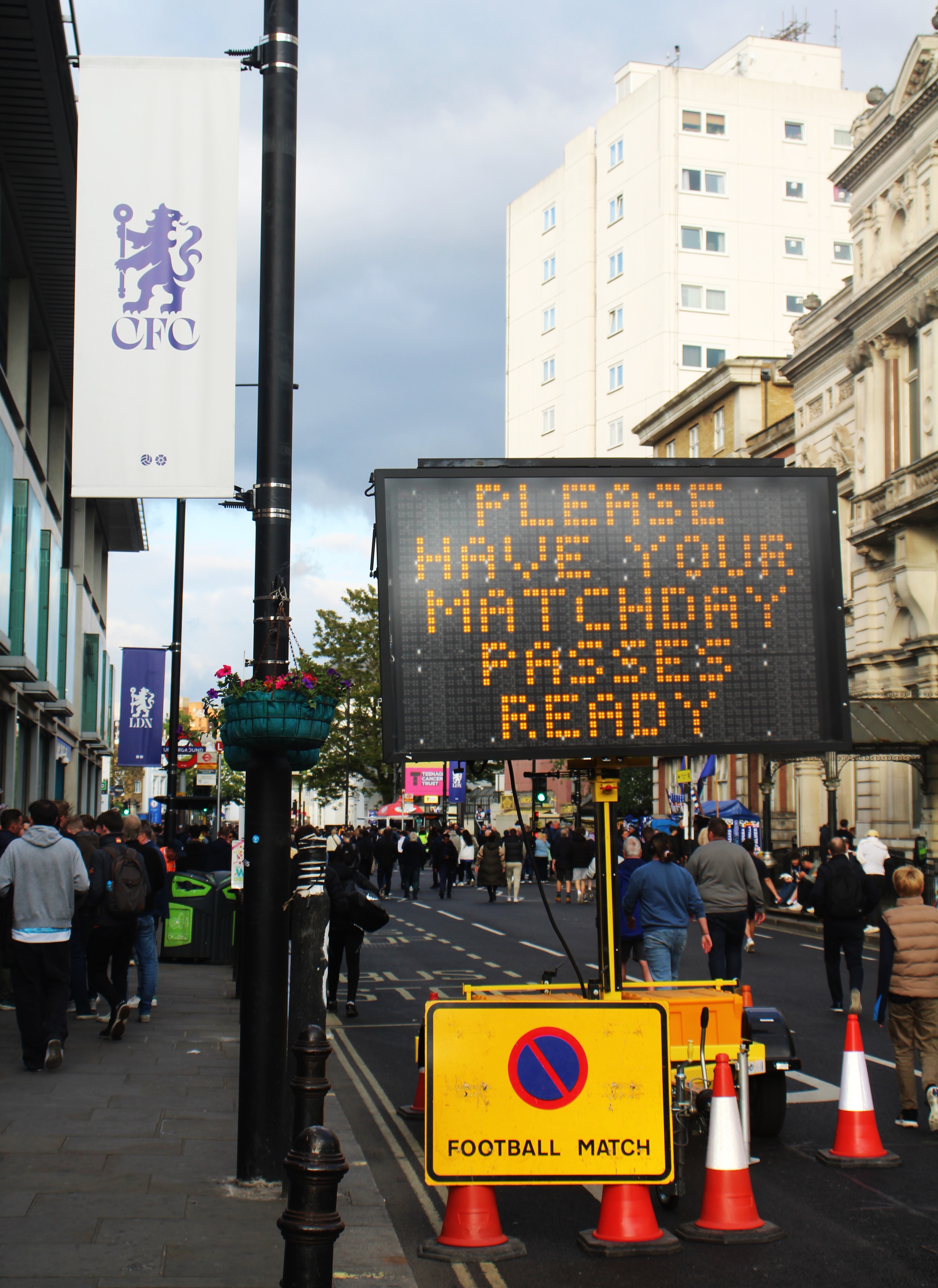 With the kick-off for this game taking place at 12.30pm, there was no time to lose. I collected PD at 7am and Parky at 7.30am. We called in at the “McDonalds” at Melksham and we breakfasted “on the hoof” to waste as little time as possible. There were grey skies on the way up to London, but the clouds cleared over the last part of the familiar journey. After driving down onto the Fulham Palace Road, I dropped the lads off at 9.45am at the very southern edge of the King’s Road, and I was parked up on Charleville Road to the north ten minutes later.