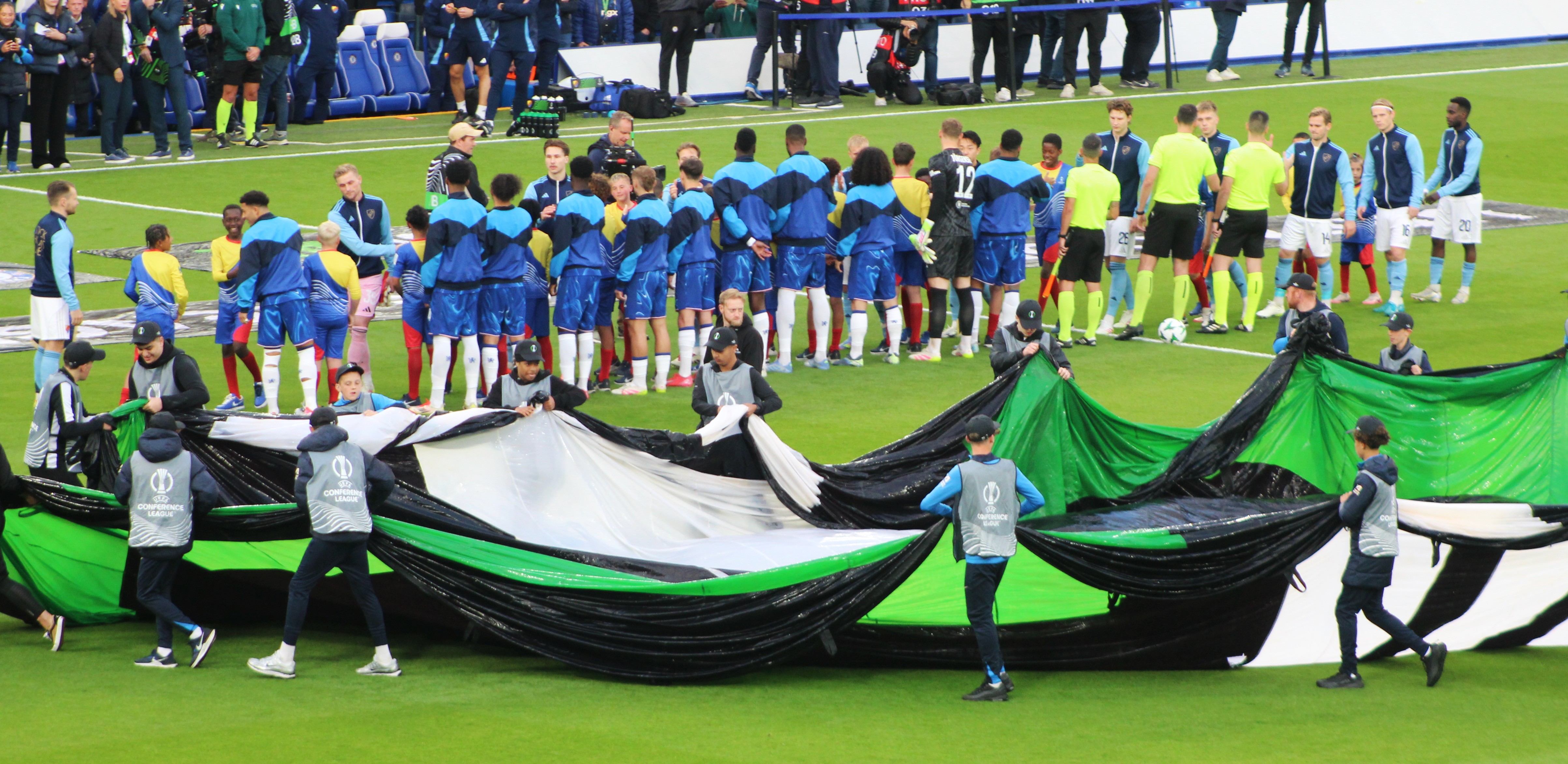 Inside Stamford Bridge, all was quiet. Not much was happening. Everything was quiet. My focus, again, because of the proximity, was on the ridiculous line of “Dugout Club” spectators who were watching the players go through their pre-match shuttles pitch side.