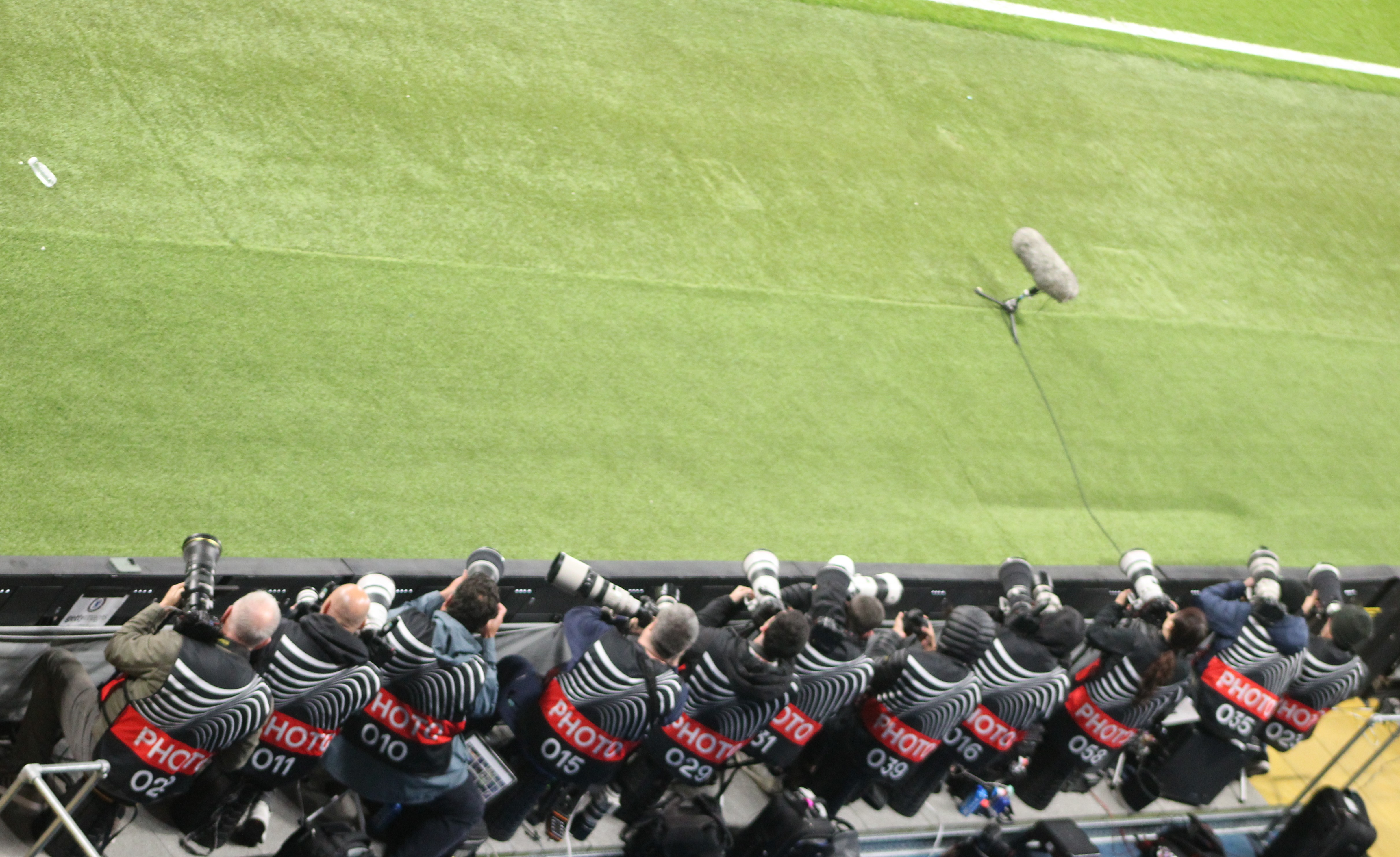 On the hour, Joao Pedro came close with three efforts. He was sent through, one on one with Leno, but missed out. Then came a shot that was blocked. Then a fantastic cross from Neto down below us that picked him out, but the ball as just out of reach, which I just about caught on film.