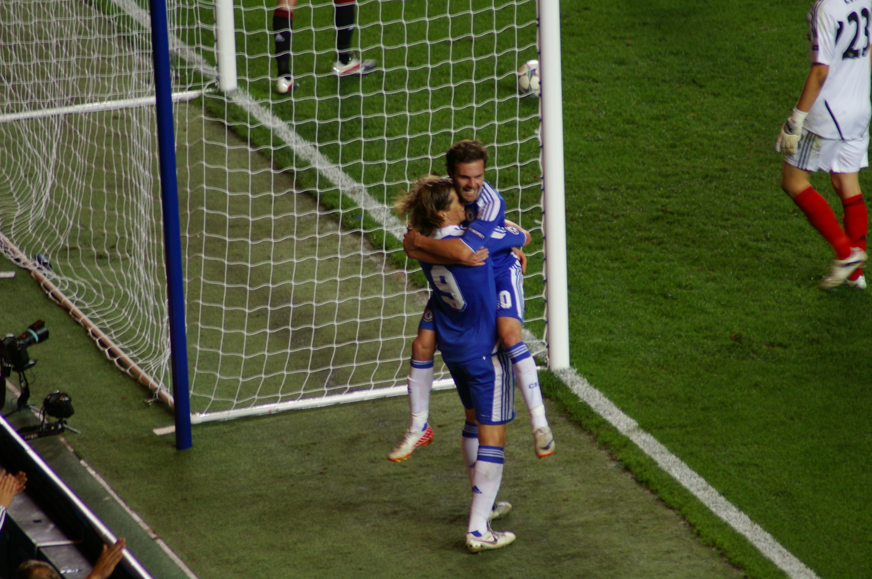 Get in. A whoop of joy and a scramble to get my camera up to record the celebrations…”damn, he’s running towards the other corner”…click, click, click. Lots of screams from the players and Luiz pointed at Torres as if to say “you da man.” In fact, that probably is what he said.