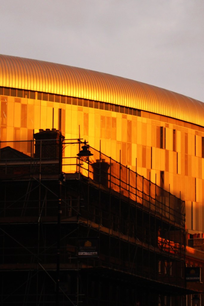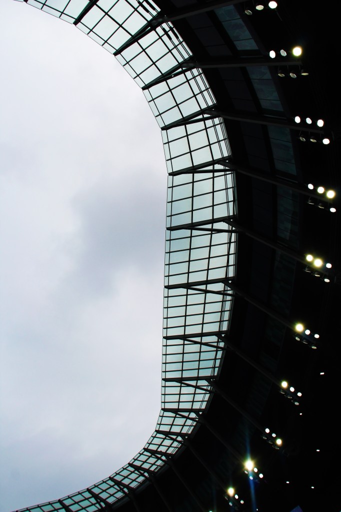 The stadium opened up before me, the green turf ahead, blocks of concrete, the colour blue, great expanses of steel overhead.