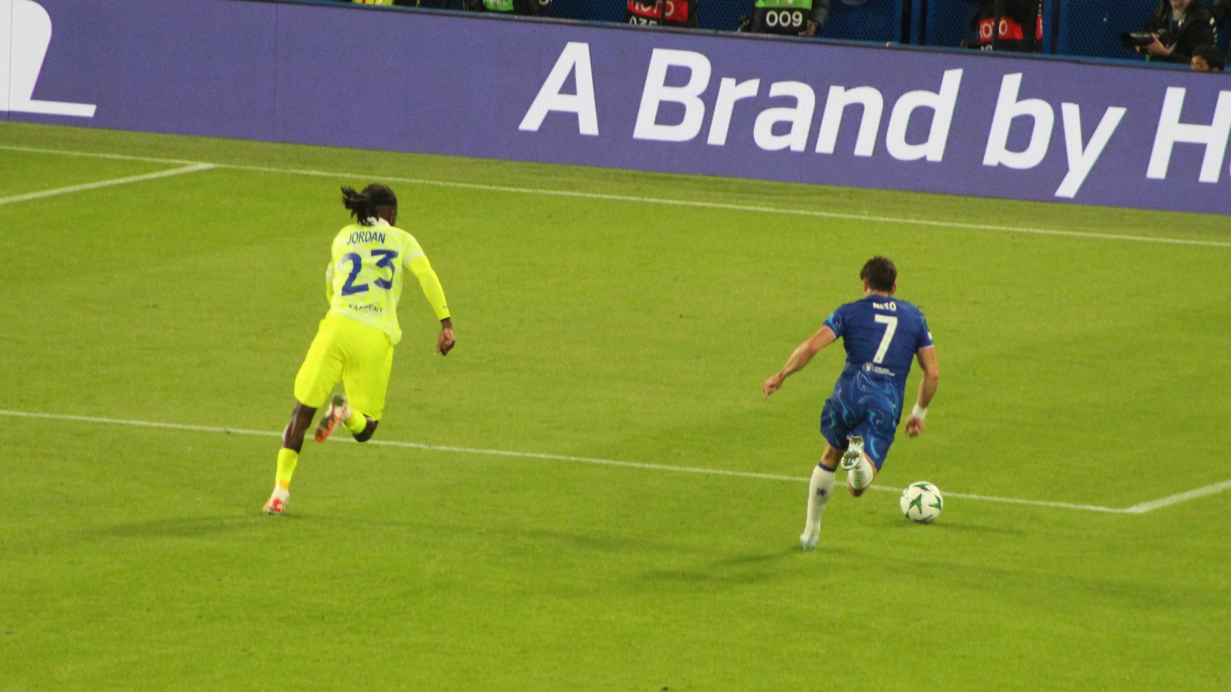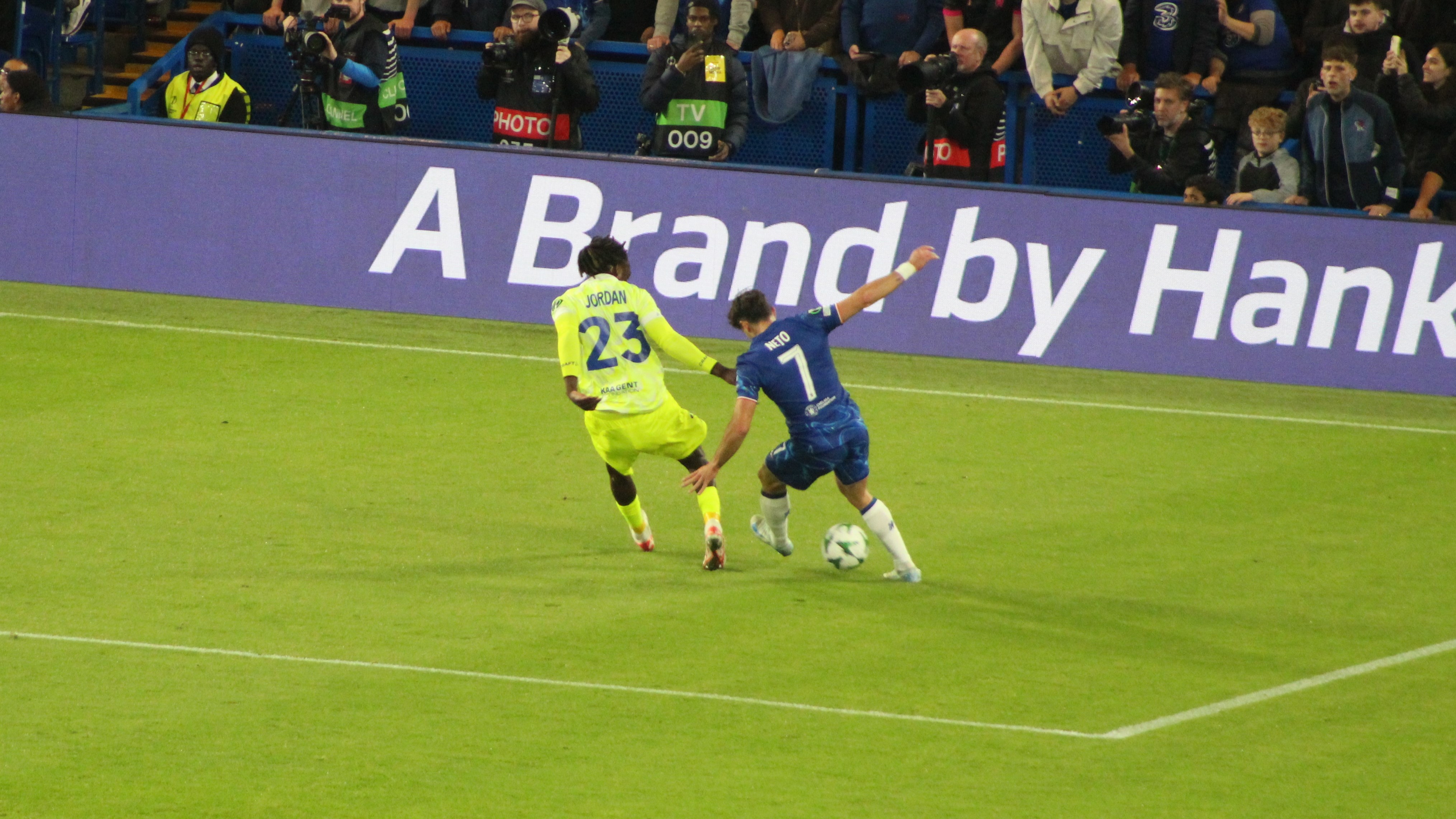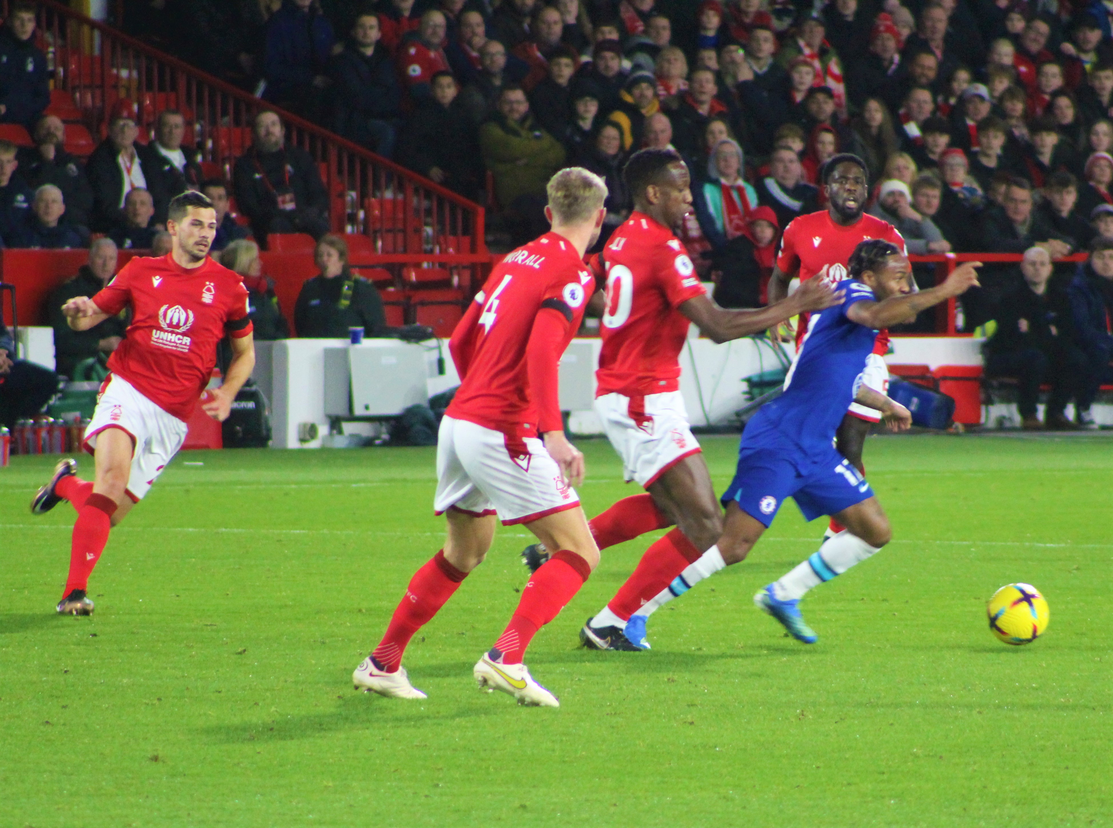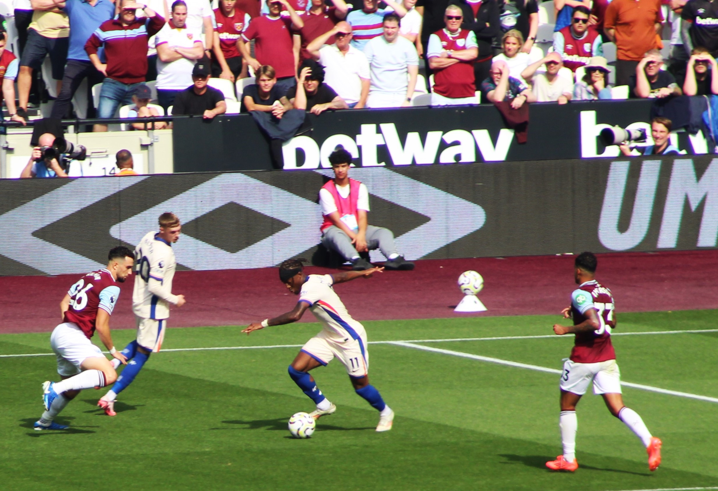 Into the second half, a magnificent burst from Madueke down in front of us – just a joy to watch – but a weak finish from that man Jackson. Just after, Nico slipped in the box. Just after, a fantastic dummy by Madueke out on the line, a little like Jadon Sancho at Palace, but he then gave the ball away cheaply.