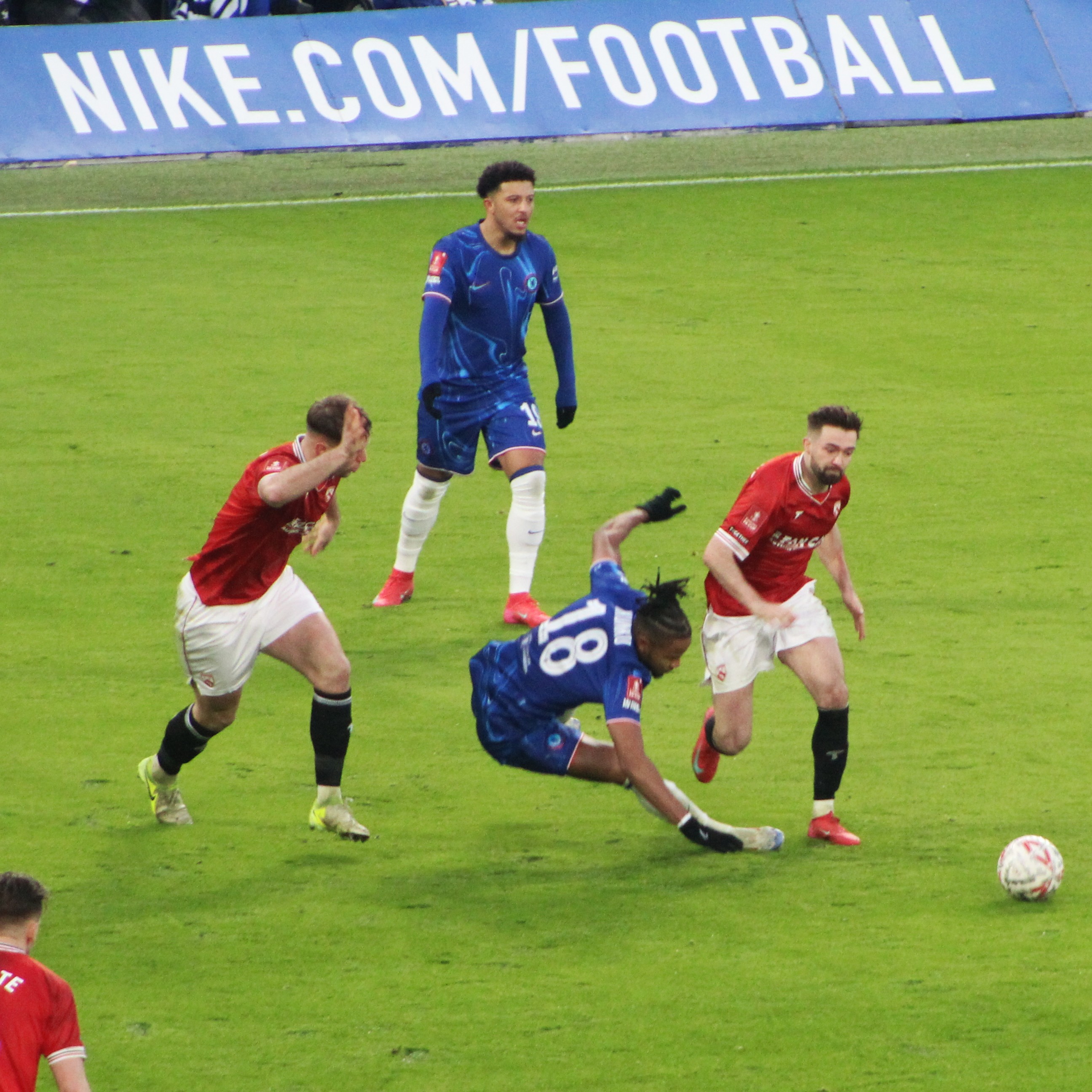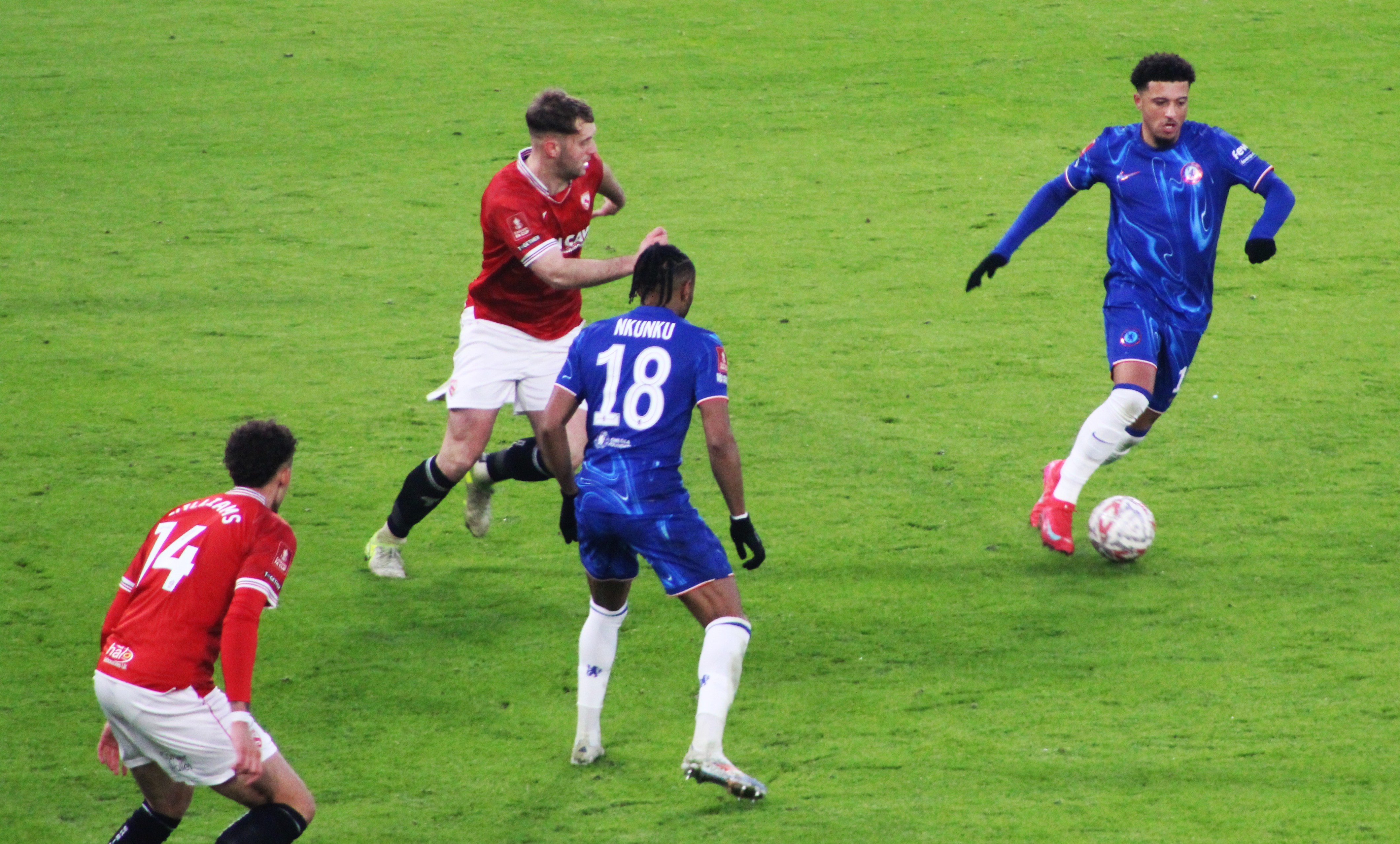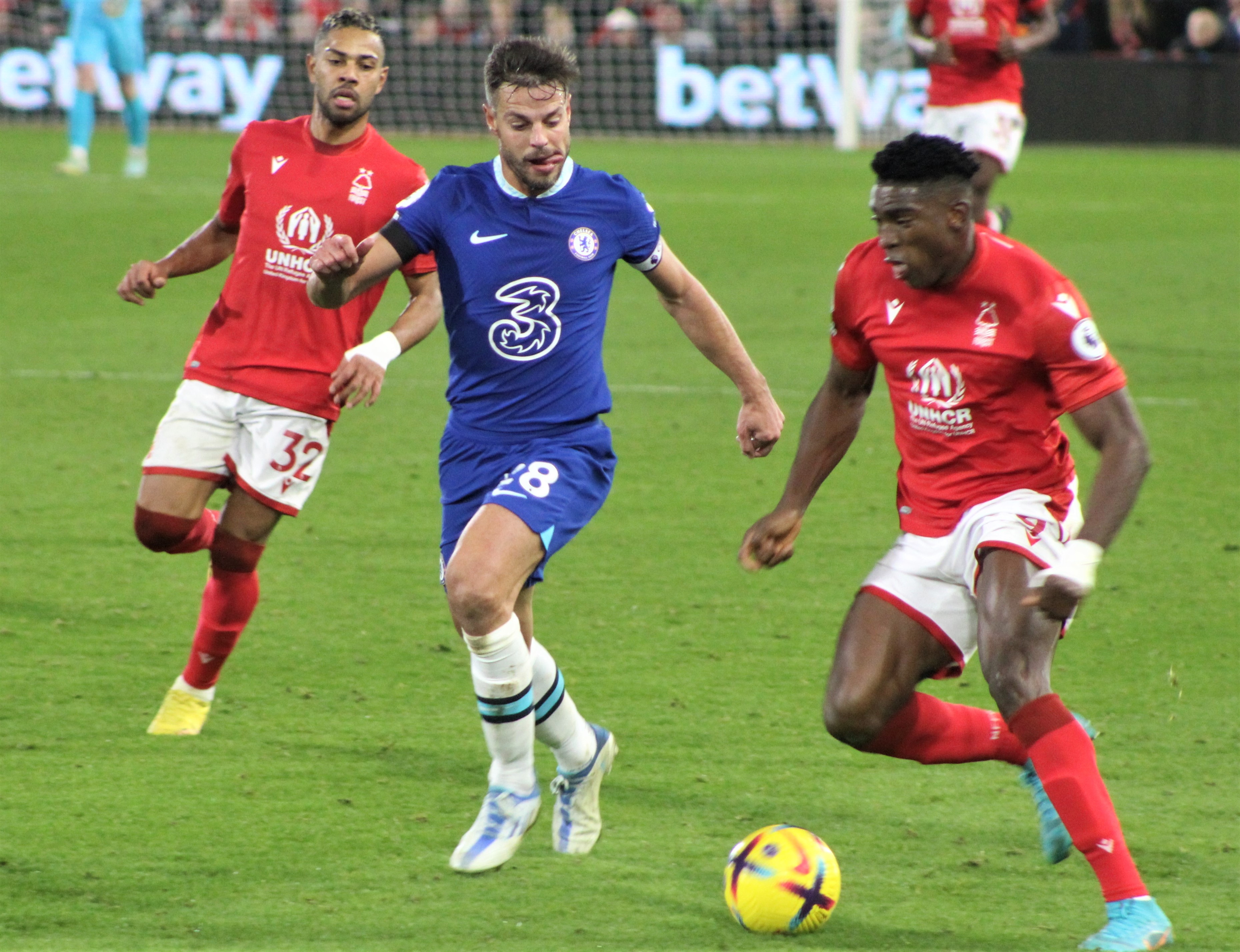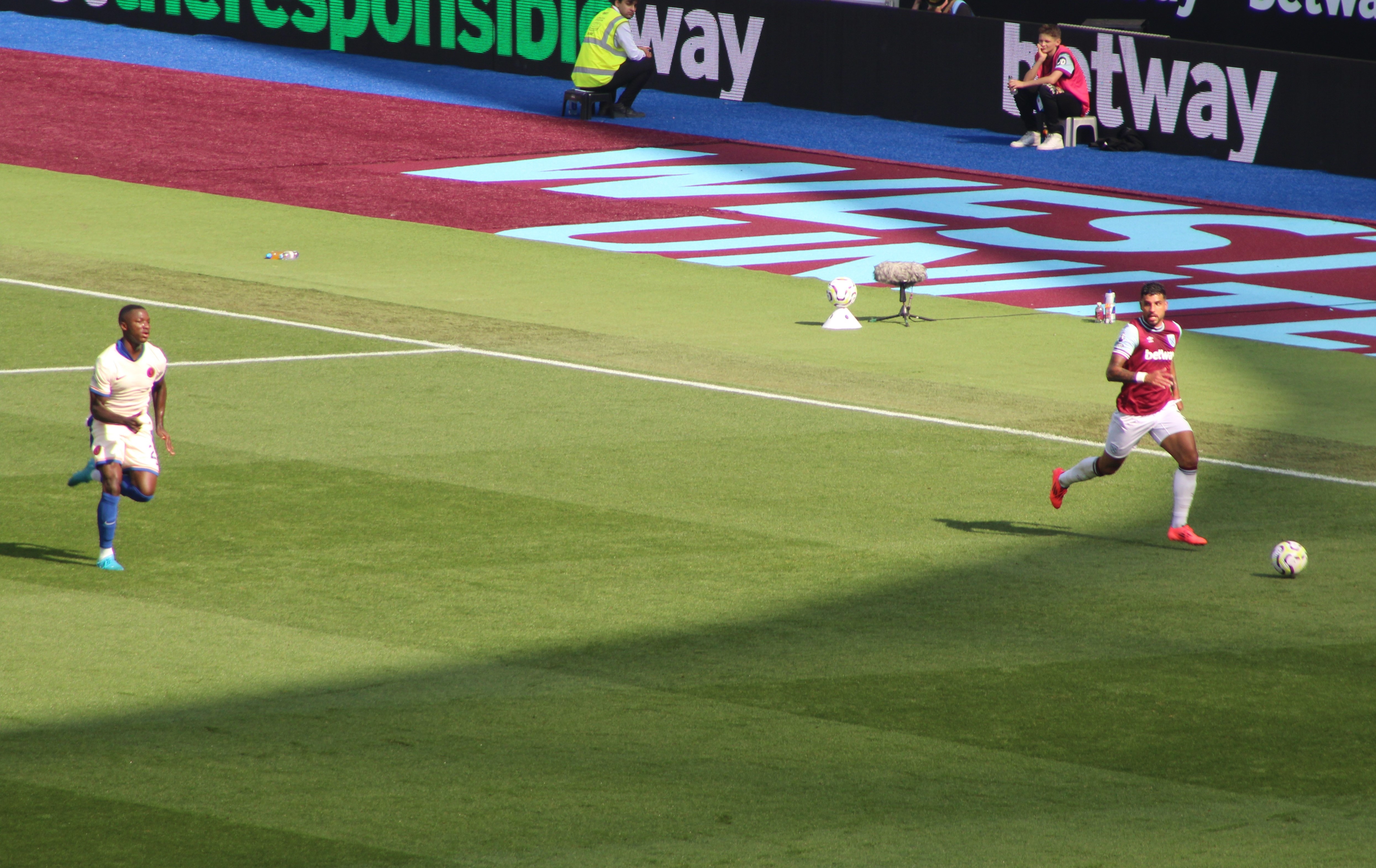 Into the second half, a magnificent burst from Madueke down in front of us – just a joy to watch – but a weak finish from that man Jackson. Just after, Nico slipped in the box. Just after, a fantastic dummy by Madueke out on the line, a little like Jadon Sancho at Palace, but he then gave the ball away cheaply.