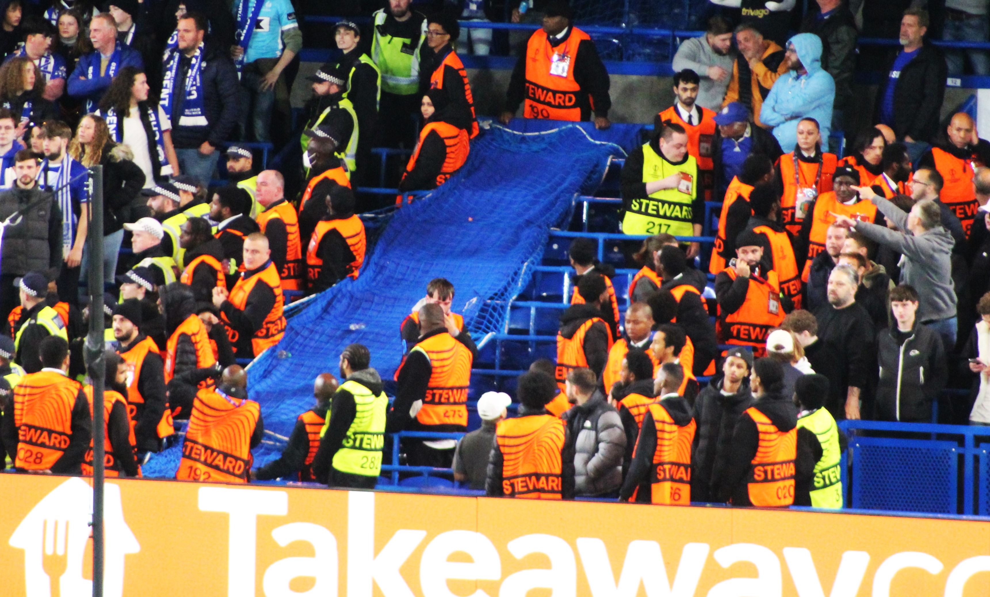 I guess I was inside with a good forty-five minutes to go. There seemed to be many more obnoxious half-and-half scarves in the MHU than normal, and I feared the worst. I suspected an infiltration by you-know-who. Way atop our little section of seats, a father sat with his four-year-old son, who was wearing a Liverpool shirt under his jacket. I tut-tutted and tried to find someone else to be annoyed at. I didn’t take long. Sat behind me were four lads, two with half-and-halves, who seemed to be ignoring Chelsea’s pre-match kick-in down below us, instead focussing on the Liverpool players at The Shed End. By now Clive was alongside me, and we suggested to them that they were Liverpool fans. Their reply wasn’t in English, but they seemed to intimate that they were fans of football and soon dispersed. They must have had seats dotted all over the MHU.