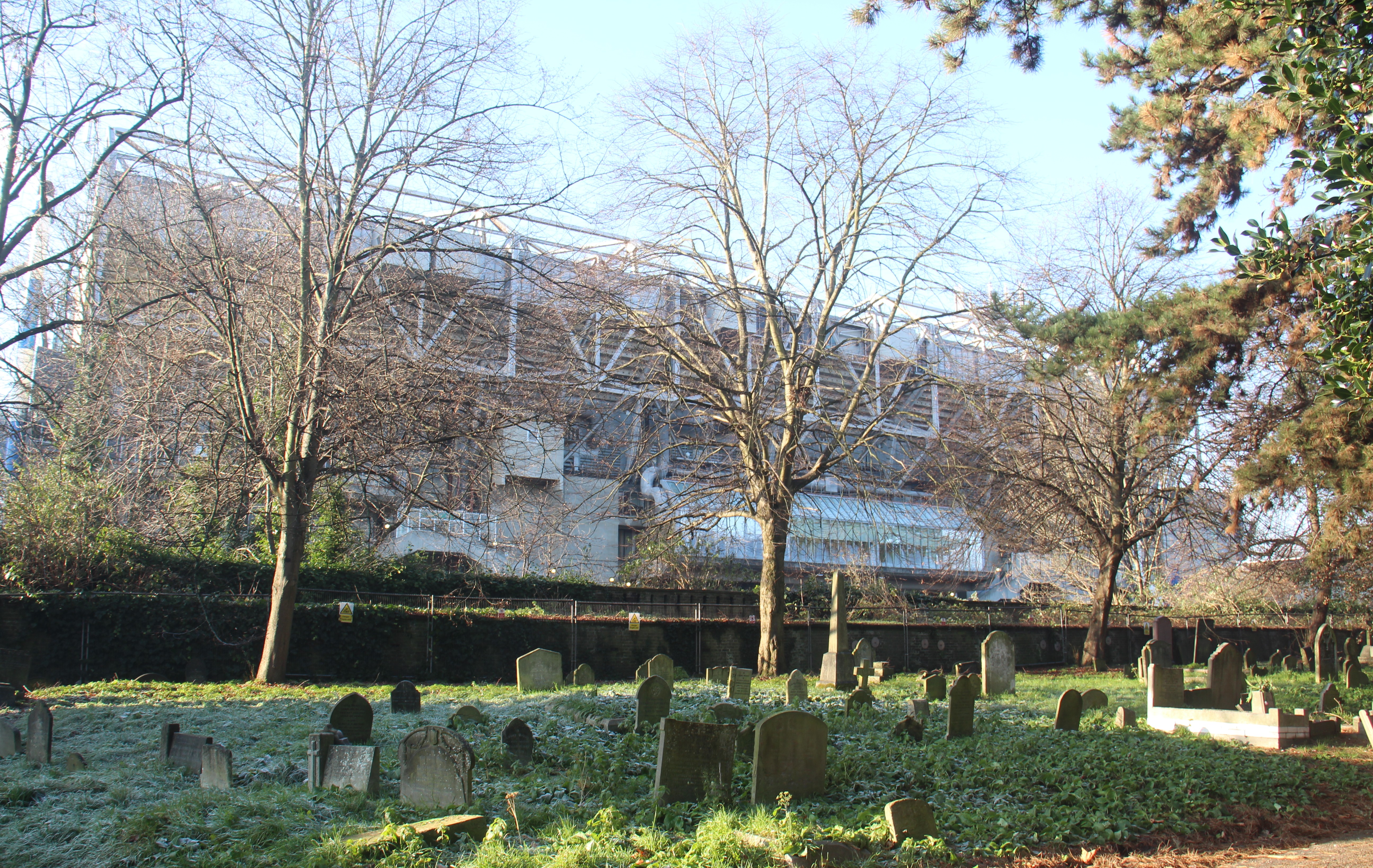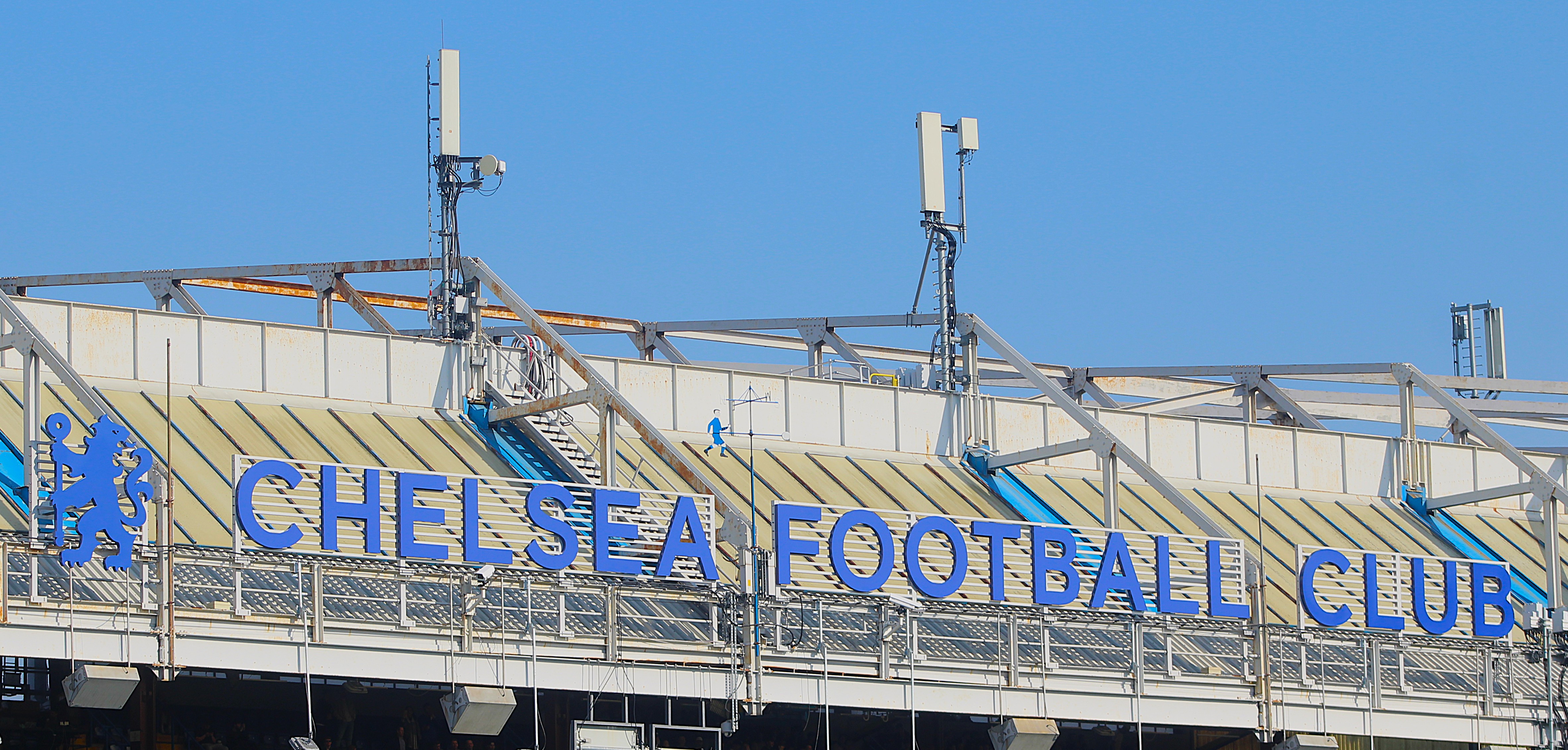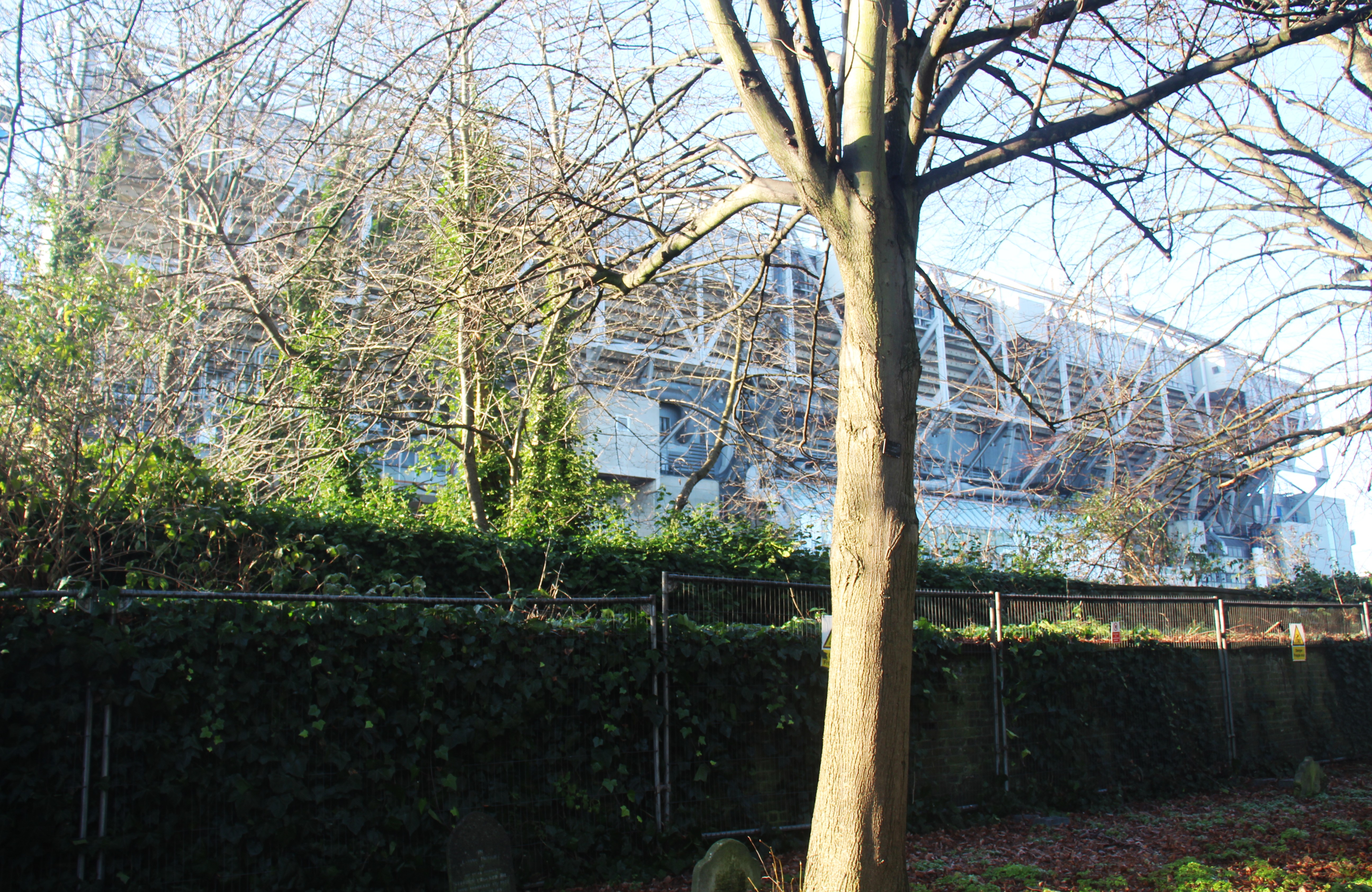 The turnstiles were housed in a wall which had shards of glass on the top to deter fans from gaining free entry. Note the Chelsea supporters’ coach and the Sergio Tacchini top.