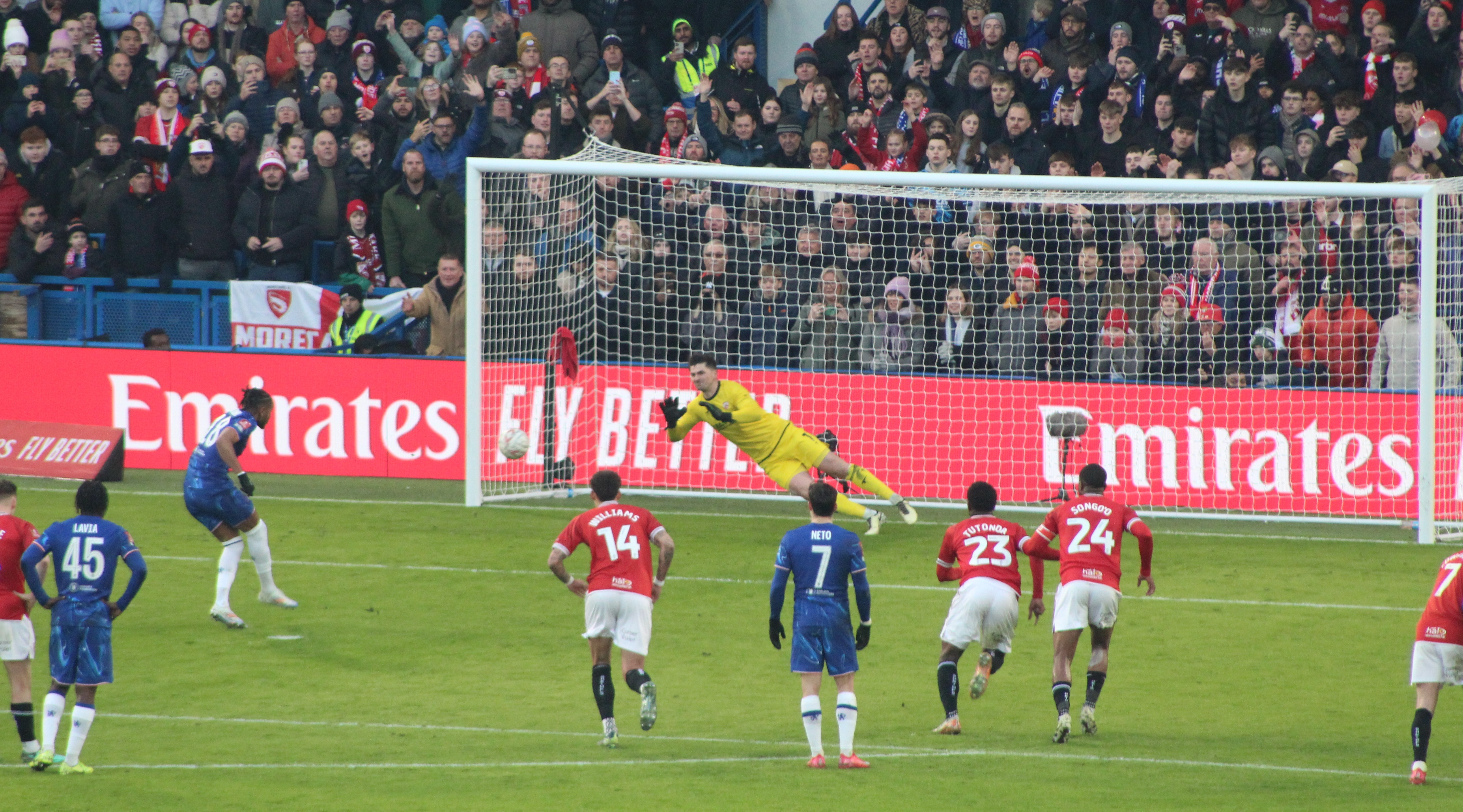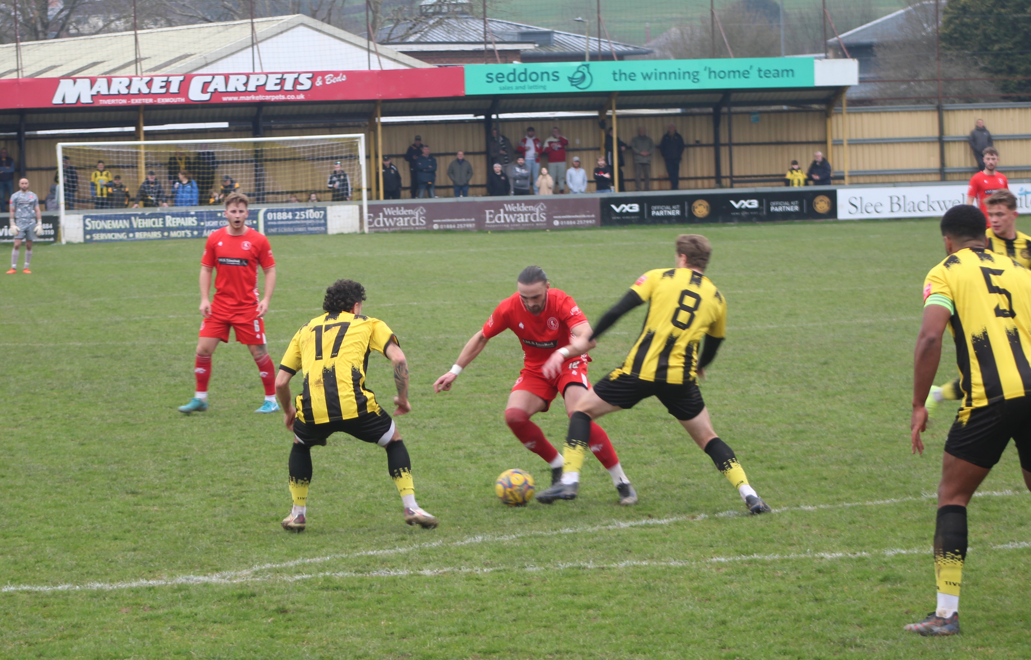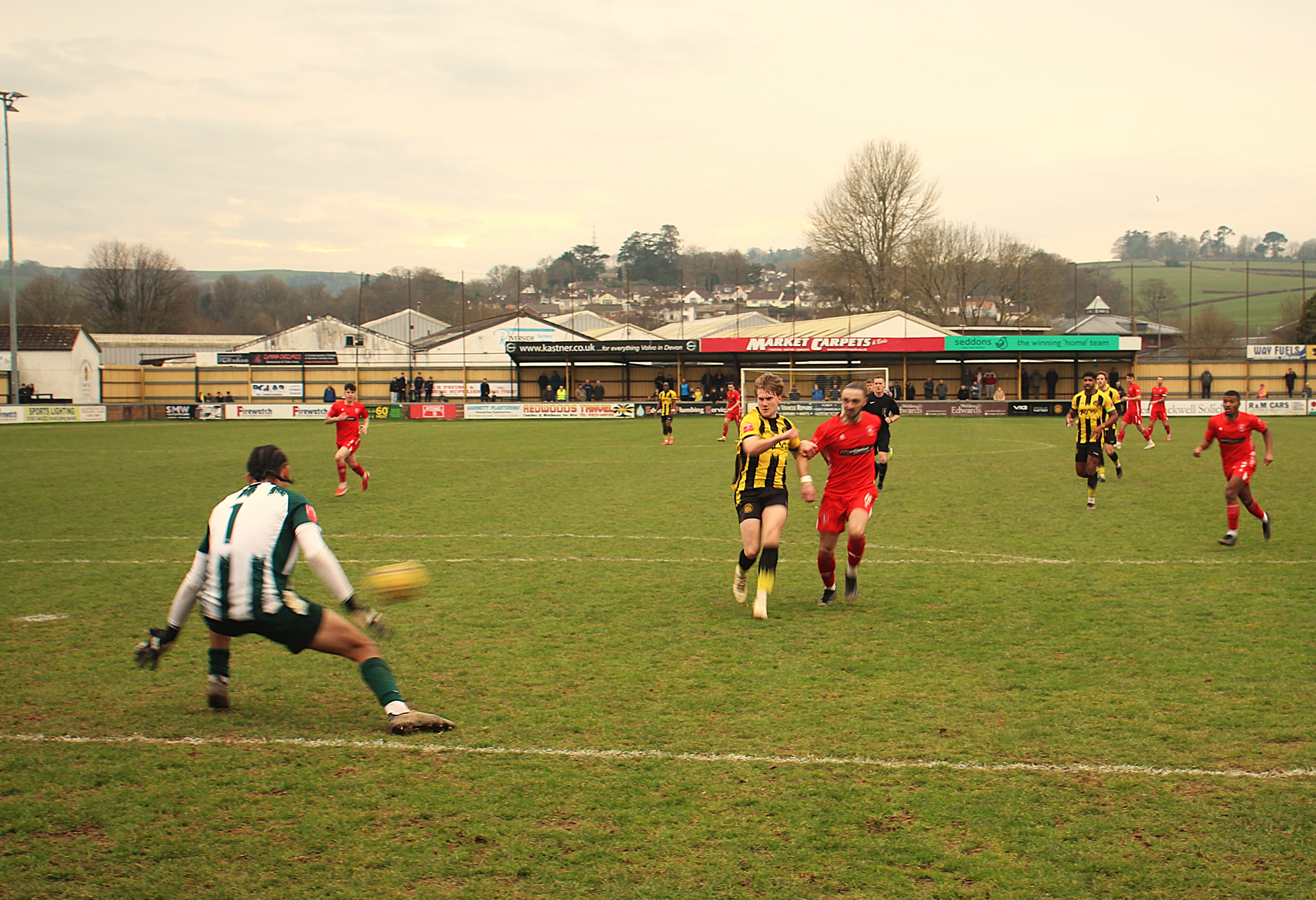 He ran towards the goal and turned towards the East Stand but I summoned up all of my psycho-kinetic powers to entice him over to us, under The Sleepy Hollow.