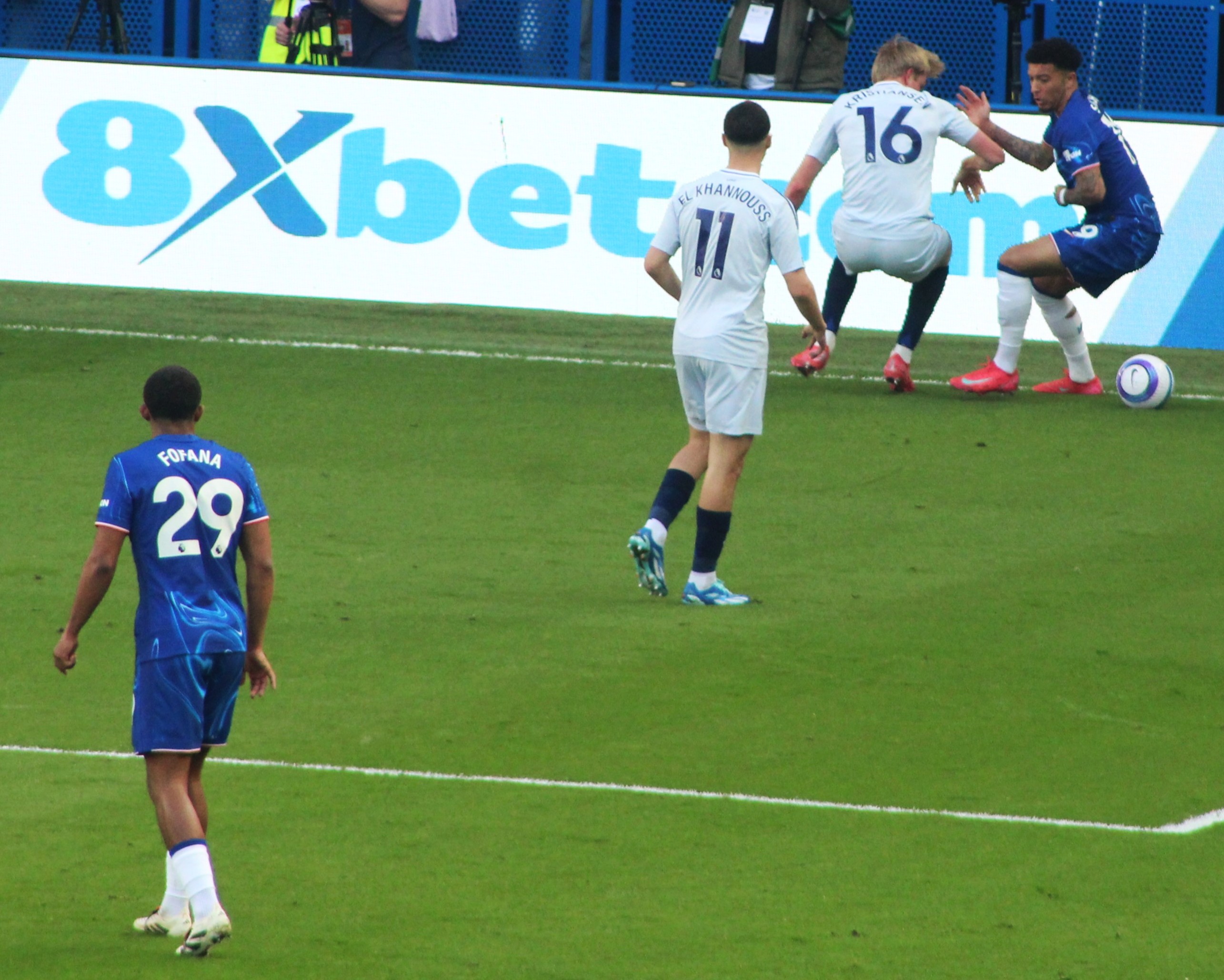 On thirty-one minutes, Noni Madueke played a one-two with Marc Cucurella, and his shot was inadvertently blocked by Jackson. The ball ran on to Caicedo, who dropped a lob onto the bar from the byline down near Parkyville.