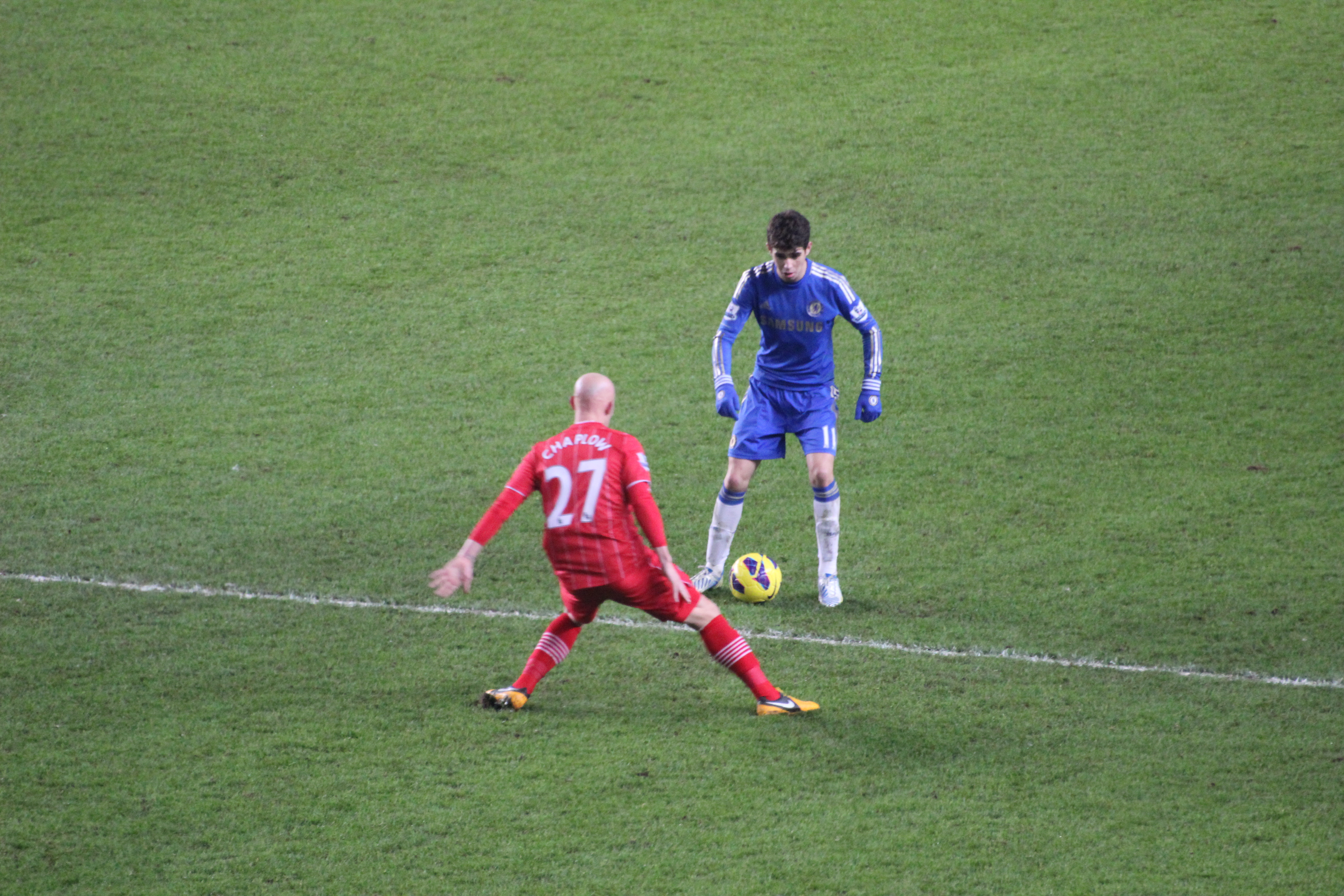 Before we had time to think about too much, the pre-game pageantry had begun. News filtered through that Frank Lampard was starting as captain. I hoped that sentimentality hadn’t clouded Benitez’ decision to start him. It was, after all, Frank’s first start for ages. After Luiz’ ground-breaking start in a defensive-midfield position on Thursday, Benitez chose to play Frank alongside Ramires, so Luiz reverted to his central-defensive position alongside Gary Cahill. A surprising start went to Victor Moses, ahead of Oscar.