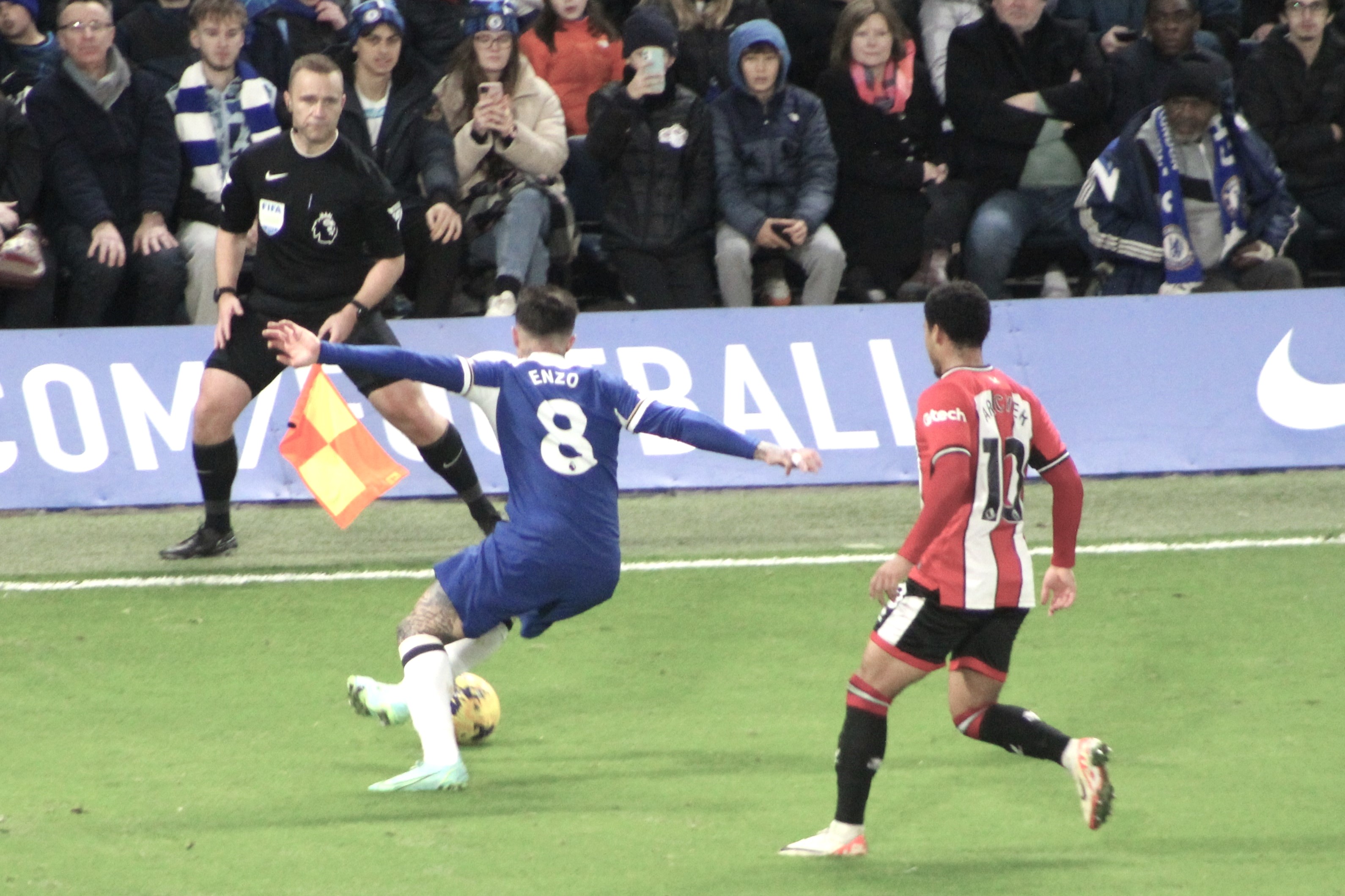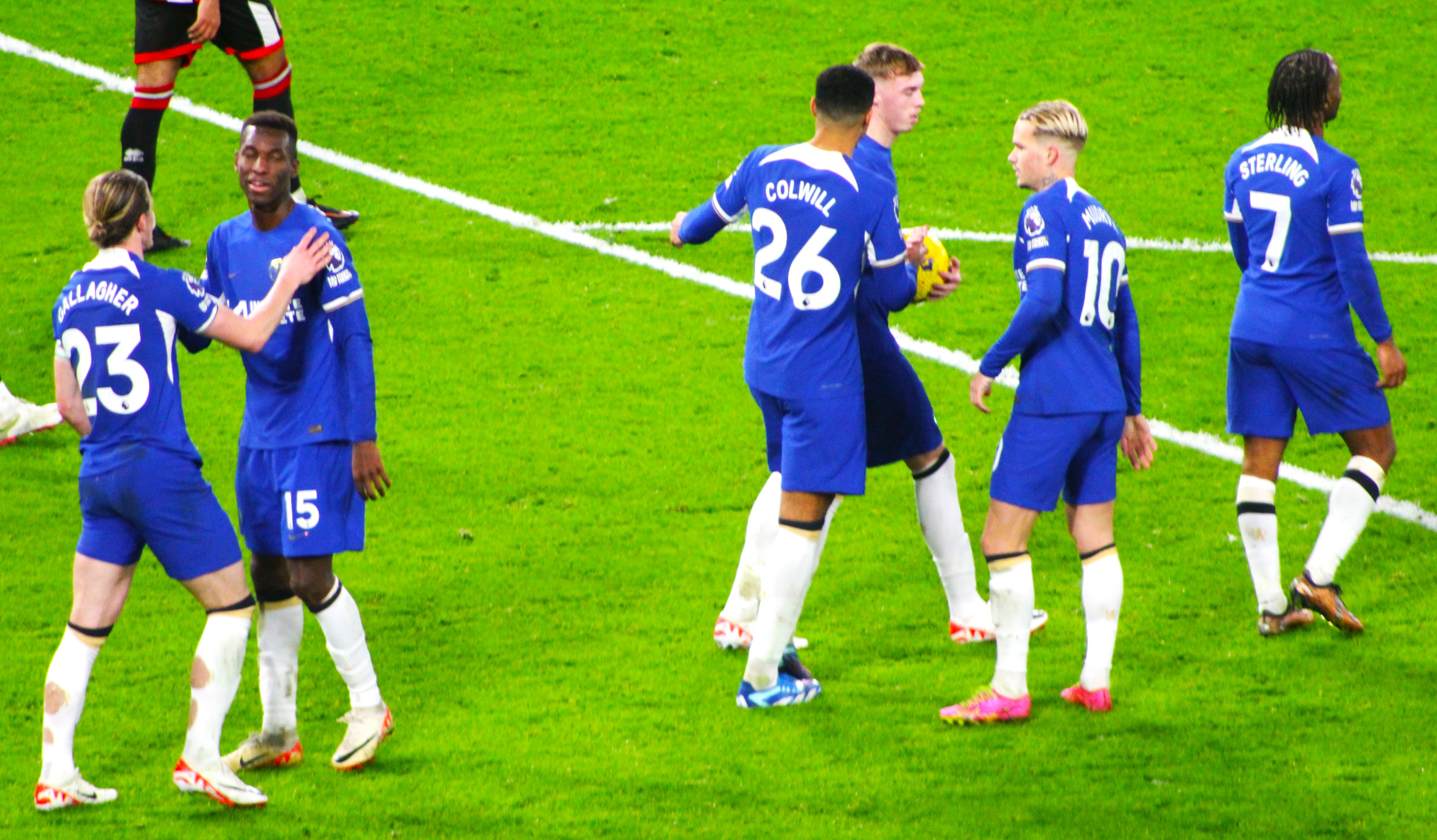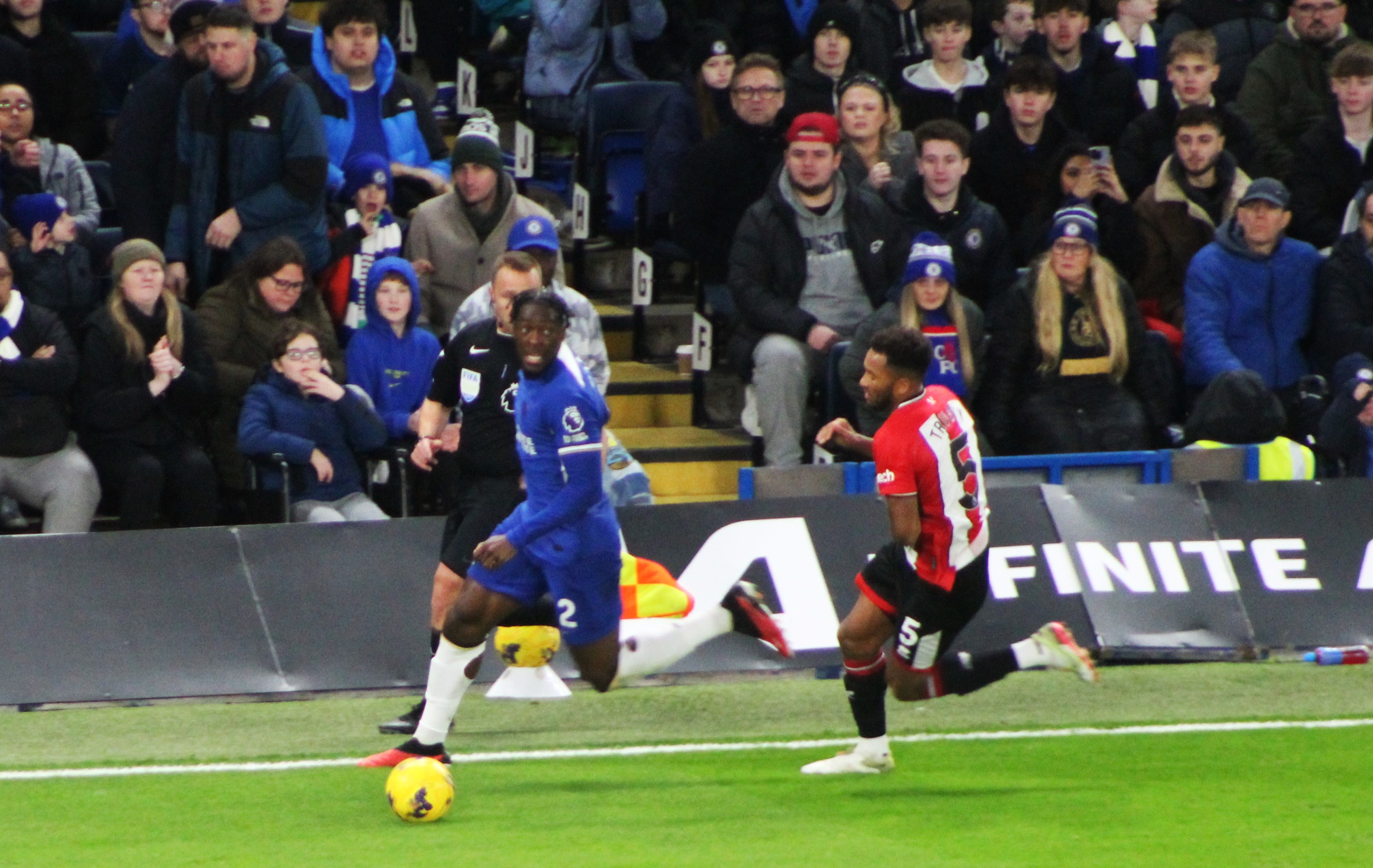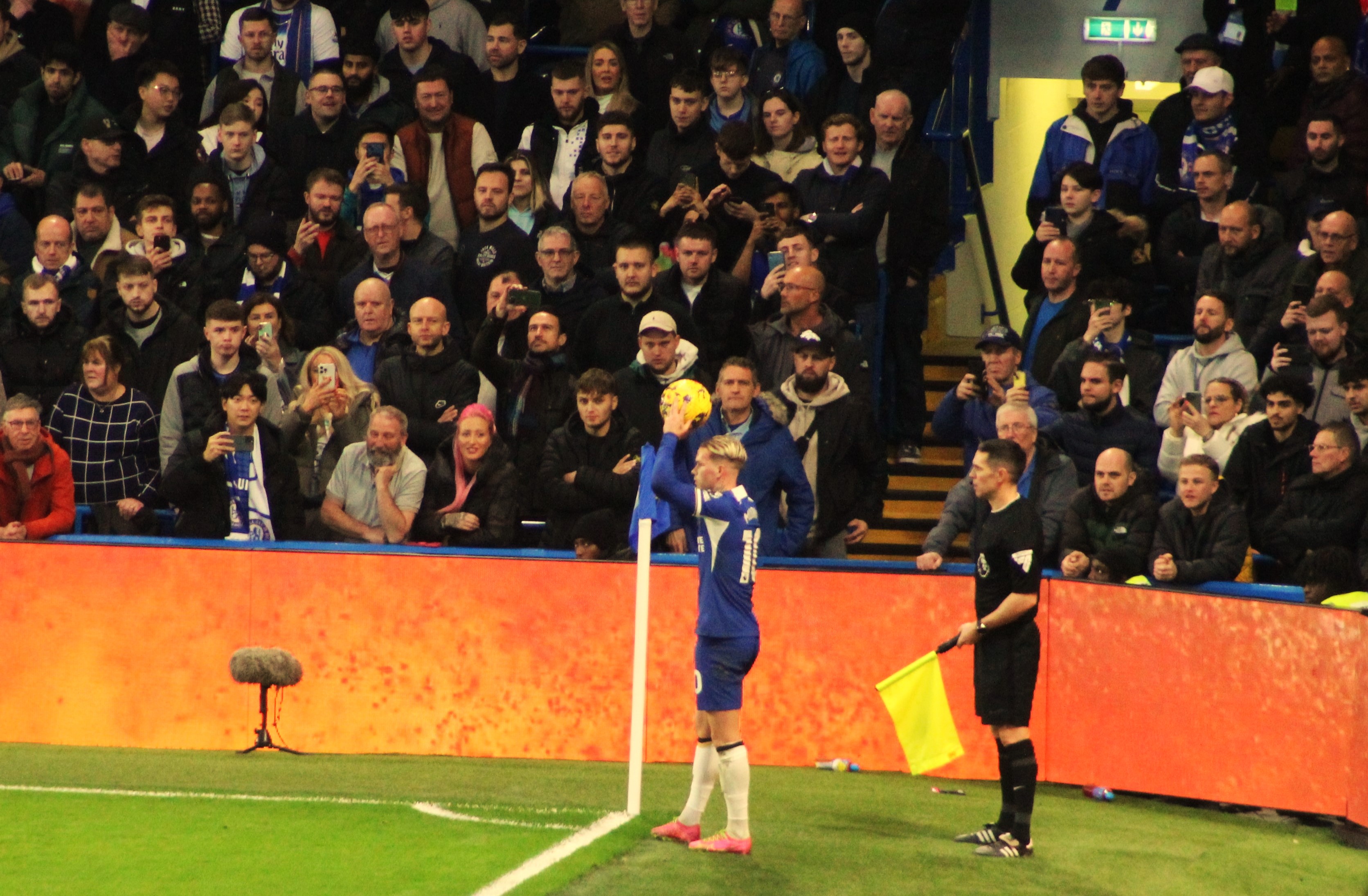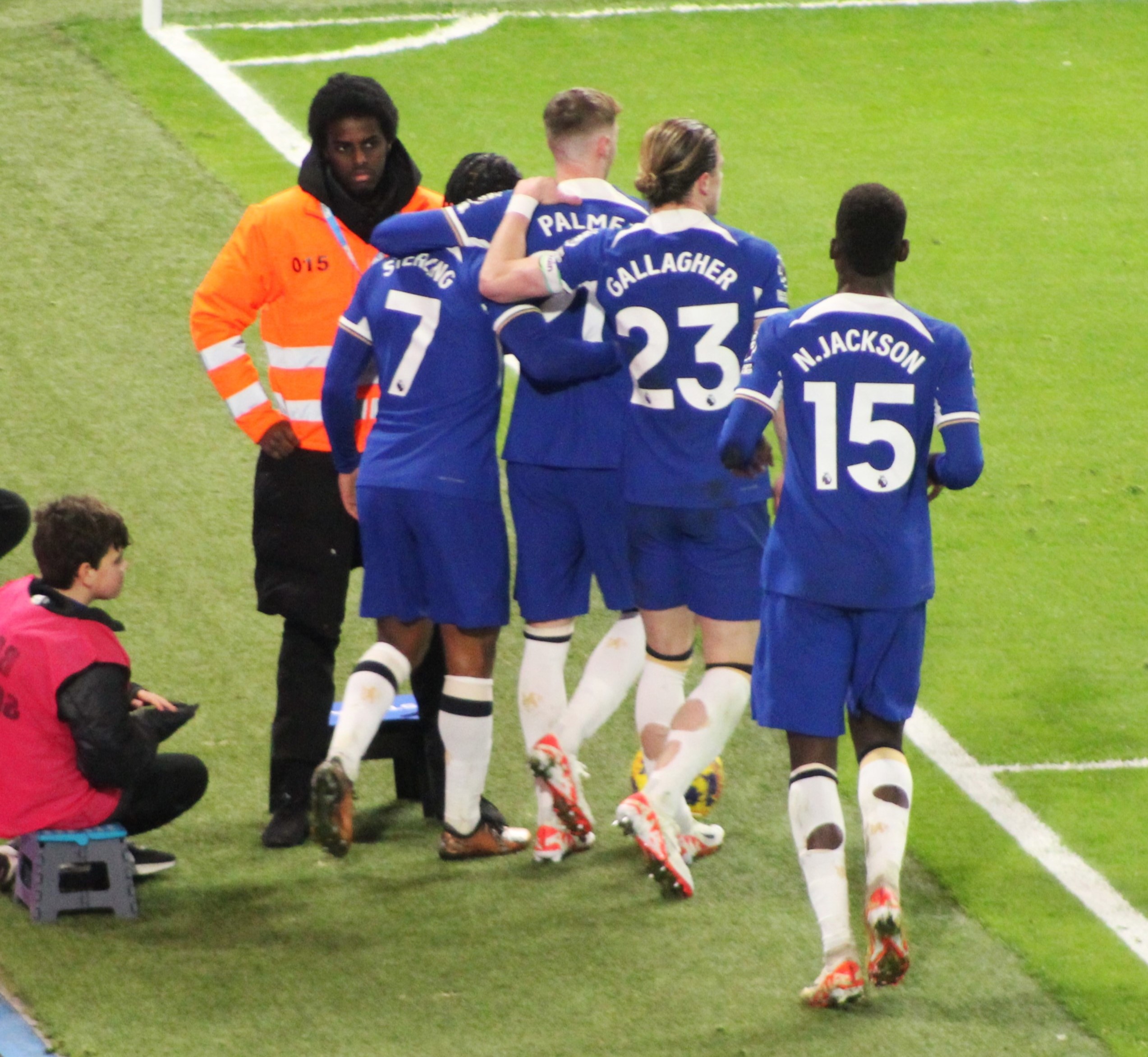 I had been watching Benoit Badiashile and Cesare Casadei warming up near us on the touchline, but I was shocked to see them brought on so late in the game; Badiashile replaced Cucarella, Casadei replaced Jackson. I guess the idea was to pack our defensive lines full of taller players, but it smacked of desperation from my viewpoint in the away end.