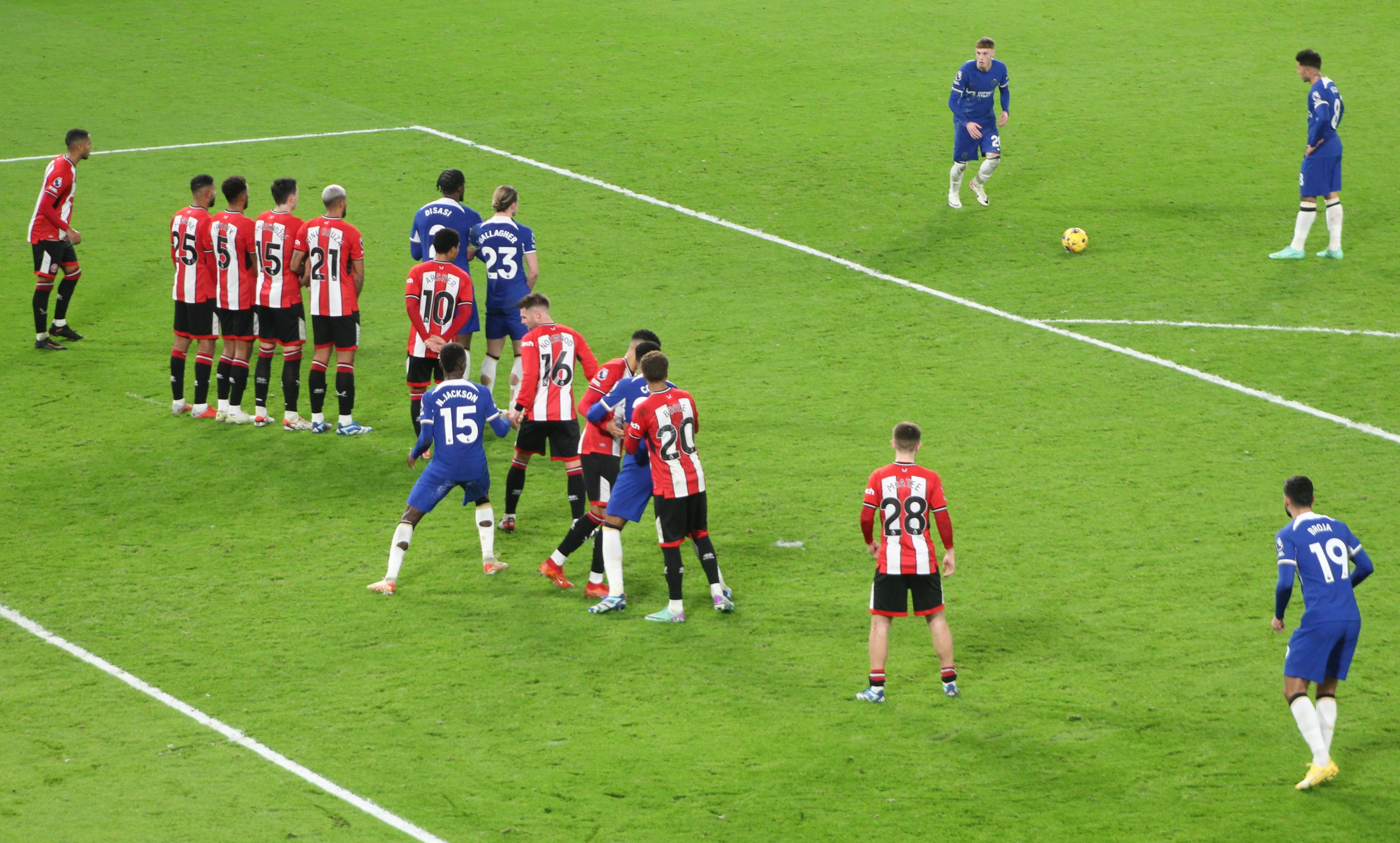 We attacked The Kop and began brightly enough. Noni Madueke made a few forceful runs out wide and at least one took him deep inside the Sheffield United box. I captured our first real shot in anger, one from the raiding Cole Palmer that was blocked.