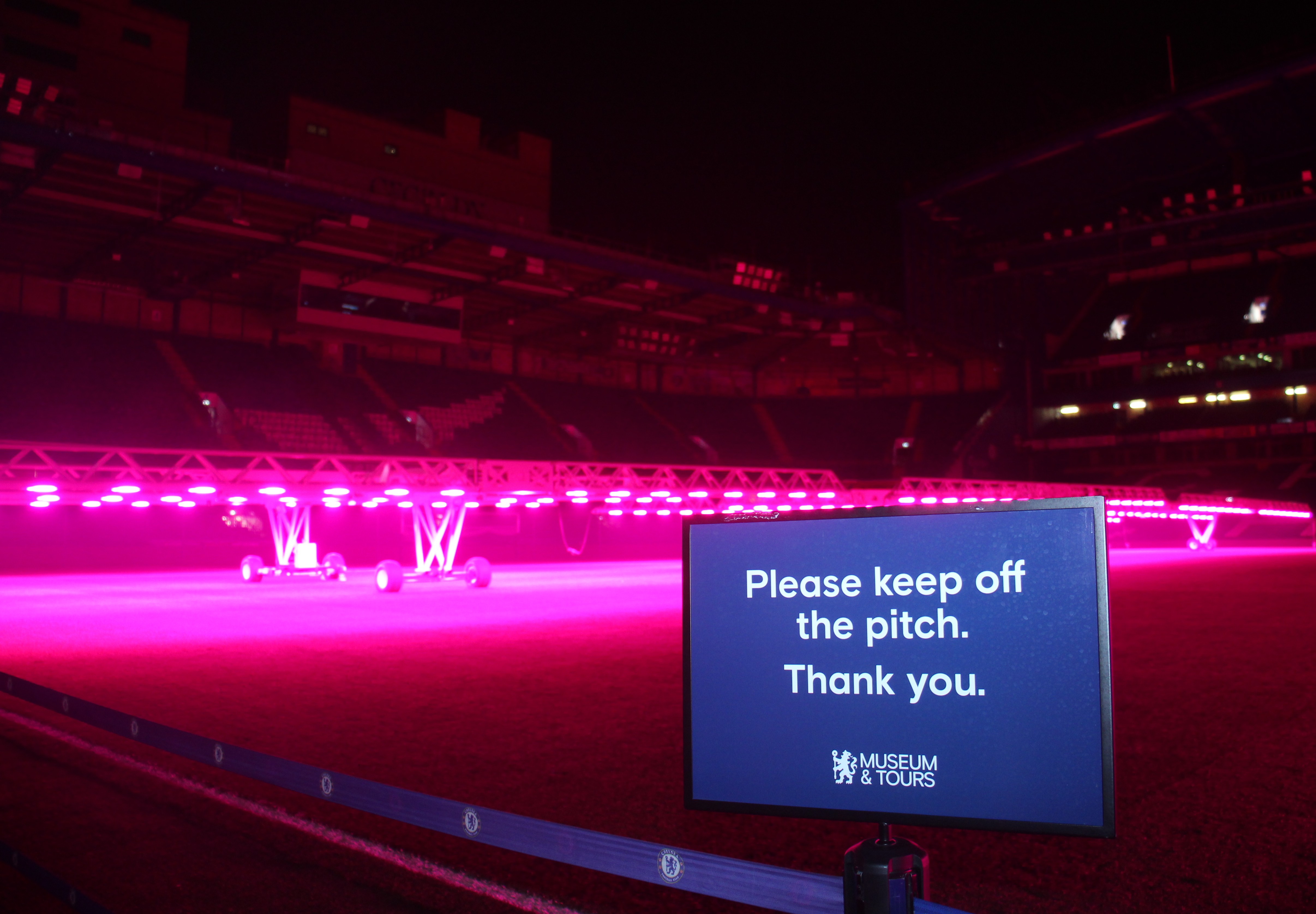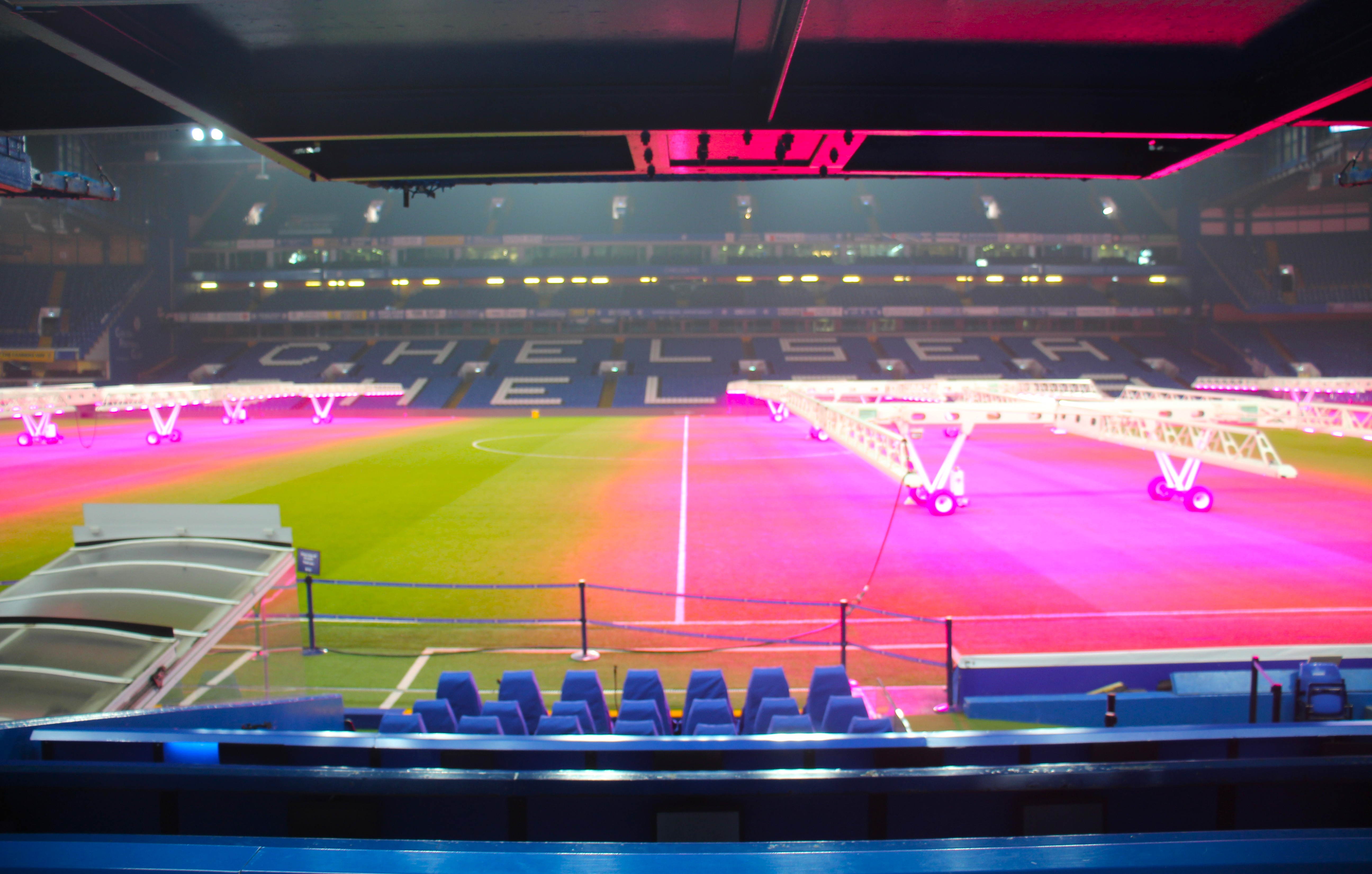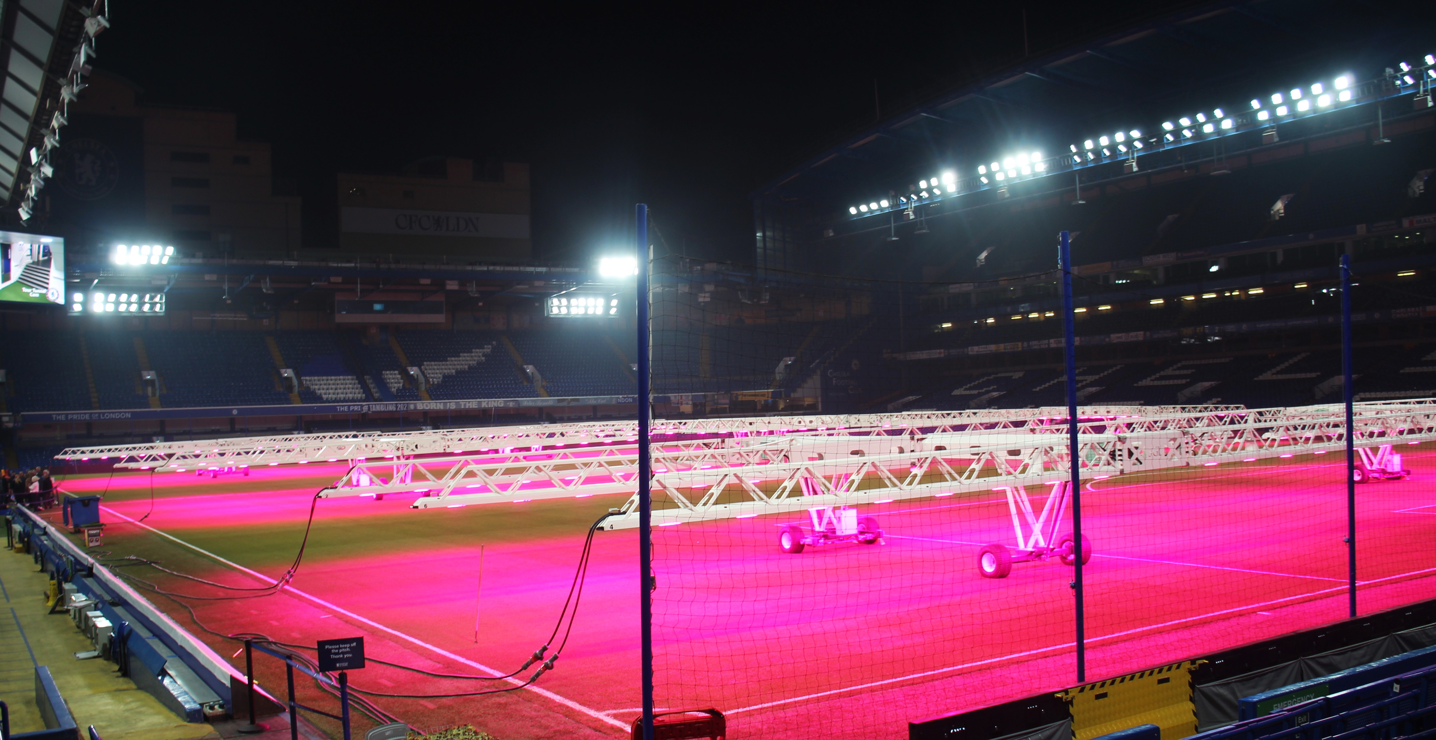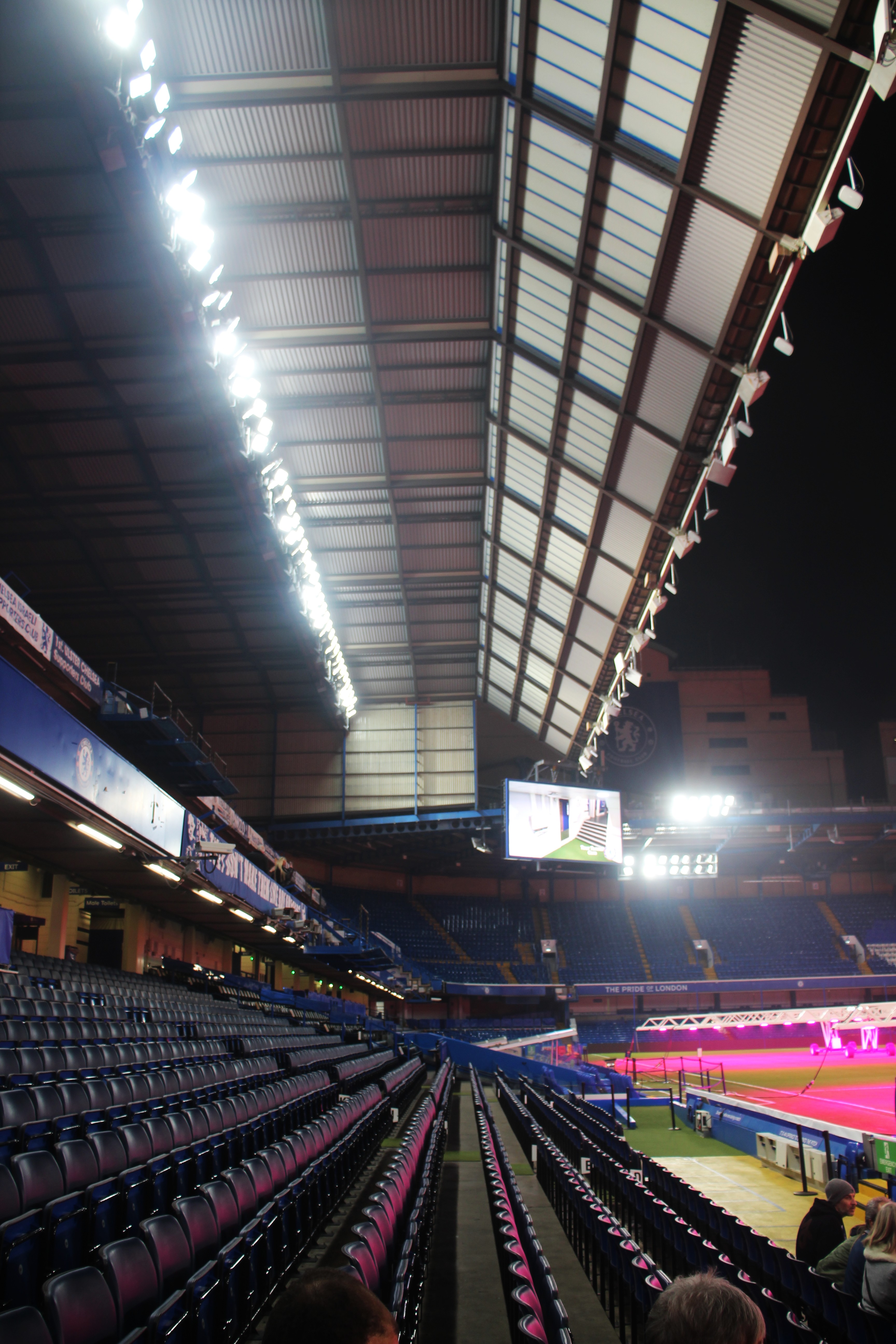 There was plenty of laughter, plenty of smiles and giggles, and I loved it that Jimmy’s perfect hat-trick against Tottenham was mentioned a few times. In some ways, the star of the show was the Stamford Bridge pitch itself, bathing under self-tanning ultra-violet lights on a cold Spring evening. Knowing my obsessional desire to photograph Stamford Bridge as often as possible, in as many different circumstances as possible, it is quite likely that I would have driven up from Somerset just to take photos of the pink pitch and the large structures hovering over it.
