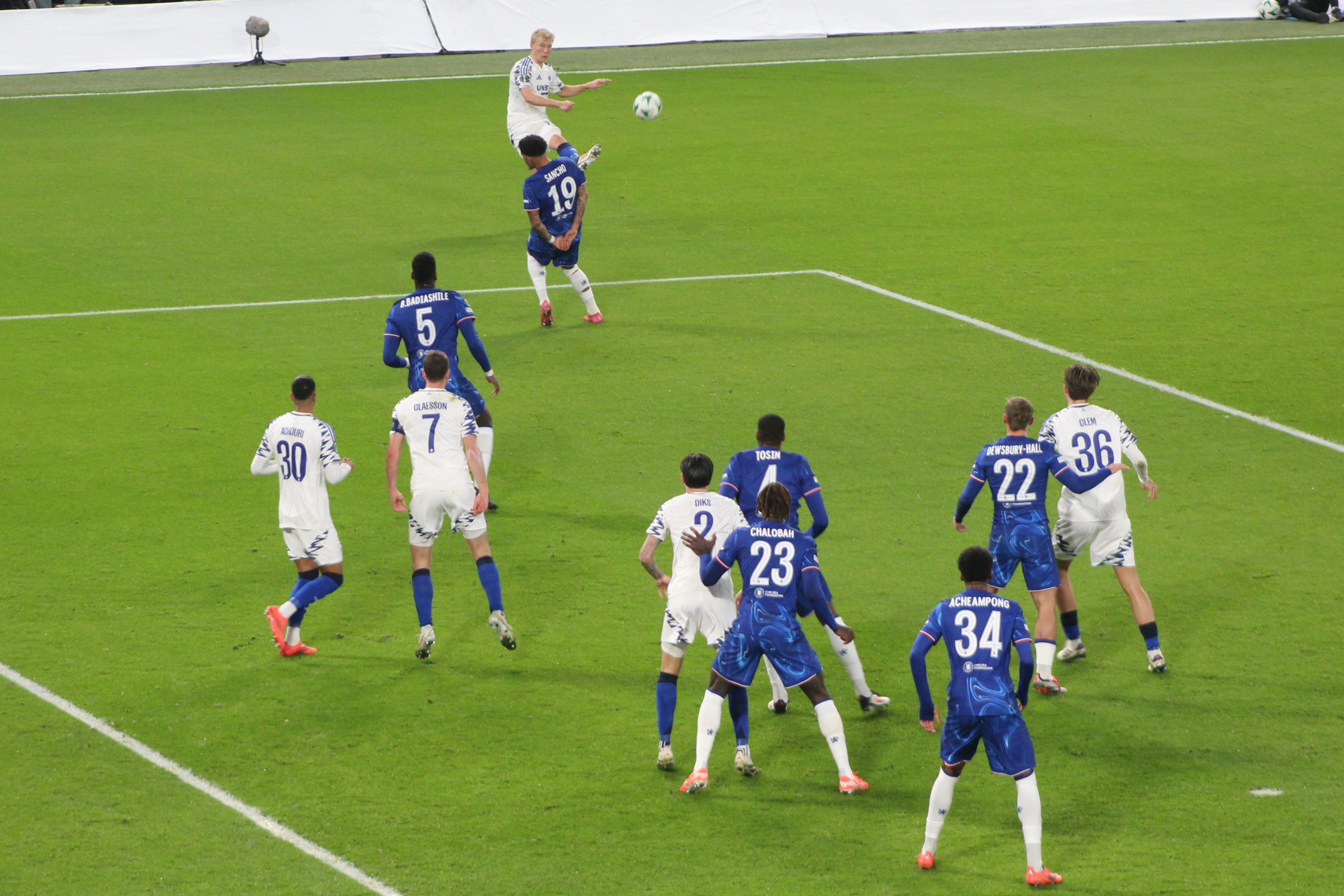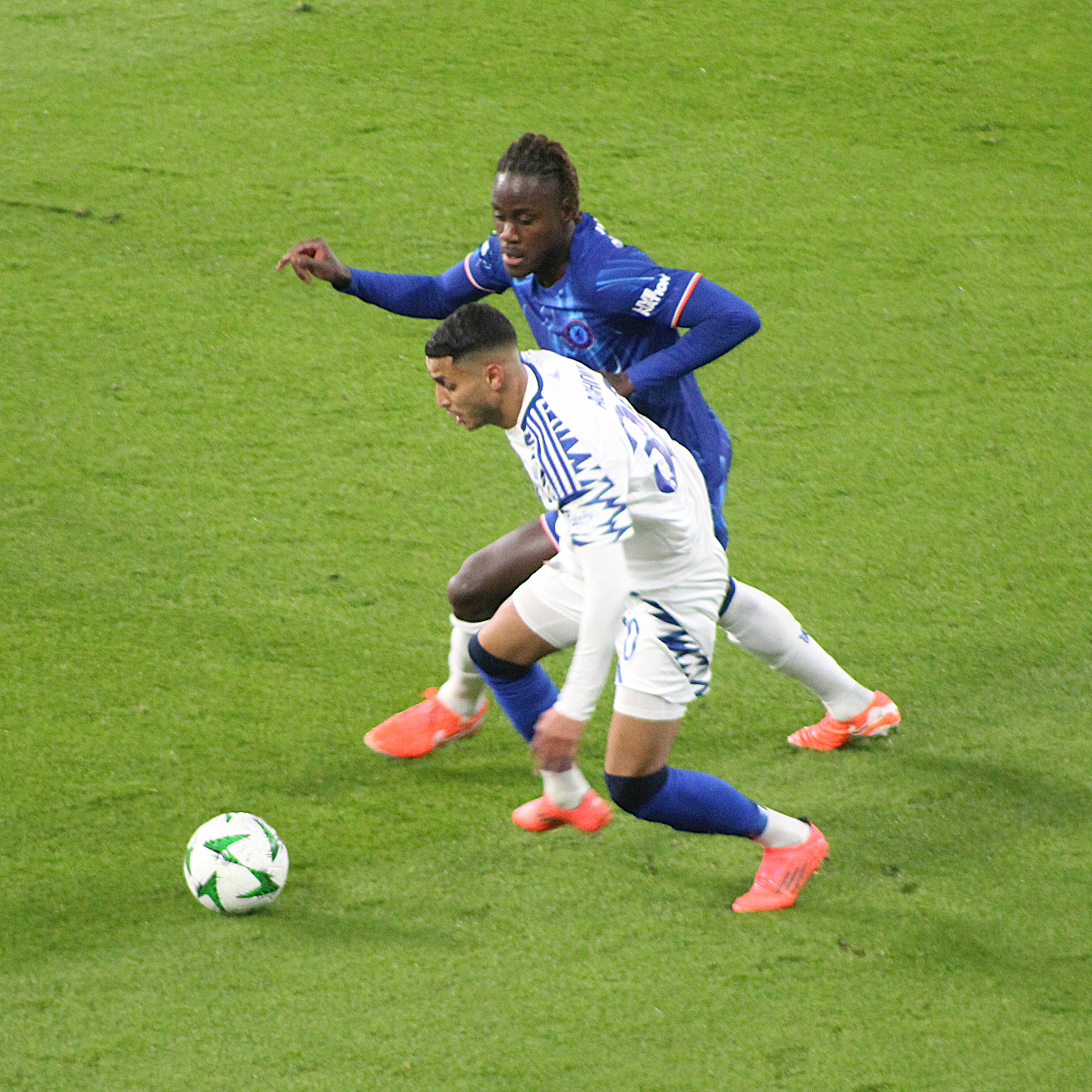 Down on the pitch, my fears were real. There were two early Copenhagen attacks in the first five minutes and then on twelve minutes Josh Acheampong made a timely block on a shot from a Copenhagen attacker. The Chelsea youngster had begun well and would often drift inside during the first half.