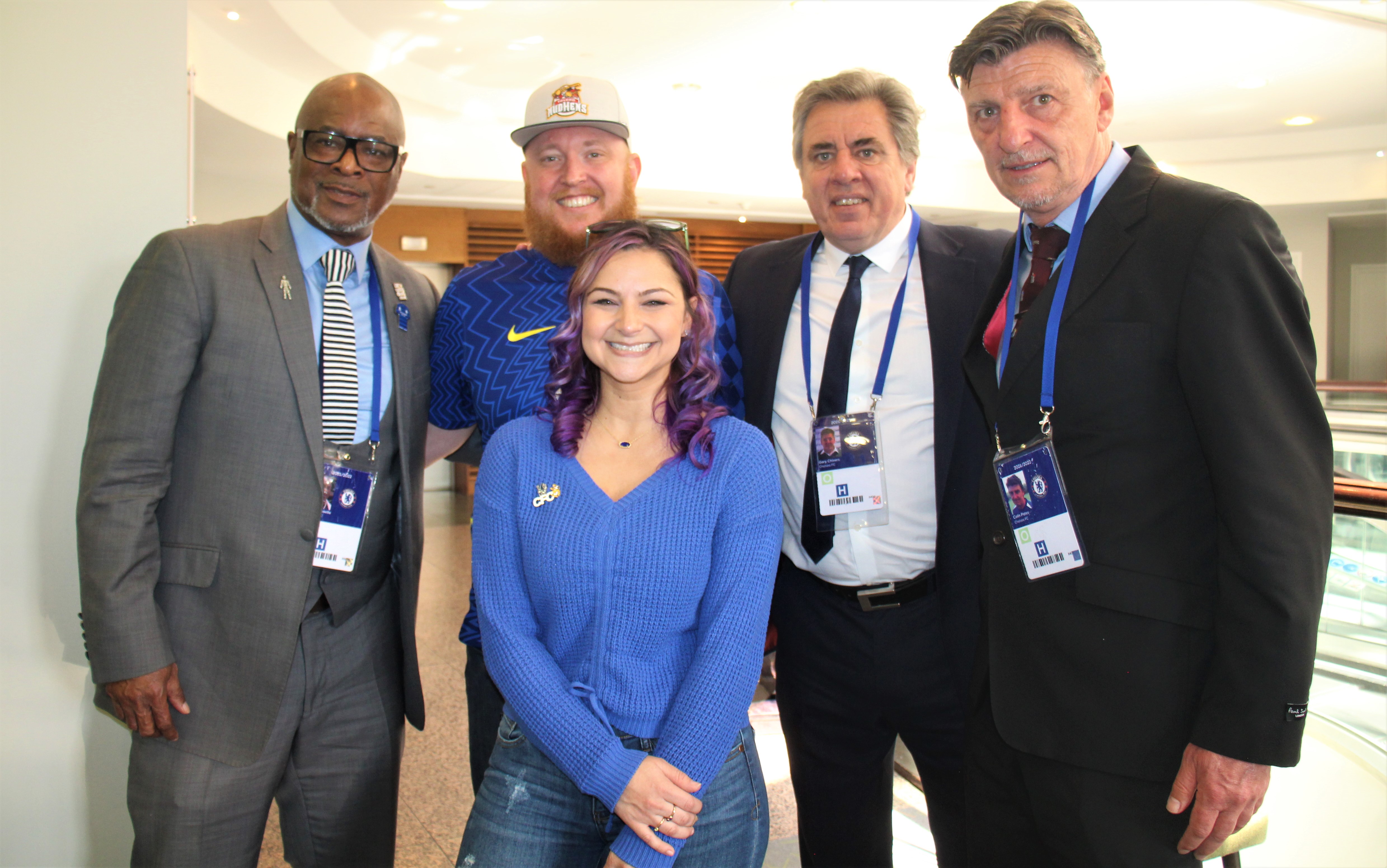 Downstairs, Cathy, John, Glenn, Foxy and myself spent a good few hours chatting about Chelsea and football in general. It was a lovely time, actually. We spotted Carlo Cudicini walk past and take his seat a few yards away alongside several other coaching staff, including Antonio’s assistant Angelo Alessio. I took a photo of Carlo with Cath and Glenn. I spoke to Angelo – can I call him that? – about me being a Juve fan too and seeing him play in Turin in the late ‘eighties. He seemed very amicable. A lovely moment. Around eight of the Chelsea staff were in this little group, and they stayed together for around an hour. Of course, we hoped that Antonio might join them, but he never did. This was at around 10.30pm I guess. The chap that had shooed me away appeared with a bagful of Chelsea 2017 Asia Tour badges. A nice gesture on the face of it, but how nice would it have been for the club to recognise those who had traveled out from the UK on this trip. Just a five-minute session with a few players? That would have been superb. On the US tours, it is only the US based fans who ever get to meet the players at any formal event.