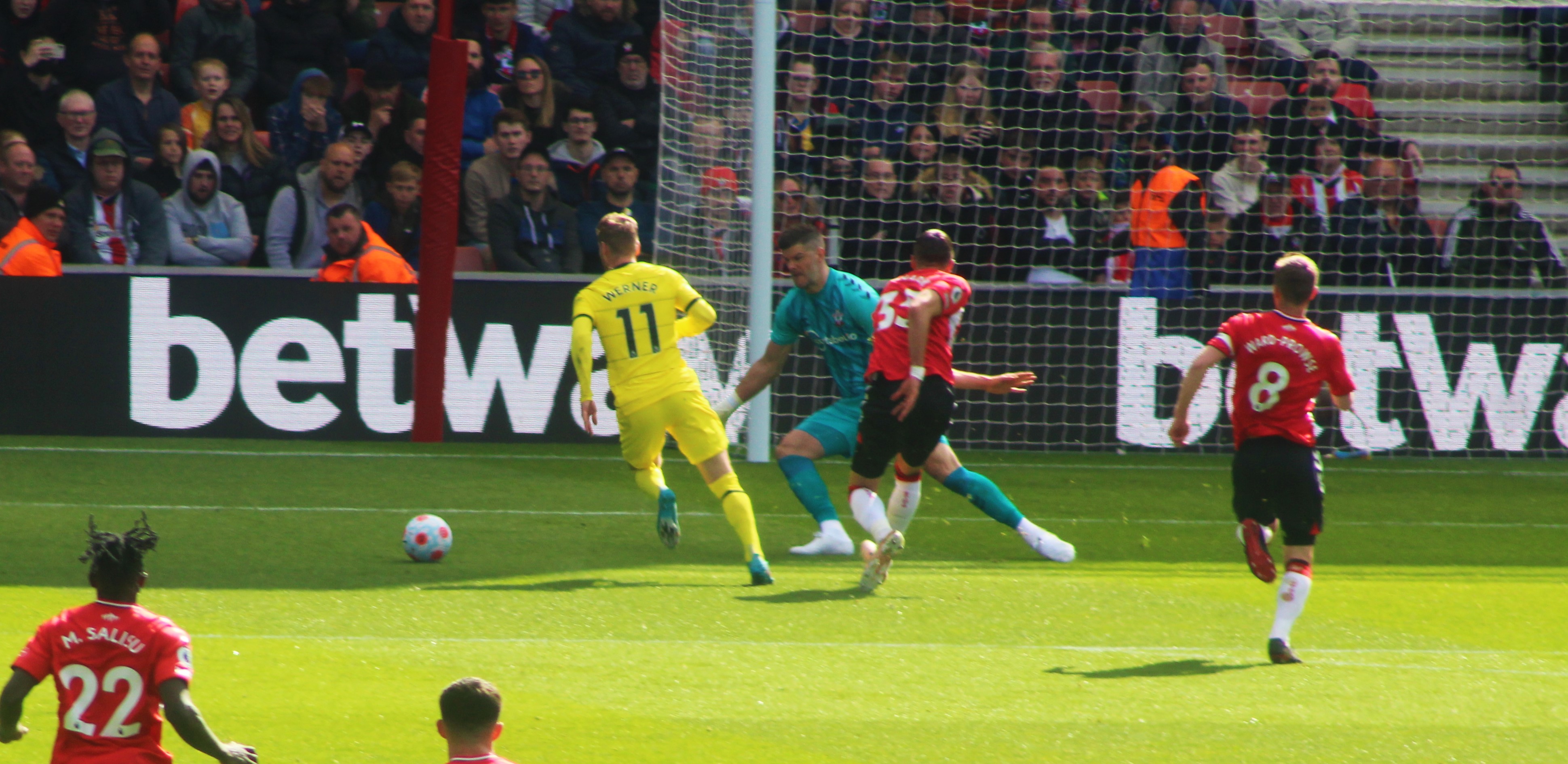 There were two half-chances in that opening flurry. A shot from an angle by Werner but saved by Jose Sa. Next up was a shot by Romelu Lukaku at the near post but he didn’t get enough on it. There was a little weave from Christian Pulisic and a curler that drifted wide. We were utterly dominant.