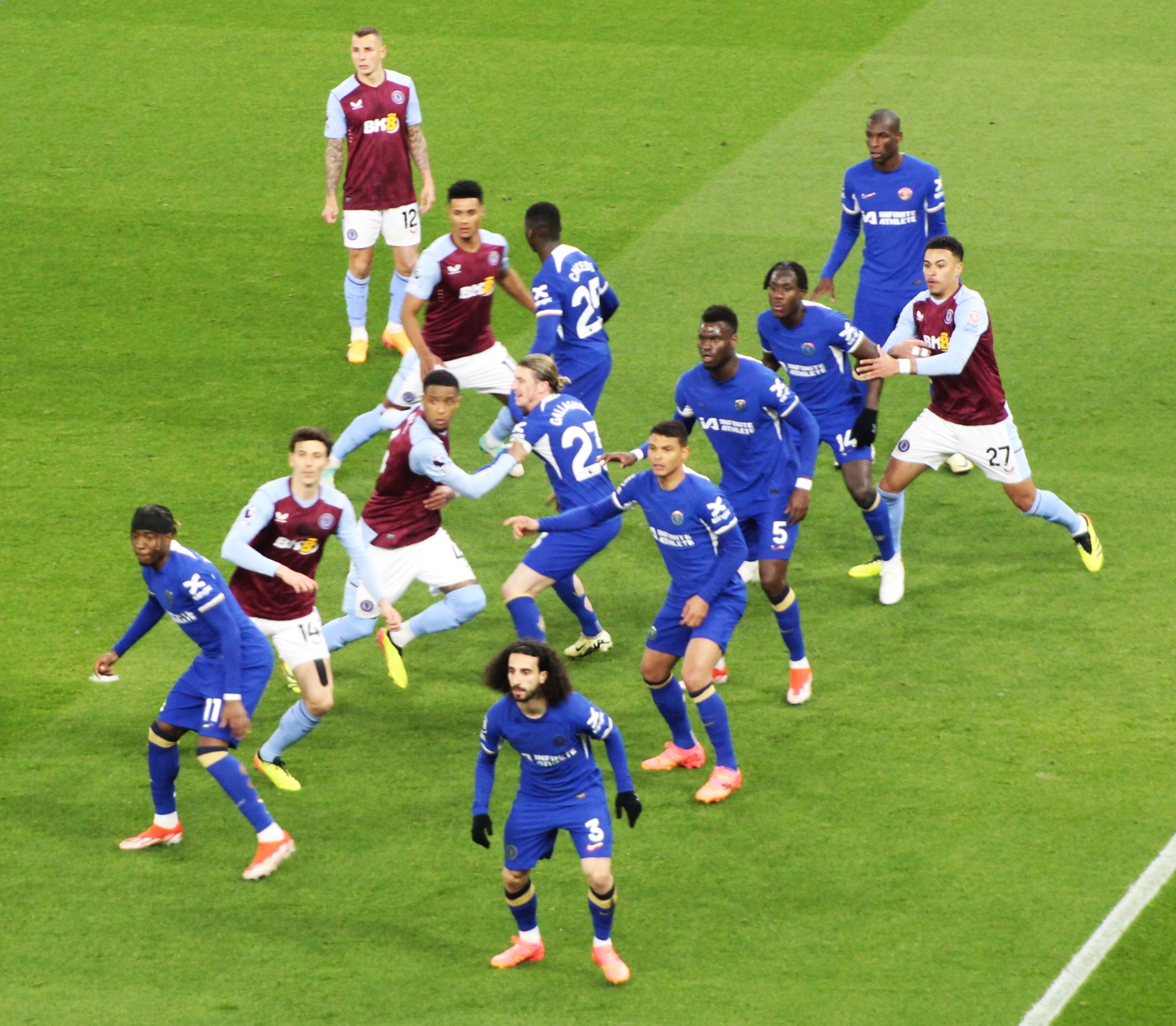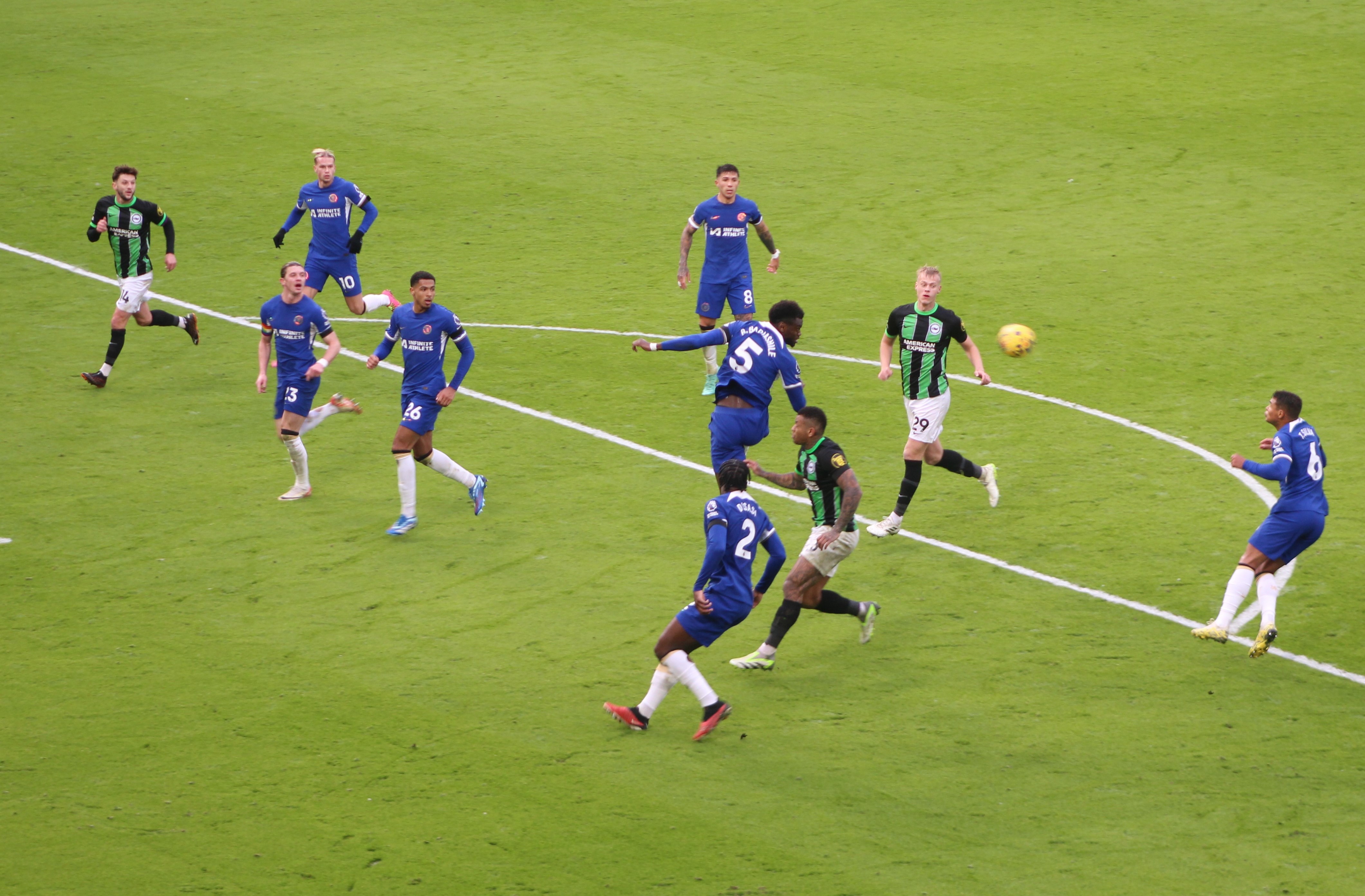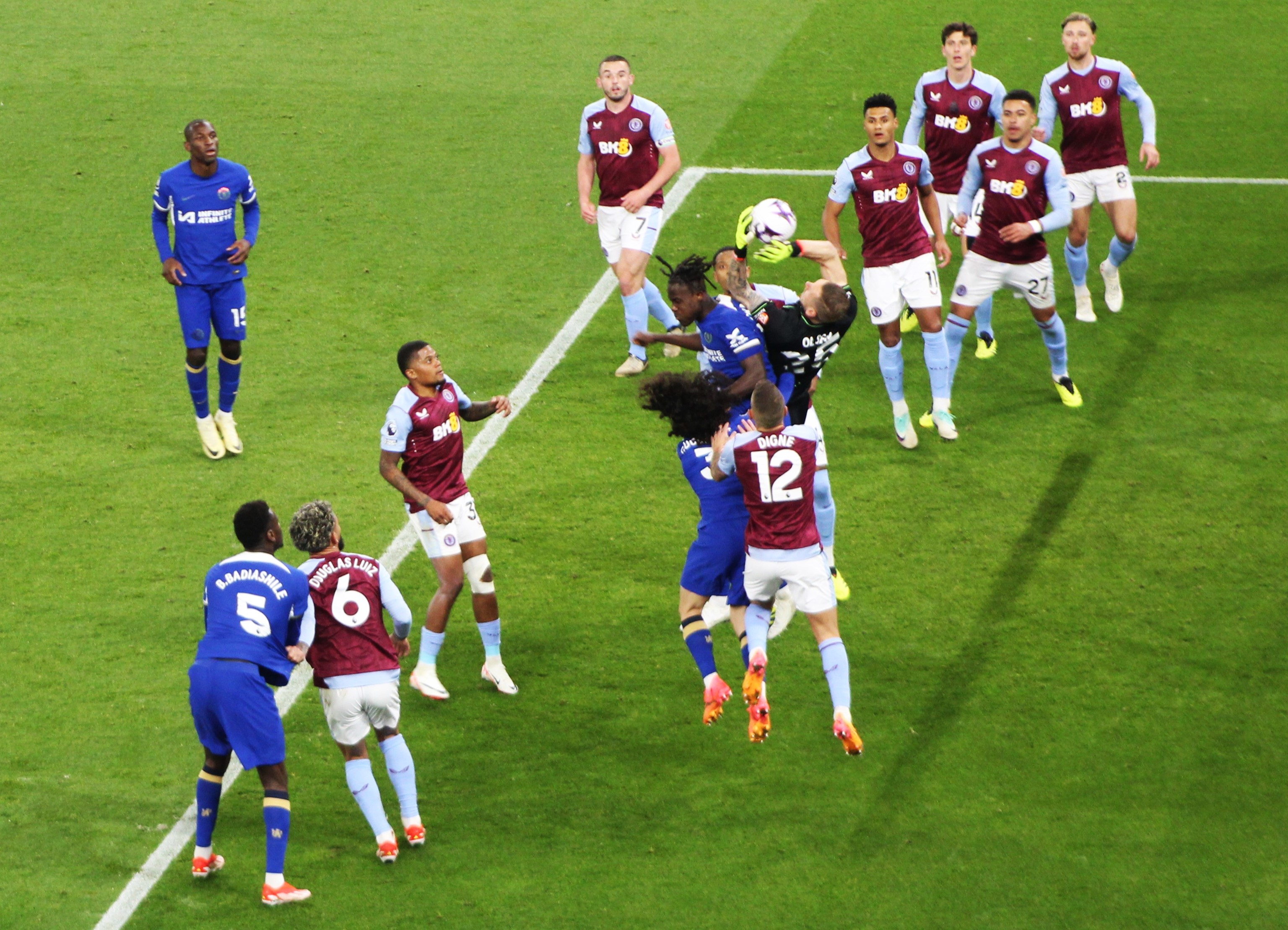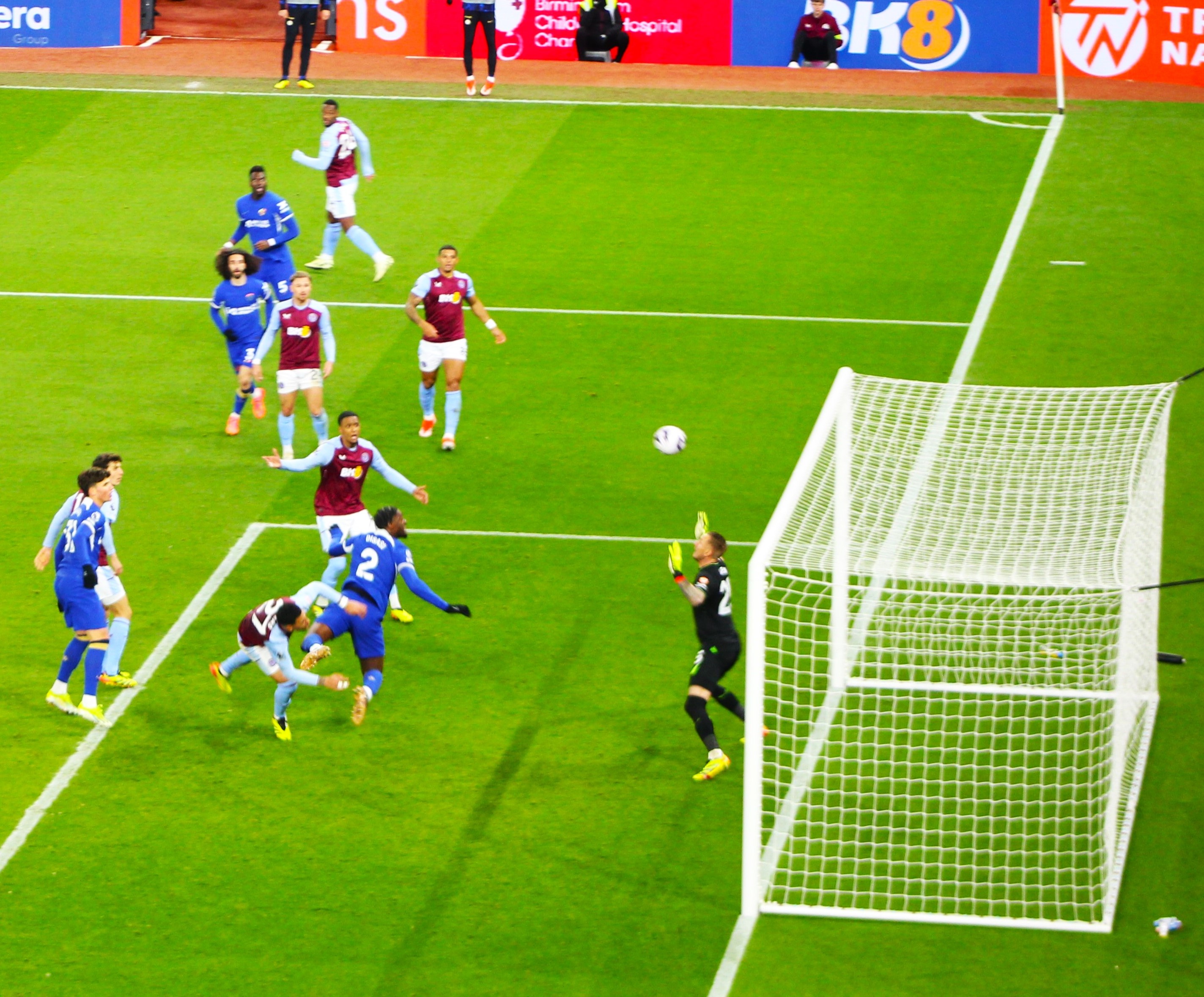 A corner down below us. Palmer swung it in. A Villa header and the ball bounced high. Badiashile won a challenge and hooked the ball back in. Disasi the substitute seemed to arrive late but flung himself at the ball.