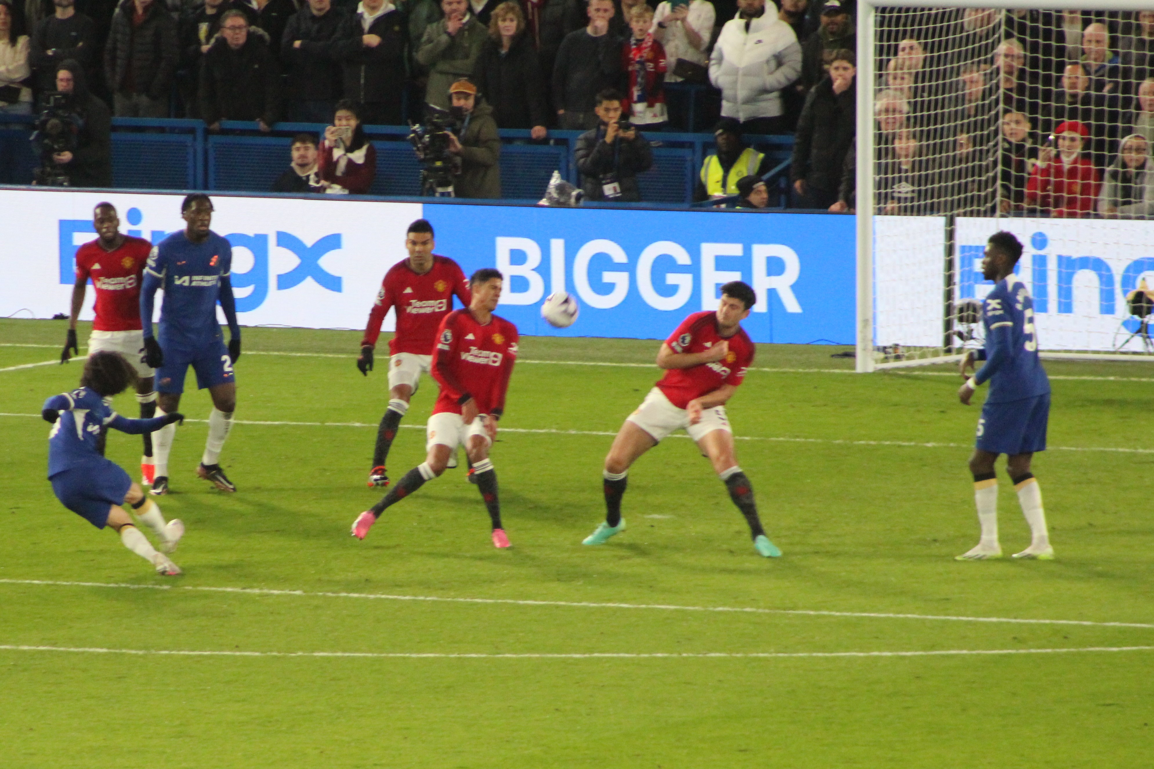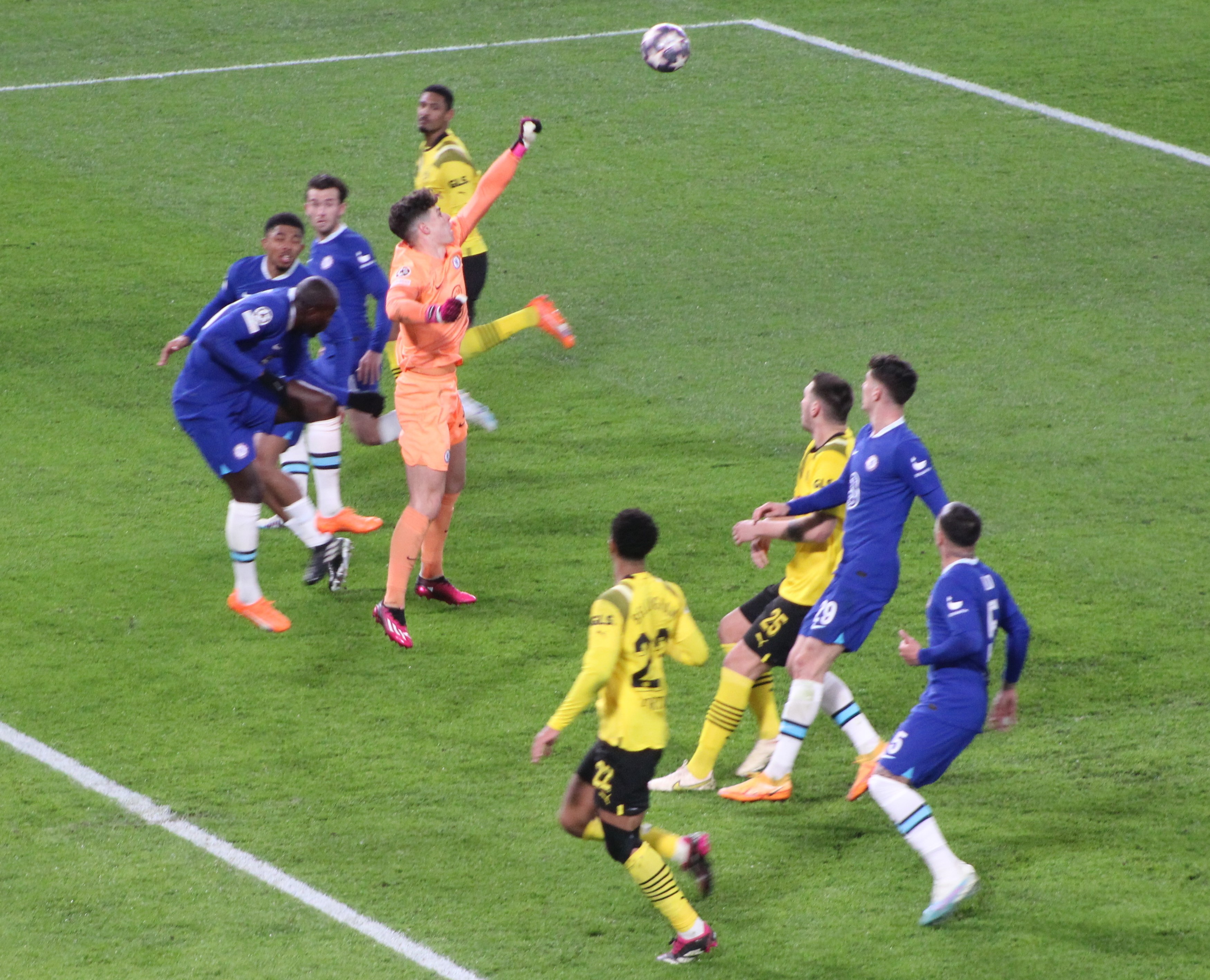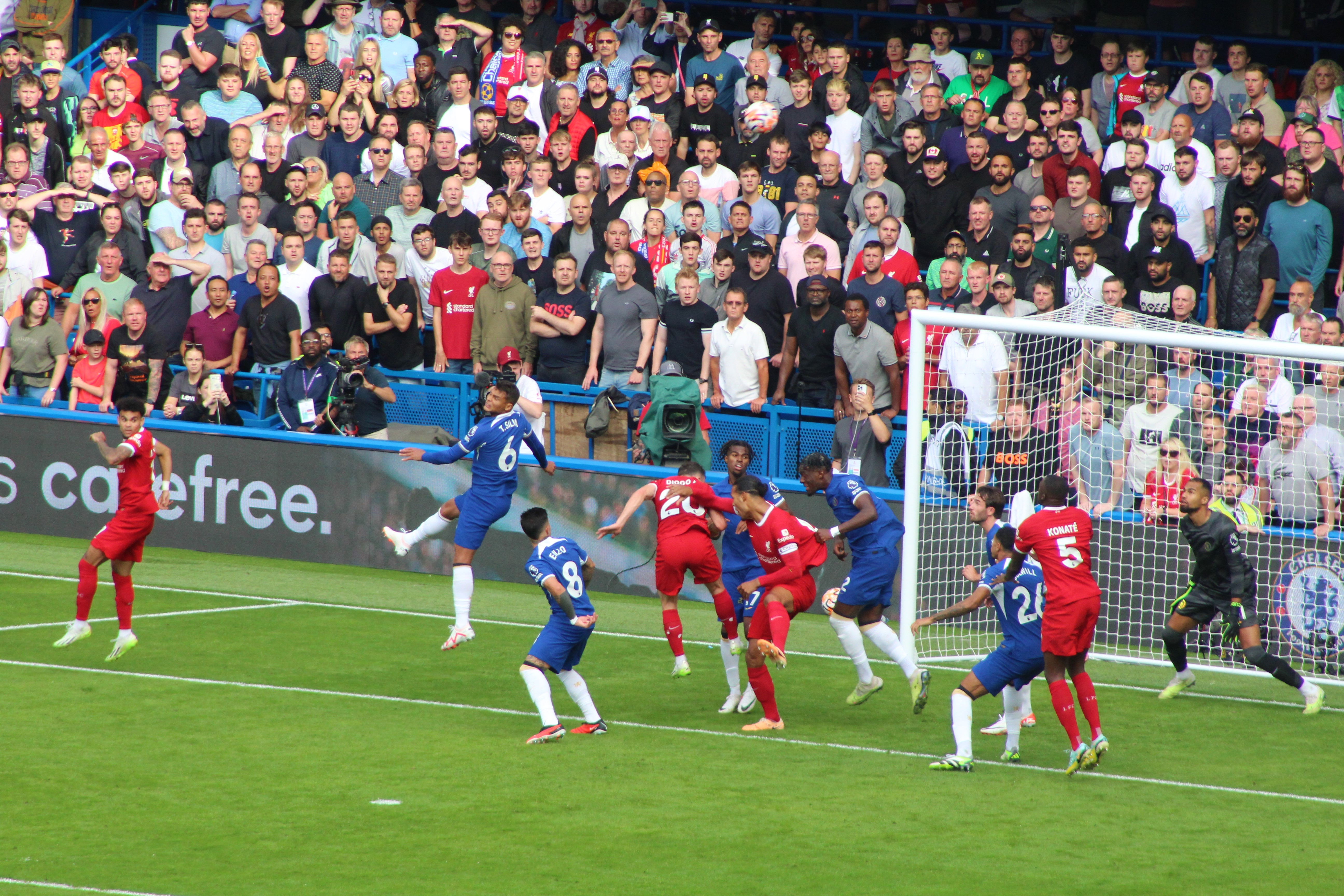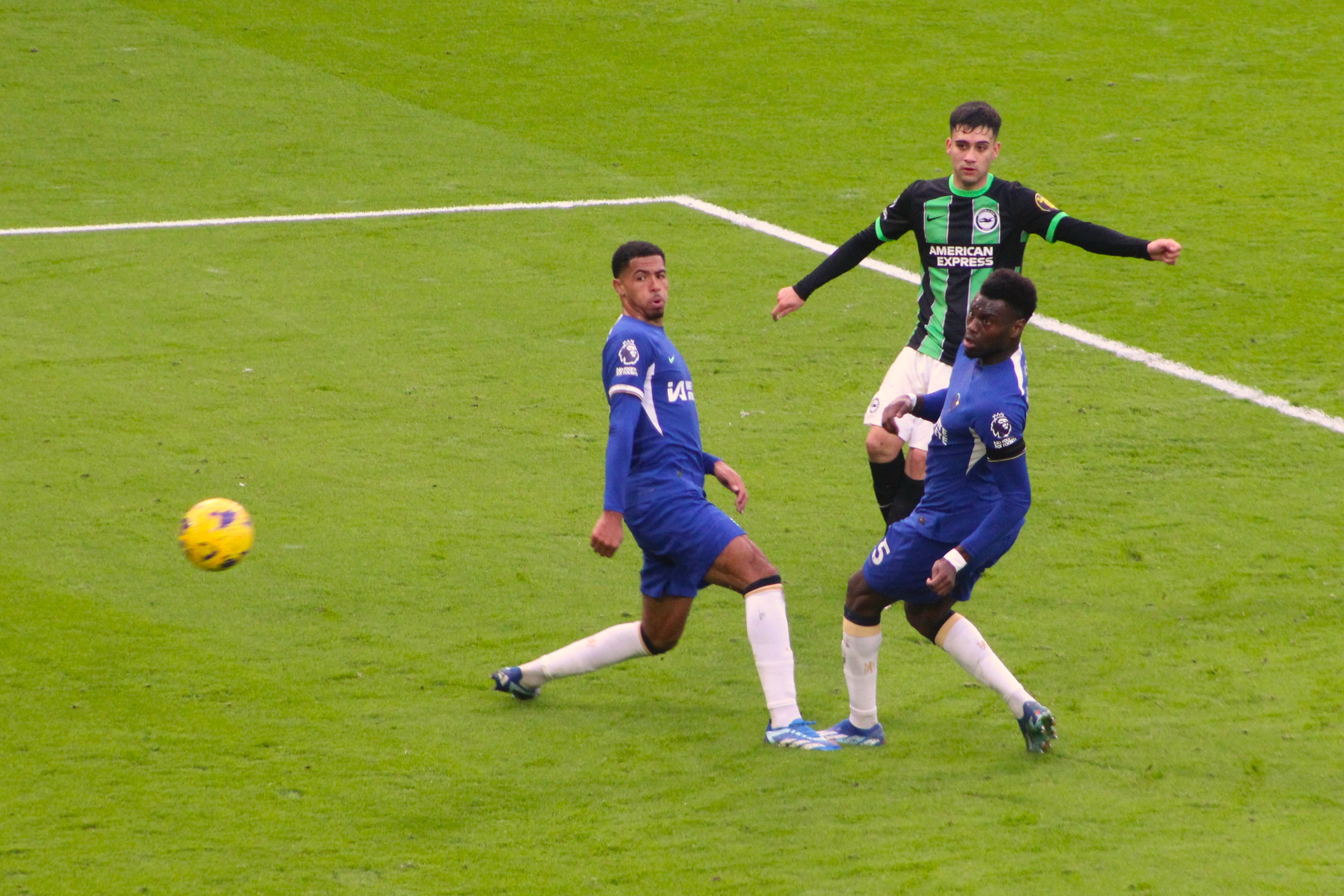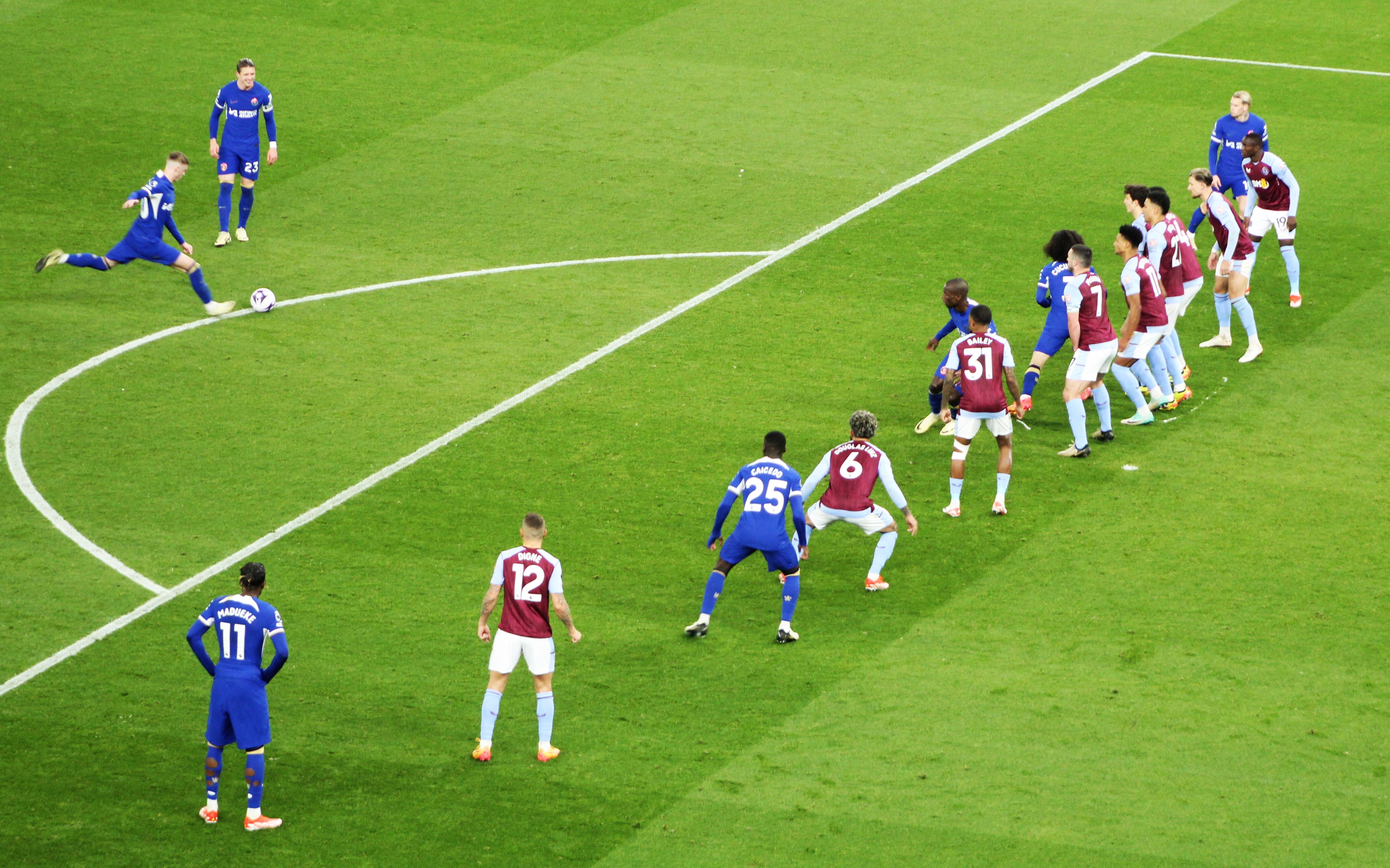 A corner down below us. Palmer swung it in. A Villa header and the ball bounced high. Badiashile won a challenge and hooked the ball back in. Disasi the substitute seemed to arrive late but flung himself at the ball.